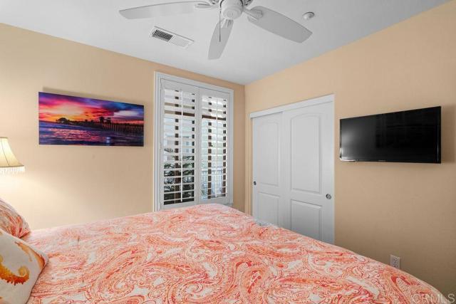 Welcome to this stunning single-level condo featuring 3 bedrooms, 2 baths, and a spacious balcony for indoor/outdoor living! With 1,454 sq.ft. of well- designed space and many upgrades, this home is ideal for entertaining at the beach and bonus it's selling fully furnished! Just pack a suitcase and start living your beach life! A short walk to the ocean waves, harbor, or downtown restaurants. The open-concept floor plan includes A/C, stunning tile flooring, 4.5-inch shutters adorn the windows, ceiling fans, upgraded lighting, nice closet spaces, full-size washer & dryer, stylish shower glass tile with enclosure, and more. The kitchen is a chef's delight with generous counter and cabinet space and under-cabinet lighting. The primary bedroom exudes coastal luxury, with design touches and direct access to the balcony. Enjoy easy elevator access to the secured gated garage, where you'll find two side-by-side parking spaces and extra storage above. EV charging is available in the guest parking area. Experience a lifestyle of ease and accessibility in this well-appointed residence truly a must-see! The gated community offers resort-style amenities, including a large pool, spa, fitness center, BBQs, and a clubhouse. The complex also features stunning views of the ocean, lagoon, harbor, and sunsets. Located west of Coast Highway, the community borders a 9-mile bike trail along the San Luis Rey River perfect for embracing the Southern California lifestyle in the thriving hotspot of Oceanside! Walking distance to beaches, restaurants, the pier, the strand, bike trails, and harbor activities, this Oceanside condo is perfectly situated between San Diego and Orange County. It offers easy access to popular destinations and attractions like Legoland, the Wild Animal Park, SeaWorld, and Disneyland all while enjoying the beautiful Southern California beaches. The nearby train station provides convenient transportation to Orange County, LA, or San Diego, making it ideal for commuters.
