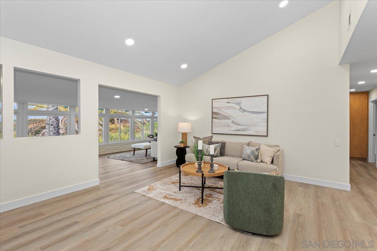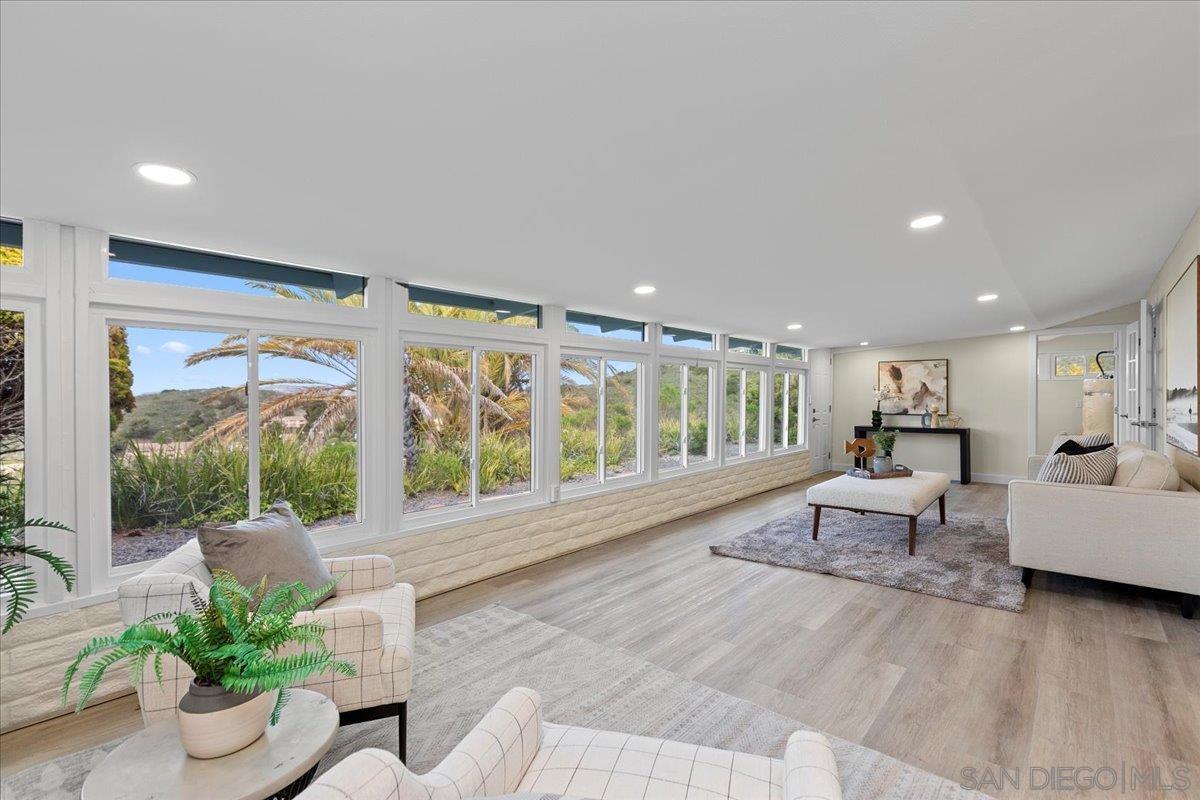 Welcome to the comfort of this beautifully remodeled home in the popular Oceana 55+ Community. Don't miss this exclusive opportunity to get a rarely available end unit perched on the bluff overlooking the valley to the north and the community garden below. The home features new luxury vinyl flooring throughout, new stainless steel appliances, fully remodeled kitchen and bathrooms, and a spacious enclosed lanai flooded with natural light overlooking the serene and dynamic view. This home is a peaceful retreat where you will love to host friends in this vibrant community loaded with amenities including a large community garden, two swimming pools and a spa, clubhouse, billiards room, pickleball court, dog park, walking and biking trails, and so much more. Adjacent to the the beautiful Emerald Isle Golf course where owners receive discounted green fees. Get involved in countless activities including book clubs, wood shop, lapidary, golf, trivia nights, and more. This community is close to nearby shopping and public transportation and just 4 from the beach and a 10 minute drive to downtown Oceanside and the pier.Interested in this Listing?