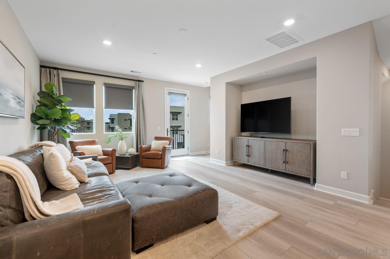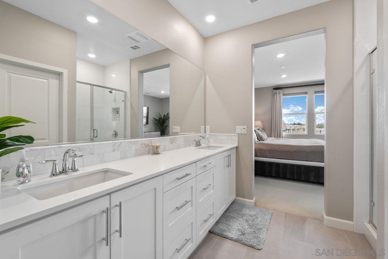 Beautifully upgraded in sought-after Ventana at El Corazon. This home is the perfect blend of style, comfort, and modern functionality just minutes from the beach, shopping, restaurants, and the vibrant Frontwave Arena. 1st floor features a private bedroom with ensuite bath, ideal for guests. Main level finds an open-concept living, dining, and kitchen featuring stunning quartz countertops, large island, upgraded stainless steel appliances, half bath, and laundry room. The balcony off the living room and front gated patio are perfect outdoor spaces to relax or entertain. Upstairs, the primary suite features a spacious walk-in closet, dual sinks, and high-end finishes. Two additional bedrooms share a well-appointed bath with dual sinks, making this layout perfect for families or roommates. This smartly designed home also includes a two-car garage with tankless hot water heater, and solar panels. Located adjacent to El Corazon Park with access to the SoCal Sports Complex, William Wagner Aquatic Center, Senior Center, and close to the Frontwave Arena, home of the San Diego Sockers. You will love all of the exciting events.Interested in this Listing?