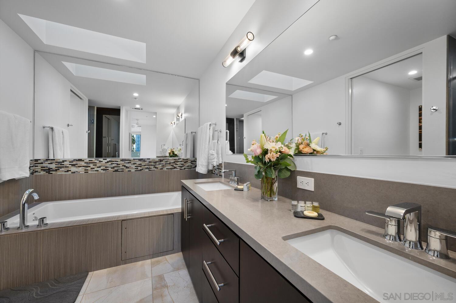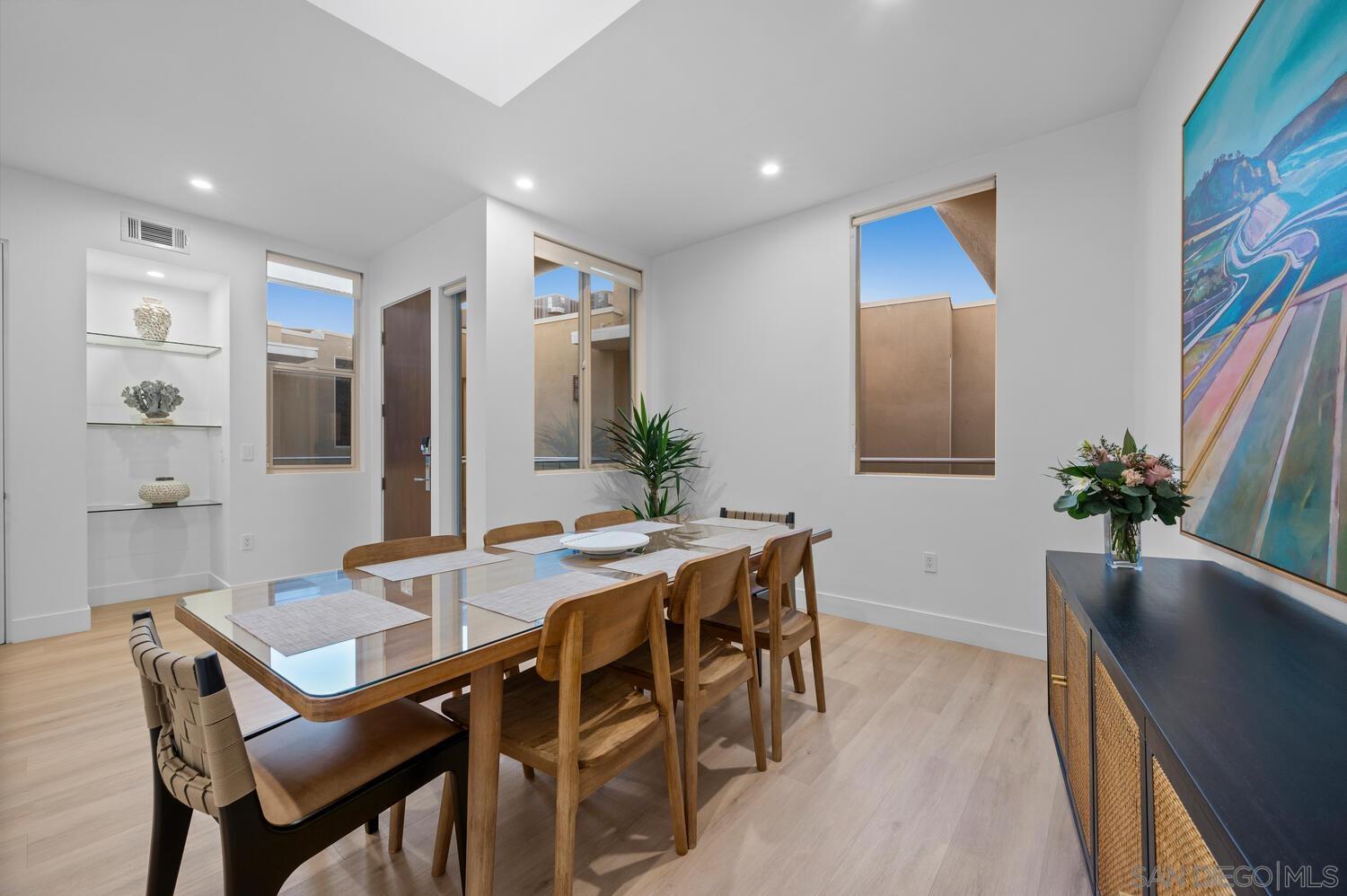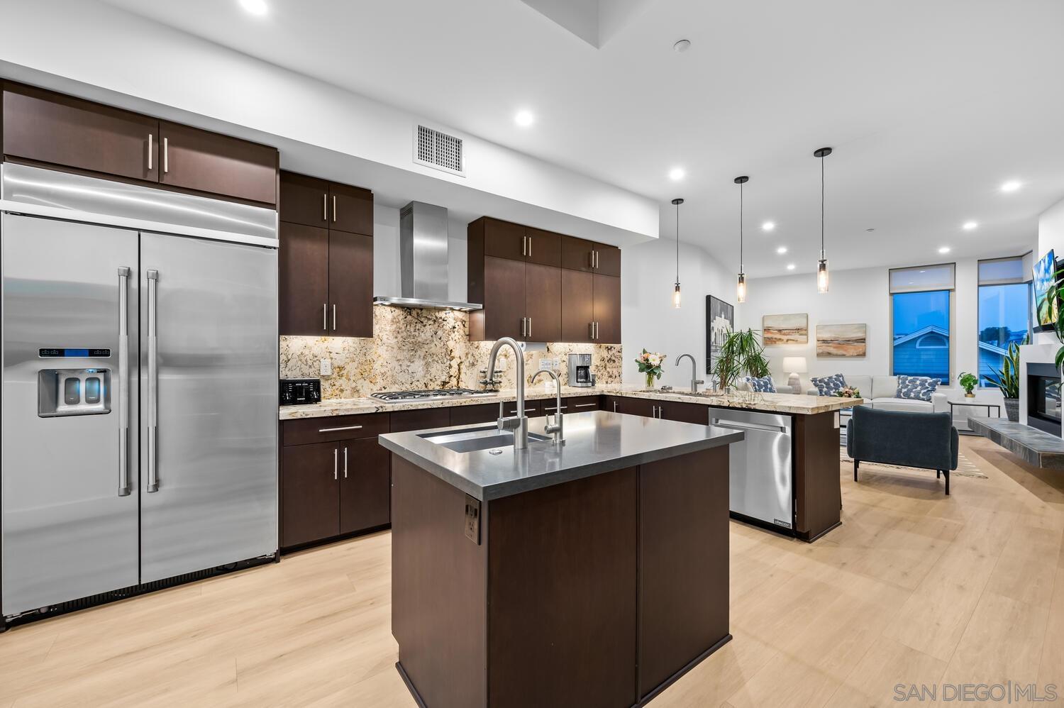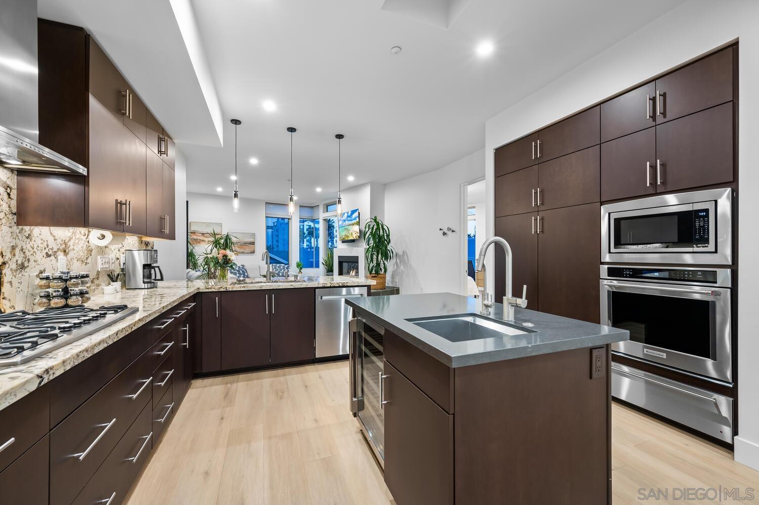 Impeccably upgraded ocean view penthouse with whitewater ocean views! Ocean views from 2 decks, living room and primary bedroom. You are so close you can hear the waves crash. Only 9 condos in this exclusive Crystal Sands Community. Just across the street from beach access with unobstructed views. This ocean view and ocean close penthouse is a must-see! This hidden gem is nestled in the vibrant heart of Downtown Oceanside, just a few blocks away, and just one street to the sand. This exclusive luxury complex features only 9 custom condos. This beautiful property offers single level living, with an elevator from garage to the penthouse level. The kitchen, dining room, family room, primary bedroom and ensuite bath as well as laundry room all on one floor, not to mention 2 ocean view decks. The 2 private decks are off the primary bedroom and family room where you can relax and take in the stunning ocean views. With dramatic 9'+ ceilings, expansive tall windows, and 7 skylights, natural light floods the space, enhancing its inviting atmosphere. The highly upgraded interior showcases beautiful light wood luxury vinyl floors, smooth coat walls, 8 solid core doors, and exquisite stone and ceramic tile accents, creating a sophisticated living space. The gourmet kitchen is a chef s dream, featuring top-of-the-line stainless appliances, high-end finishes, and sleek European-style cabinetry a perfect blend of refined craftsmanship and functionality. There is a separate dining room with plenty of space to entertain. Every detail of this penthouse has been (see sup)Interested in this Listing?