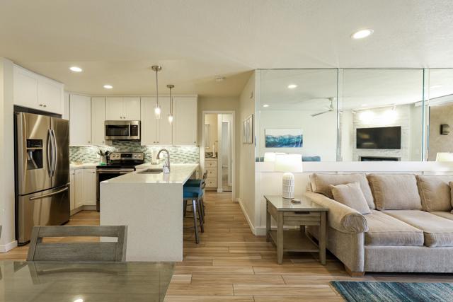 Welcome to 999 N. Pacific St. Unit E108, an exceptional opportunity to live your dream beach lifestyle! This fully remodeled 1 Bed, 1 Bath, 760 sq ft condo offers mesmerizing ocean, pier, and pool views, all just steps from the sand. Ideally located in the prestigious North Coast Village, this secure, guard-gated complex is brimming with resort-style amenities: sparkling pools, bubbling hot tub, a billiards room, sauna, BBQ grills, putting green, table tennis, bicycle storage, and a world-class gym. Inside, experience luxury living with an upgraded kitchen featuring gleaming quartz countertops, stainless steel appliances, custom cabinetry, and stylish glass tile backsplash. The open-plan living room centers around a modern fireplace wall, while large windows and a private balcony capture lush garden pathways and breathtaking blue water beyond. The serene bedroom enjoys similar panoramic vistas and spa-like finishes in the bathroom complete the coastal retreat vibe. This turn-key condo offers secure gated parking and permits short-term rentals, making it an excellent investment property or personal seaside sanctuary. Oceanside's vibrant pier, shops, and restaurants are just minutes away. Welcome to your resort-like, beachfront haven where everyday feels like a vacation!Interested in this Listing?