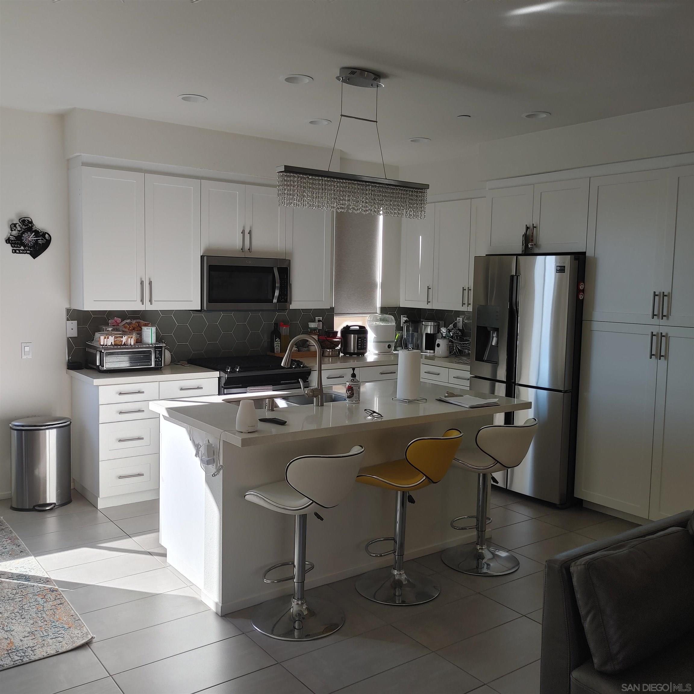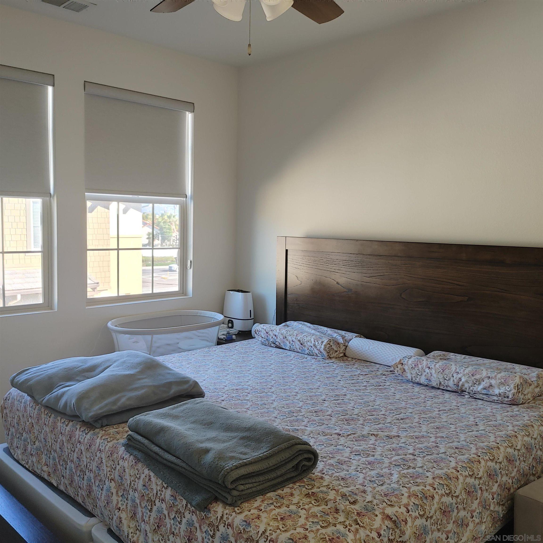 Newer townhouse on the corner of Old Grove & College Blvd full of light & bright. Clean 4 bed 3.5 bath with attached 2 car garage. Three story. Gated community. Community pool, BBQ, Tot Lots. Small dogs OK with extra deposit. Includes brand new fridge, stackable washer/dryer in closet; tankless water heater, central AC. Available February 15, 2023. Bedrooms has good thick grade carpet. LR/Kitchen has beautiful tiles. Kitchen is equipped with a great island with corian designer counters; new stainless steel appliances with lots of cabinet space. One full bedroom and a full bathroom in level one. Kitchen/LR in the second floor and three bedrooms in level three. Townhouse also boasts a good size porch/balcony on the 2nd story and a patio great for sit out with friends and family. Available to move in on February 15, 2023. Non-smokers ONLY! One to two years' lease.