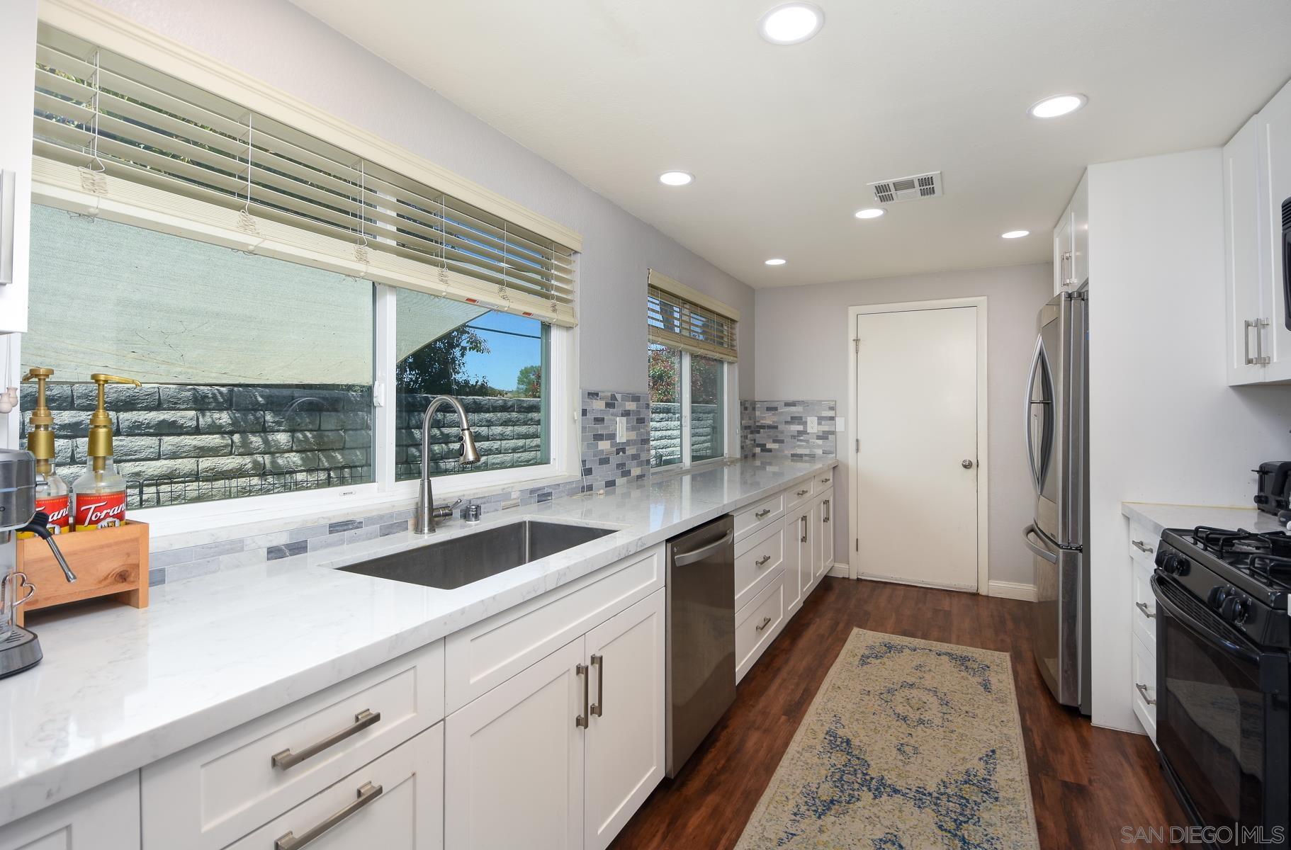 AVAILABLE FOR MOVE IN JULY 1ST! Located in Jeffries Ranch, this single story townhome in a cul-de-sac is a must see for buyers looking for a great location and lots of upgrades! This home has a gorgeous galley kitchen with custom cabinets, quartz countertops, newer slide out shelving in pantry, newer dishwasher, recessed LED lighting with dimmer switch and tons of counterspace make this modern kitchen space both functional and beautiful. With an open floorplan, the home flows seamlessly from one space to the next. The secondary bedrooms share a full jack and jill bathroom that has been updated with lovely finishes. Enjoy the high ceilings in the modernized master bedroom which features dual mirrored closets and a slider leading outdoors, creating a charming and cozy vibe. Master bathroom features newer countertops, cabinets and finishes. Newer flooring throughout the home, a 2 car attached garage, newer dual pane windows, easy maintenance artificial turf in the backyard. The home features solar with a payment of $62/monthly! No neighbors to the right, community swimming pool just across the street, lots of park spaces with green grass and trees for shade really adds to the peaceful setting here at Mission Meadows. This home is move in ready condition, has guest parking in the cul-de-sac, close to all, a single story gem awaits your buyers! No Smoking, 1 year min lease required, 1 animal permitted.