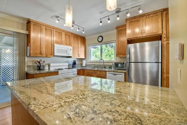 Fully furnished rental. 55+ Peacock Hills Senior Community. Rate varies by month. Close to shopping center, restaurants, parks and freeways. This bright and airy two bedroom one bathroom has everything one needs for a comfortable stay, plus yard, garage, and AC. Pet considered upon approval - per HOA regulations. One month minimum. June - Sep. $3,700/mo. Rest of the year $3,400/mo. Basic cable, wi-fi, water, trash included. Owner paid SDGE up to $100/mo. Cleaning fee $275/Reservation fee $100/Pet fee $100. Must have good credit. No smoking. Security deposit varies depending on length of stay.