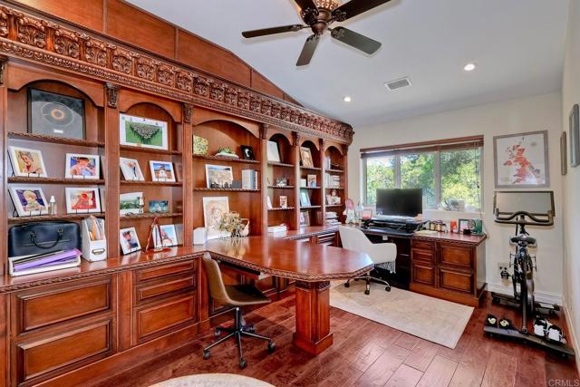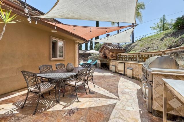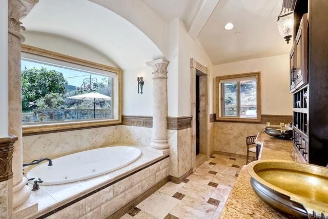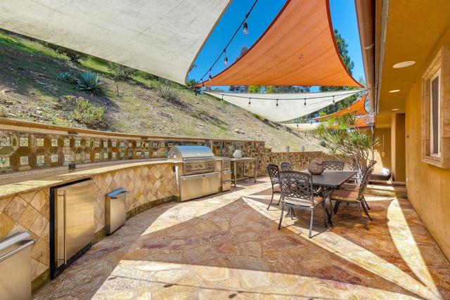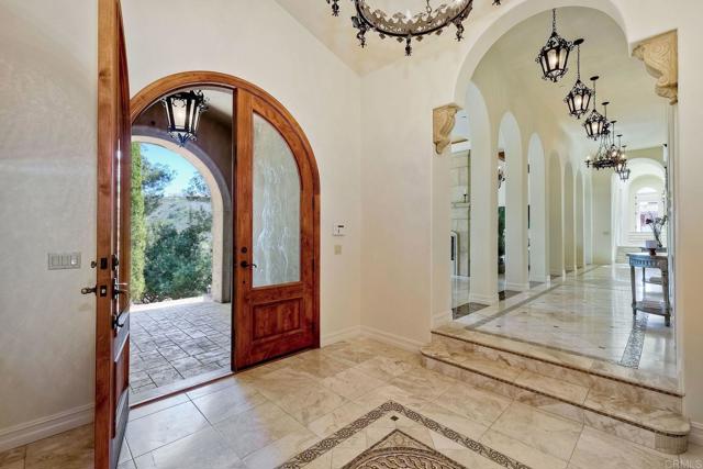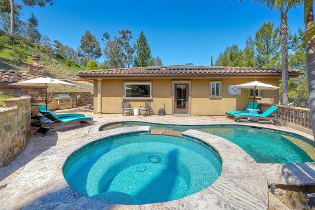 *Secluded Custom-Built Tuscan Villa in Exclusive Poway* Welcome to your private sanctuary, an exquisite, custom-built Tuscan villa tucked away on over an acre of secluded land in one of Poway s most prestigious neighborhoods. Built by a renowned custom home builder, this single-story estate offers 3,787 square feet of refined living, no HOA, and resides within the award-winning Poway School District. More than a home, it s a place to exhale, reset, and live beautifully. As you arrive, grand columns and graceful archways welcome you, framed by curated lighting that sets a tone of quiet sophistication. Stepping through the entryway, you re immediately greeted by imported Italian marble floors, intricate wrought iron details, and an undeniable sense of craftsmanship. The entire home has been thoughtfully updated with a soft, neutral palette and freshly repainted interiors, creating a bright, timeless canvas that complements any style. To your left, the expansive great room unfolds beneath vaulted ceilings with exposed beams and skylights that flood the space with natural light. A dramatic double-sided stone fireplace anchors the open-concept living and dining areas, while large windows and glass doors frame sweeping canyon views and open to tranquil outdoor living spaces. The ambiance is elevated by a built-in home theater speaker system and whole-home audio, perfect for both quiet evenings and lively gatherings. Flowing seamlessly from the great room, the chef s kitchen is a masterclass in both form and function. Outfitted with top-tier Thermador built-in appliances, including a Miele digital coffee system, this space also features granite countertops, a generous island, a wine cellar with custom dual-zone wine cooler, ample storage, and custom glass-door display cabinetry. Sliding doors lead directly to the outdoor dining area, blending indoor and alfresco living with ease. Down the long corridor with immense vaulted ceiling and skylights, the oversized primary suite awaits, a peaceful, private retreat with a large picture window showcasing breathtaking canyon views, a private balcony, and a custom executive office with bespoke built-ins. A separate entrance offers direct access to the pool and spa, inviting early morning swims and sunset soaks in complete privacy. In addition to the primary suite, the home features four spacious en suite bedrooms, each offering its own sense of space, luxury, and privacy, perfect for family, long-term guests, or multigenerational living. A well-appointed laundry room with double washers and dryers provides both convenience and efficiency, ideal for a busy household or those who love to entertain. As you step outside, the home s full resort potential comes to life. A sparkling in-ground pool and raised spa with cascading waterfall are surrounded by open skies and canyon vistas. The outdoor kitchen is equipped with a built-in Lynx grill, refrigeration, and a custom-built, imported Italian pizza oven, a culinary centerpiece for unforgettable alfresco evenings. Mediterranean-inspired, low-maintenance landscaping surrounds the fully irrigated, vineyard-ready hillside. Additional features include a spacious 3.5-car garage with 220V EV charging, parking for approximately seven vehicles, 9kW SunPower solar panels, and proximity to equestrian facilities at nearby Creek Road Ranch. An offering of rare distinction, unrepeatable in its detail, setting, and craftsmanship. The kind of property that simply doesn t come to market, because nothing else compares.Interested in this Listing?