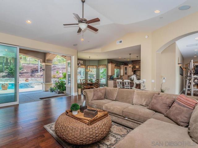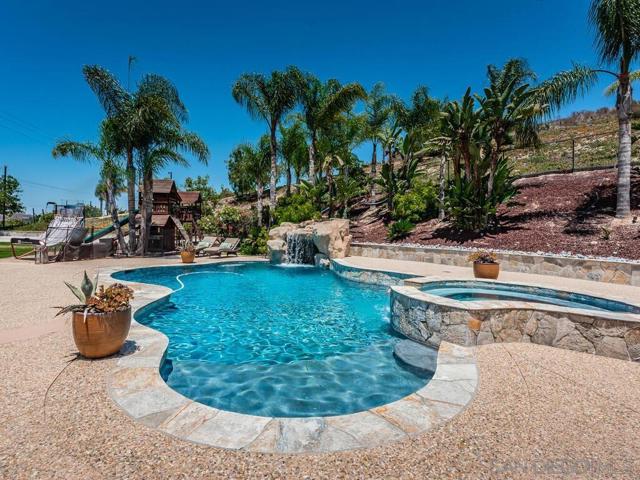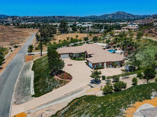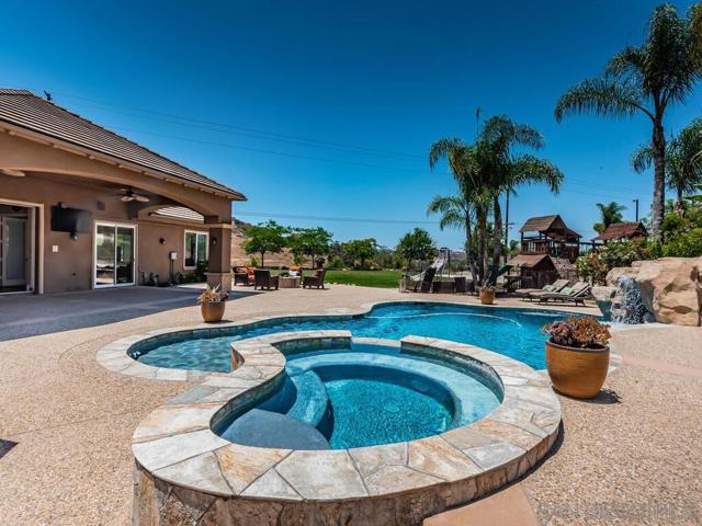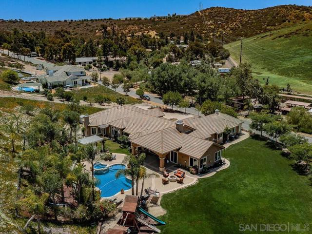 Welcome to the Las Lomas area of Poway! The hidden gem encompassing dozens of miles of walking & riding trails right out your front door. This magnificent, single level estate is strategically located on 3.3 acres with fabulous views. Privacy & luxury blend together to create an expansive outdoor oasis perfect for entertaining both large & small gatherings. The salt water pool, spa & waterfall are the centerpiece for the expansive backyard with all the amenities you could possibly want. Extensive patios, outdoor kitchen, custom gas firepit, soccer sized yard with lighted basketball court, large kids playset & so much more. Prepare to be impressed by the quality evident in this stunning custom built home. Attention to detail, dramatic ceilings, extensive deep base crown molding throughout. Custom windows with a huge 3 sectional 16 foot slider opening to the pool & patios. Professional grade kitchen & appliances along with an incredible open floor plan compliment the heart of the home. Five full bedrooms with a separate office & den area. Awesome media/family rec room, two separate 2 car attached garages, incredible master suite and bath, multiple HVAC zones, fully paid solar for both house & pool. Large circular driveway with added parking foInterested in this Listing?