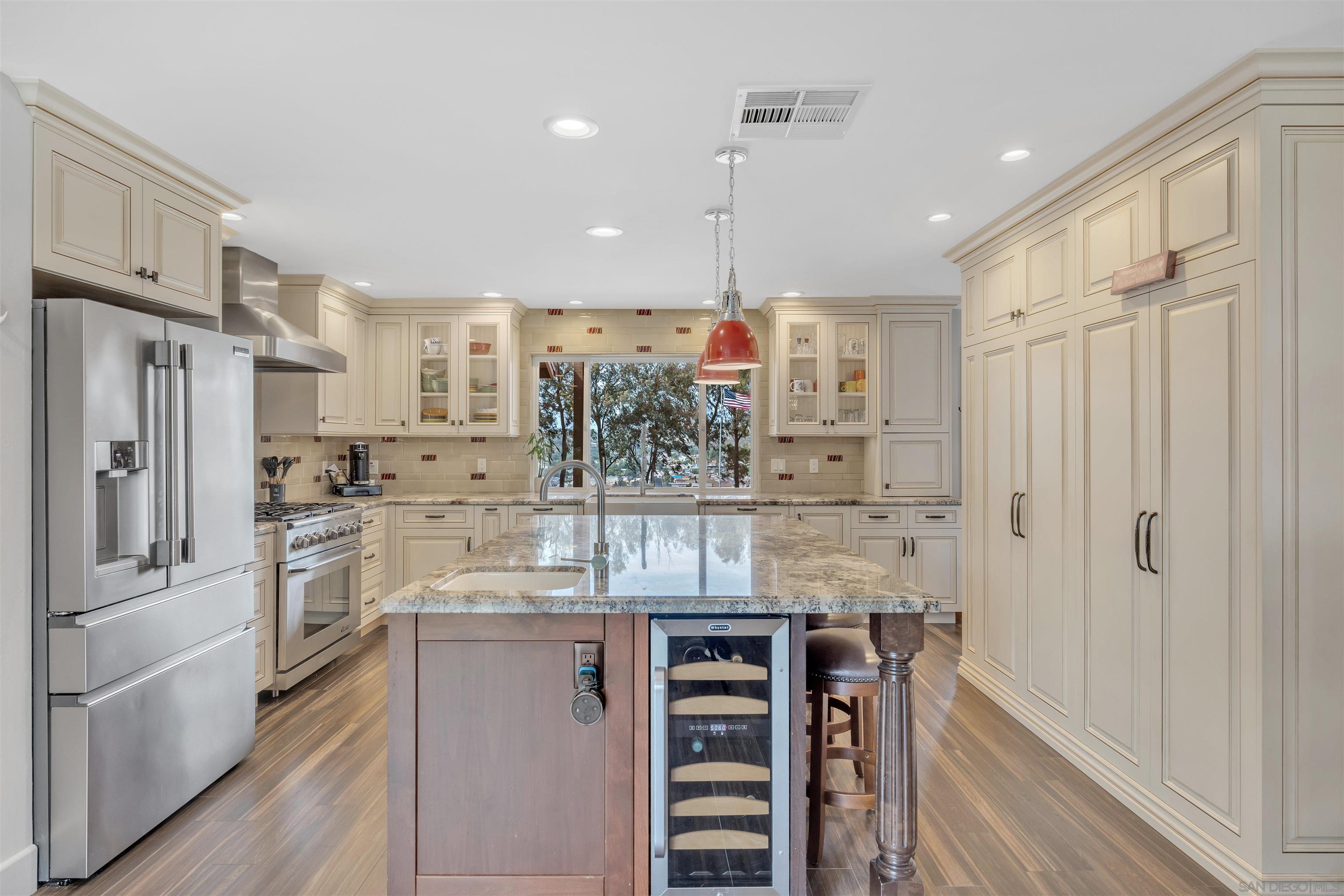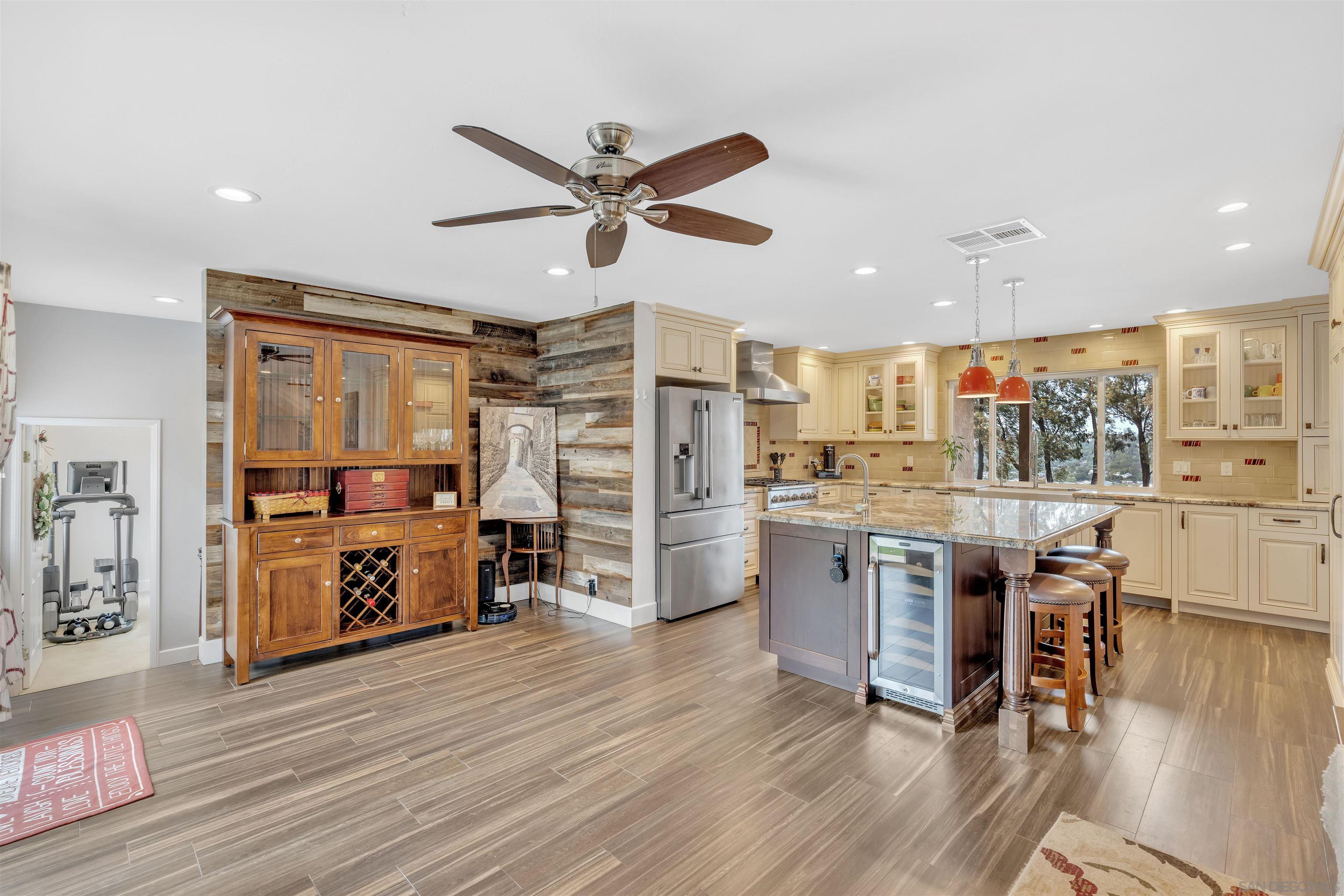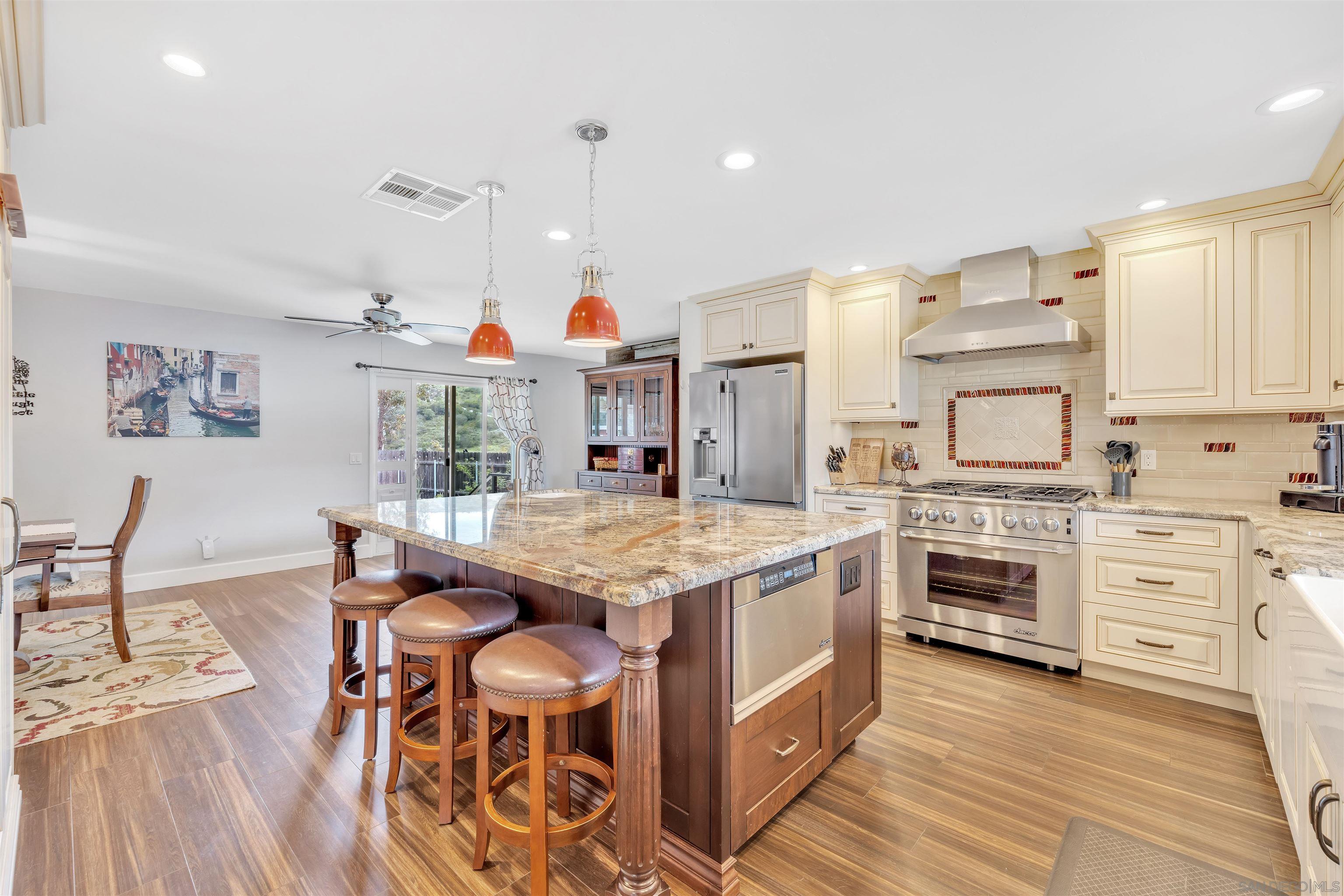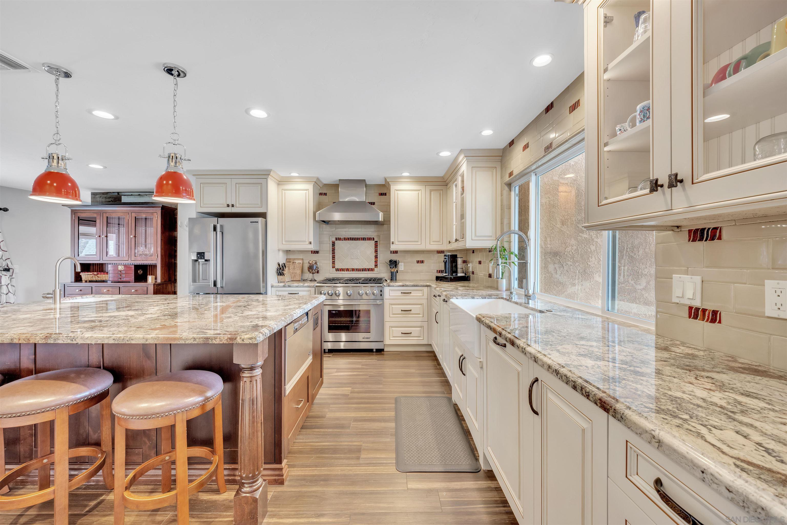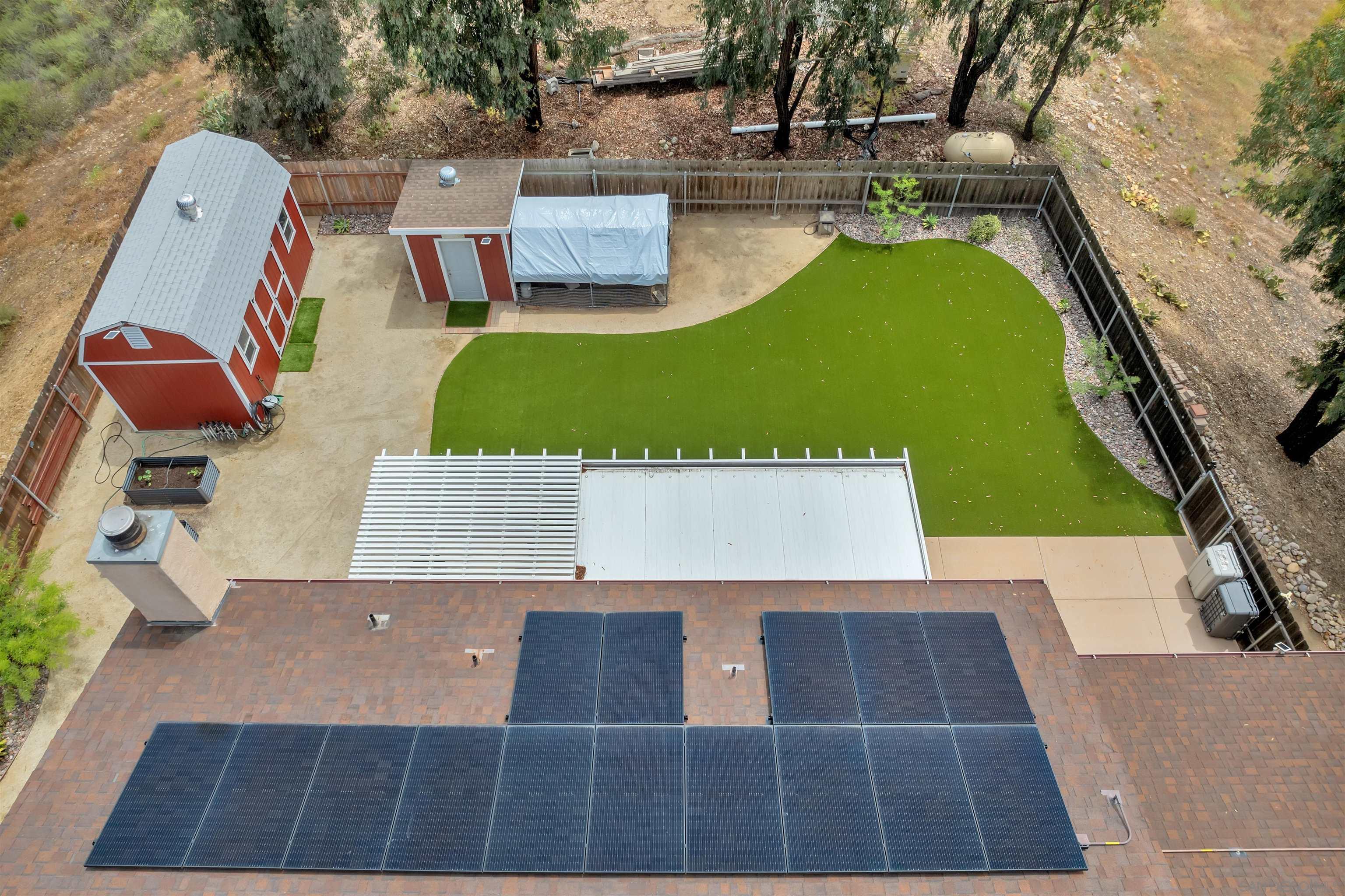 Price Reduced! Enjoy Panoramic Views from This Updated Mountaintop Home in the Heart of Poway! With 4 bedrooms and 2.5 baths, this home perfectly balances comfort, style, and privacy. One of the bedrooms is conveniently located on the entry level and features a built-in Murphy bed providing flexible space for guests, a home office, or an additional living area. The remodeled kitchen is truly the heart of the home, showcasing a large oversized island with built-in storage and a microwave drawer, granite countertops, stainless steel appliances, a wine fridge, and ample cabinetry ideal for both everyday living and entertaining alike. All bathrooms have been tastefully updated, and the sunken living room with a fireplace creates a warm, inviting space to unwind. Expansive windows frame gorgeous views from nearly every room, filling the home with natural light and a sense of calm. The spacious primary suite includes a walk-in closet and opens onto a large private deck the perfect spot to relax and soak in the scenery. You can even enjoy views of Poway s Fourth of July fireworks right from your own backyard. Set on 2 acres, this property offers room to roam while still being just minutes from town. A fully OWNED SOLAR power system keeps energy costs low and supports sustainable living. Additional features include a large storage shed and a chicken coop ideal for those craving a touch of country life with modern conveniences. The backyard is designed for both enjoyment and ease, with artificial turf, a covered patio for dining or lounging, and a fully fenced yard foInterested in this Listing?