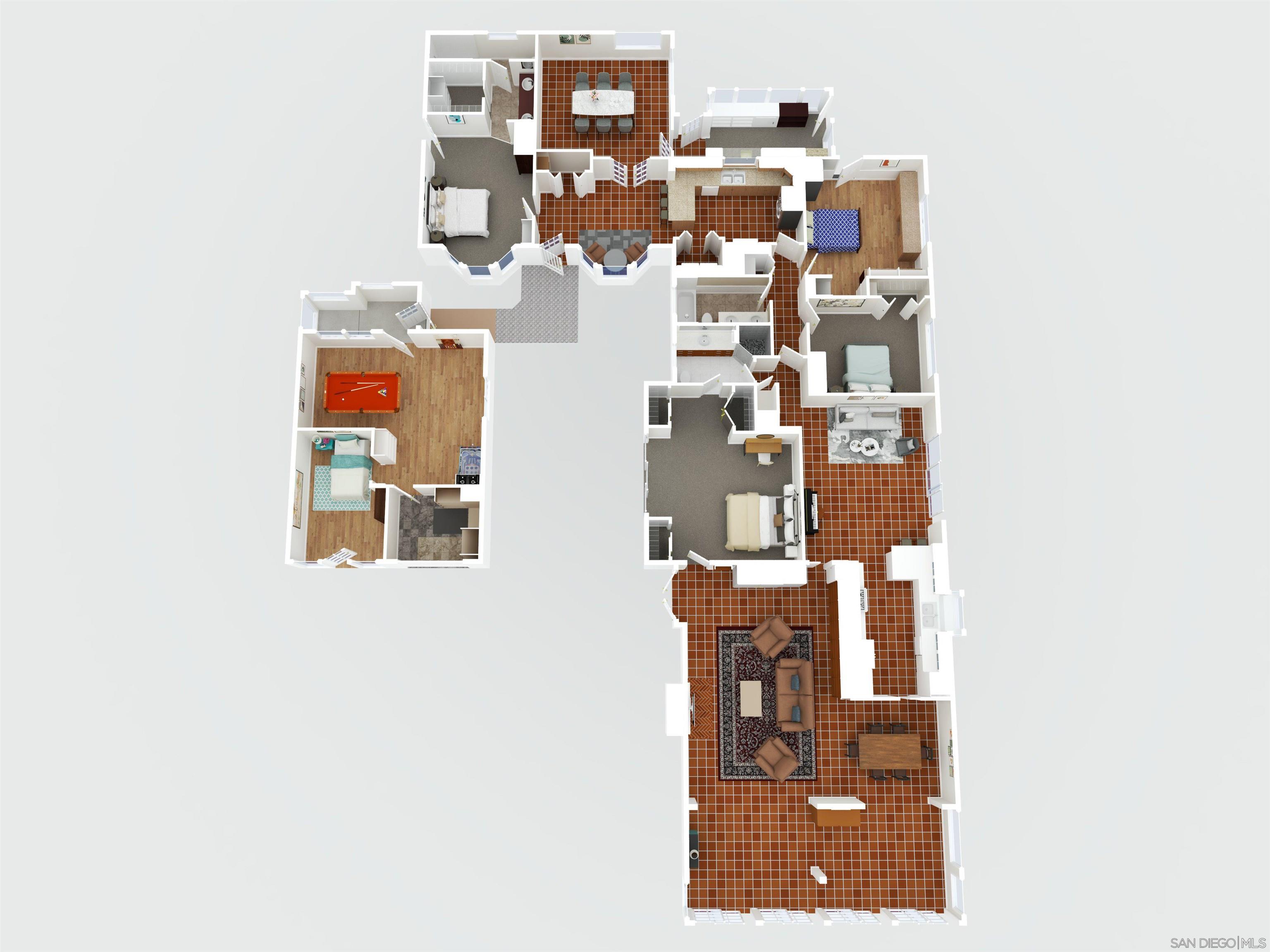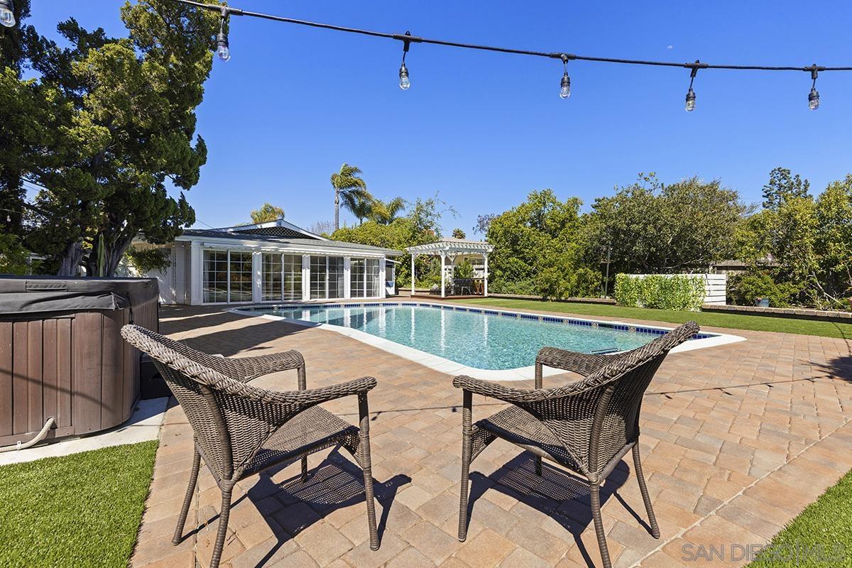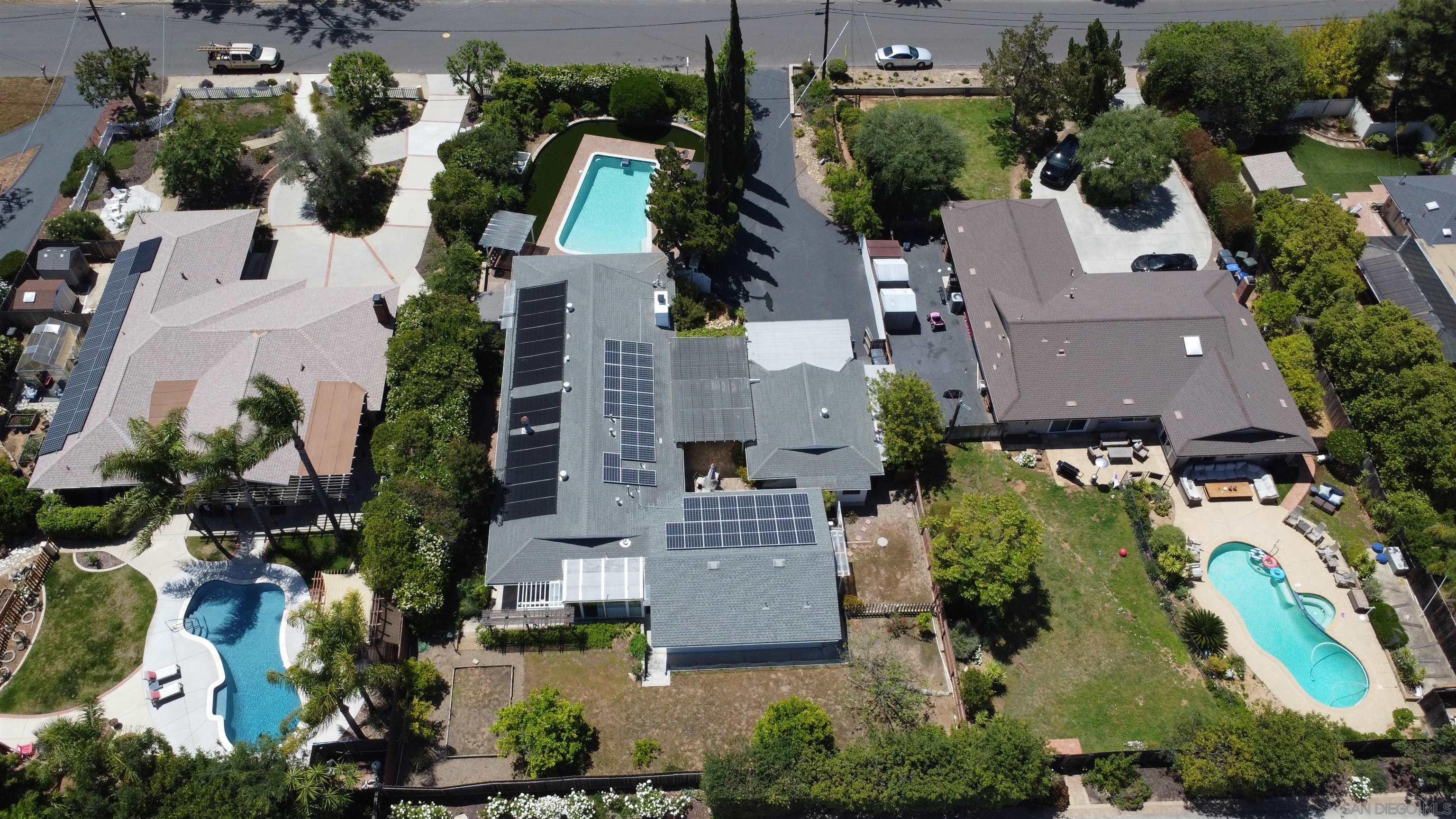 PRICE REDUCED - Spectacular Poway home located on close to half an acre in the heart of highly sought after Green Valley! Fully owned 12.47 KW solar with two full house backup batteries. New owner is grandfathered in to SDGE NEM 2.0. With over $300K in upgrades and nearly 900 feet of extra living space for a total of 3,600 square feet, this ranch-style home is perfect for extended families, and features five bedrooms and three full bathrooms. Authentic Saltillo tile floors and a spacious enclosed sunroom offer views of the private pool area. The inviting patio with new pavers and a retractable awning leads to a large pool that has been completely renovated; the new pool equipment, huge amount of pool solar and gas heater, Fastlane swim system, and large hot tub make it a water lover s paradise. This single level home is built to enjoy the beautiful Poway weather, with most rooms having their own exterior door to the outside. There is a complete second kitchen in the newer addition at the back, and the detached two-car garage has been converted to extra living space, offering many possibilities for large families. There are very productive orange, tangerine and lemon trees in the back yard, and recently widened driveway provides ample room for parking. A new HVAC system and a new main electrical panel complete this very unique and desirable home!Interested in this Listing?
