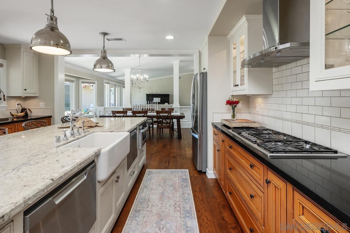 Tucked away at the end of a quiet cul-de-sac in one of Poway s most sought-after neighborhoods, this gorgeous single-story estate offers a stunning display of rose gardens, a sparkling swimming pool, blissful breezes and unobstructed views of the surrounding hills and natural terrain. The award-winning home, for design and remodel, features an open-floor plan and Classic Plantation Interior, popular in Hamptons and Greenwich, Connecticut country homes. Every detail of this home was designed with timeless elegance. It enjoys earth tones of sand, sea and sky, accented by cream and white, indoor-outdoor entertaining, expansive rooms, spacious living room, and grand dining. Natural light from expansive windows showcase stunning features such as custom millwork, travertine and hardwood flooring, decorative support beams, and elegant white crown molding. A striking brick fireplace framed in white shiplap and a white wood-beamed ceiling anchor the living room, creating a warm and inviting space. At the heart of the home is a gourmet chef s kitchen featuring luxurious granite and quartz countertops, handcrafted cabinetry, and a grand center island ideal for entertaining. Premium appliances including a five-burner range, double oven, and dual dishwashers make everyday meals and special occasions equally effortless. The charming breakfast alcove completes this space, making it perfect for casual mornings.Interested in this Listing?