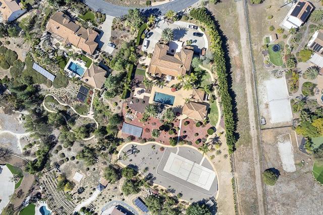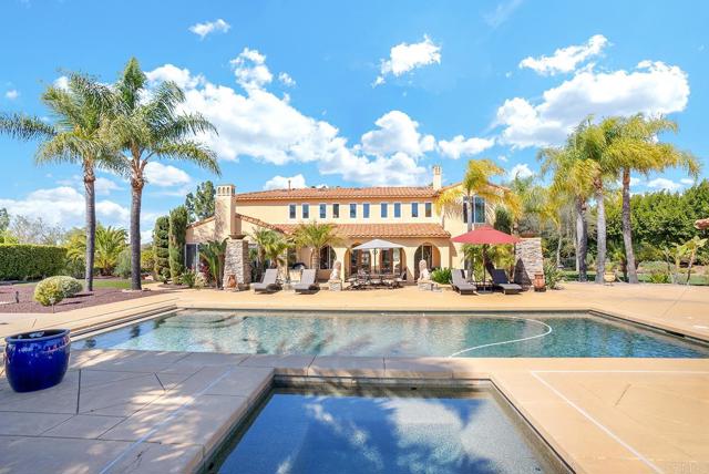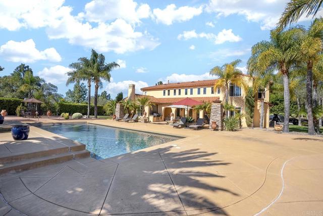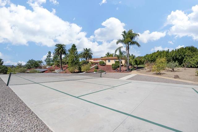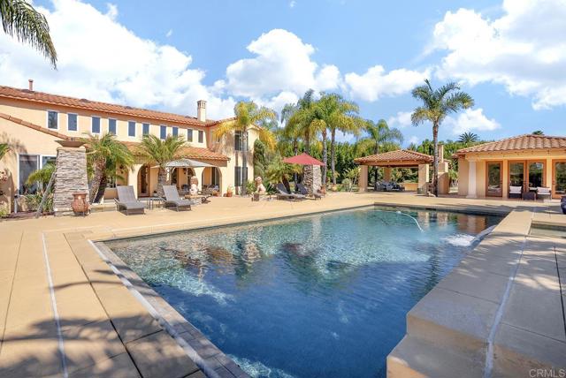 Experience elevated living in this gated Poway estate, where luxury, privacy, and resort-style living come together on 1.76 acres of pristine land. With unobstructed 180-degree views, this breathtaking property offers elegance and exclusivity, making it a masterpiece for those who demand the best. With 5 bedrooms and 4.5 baths, every inch of the 4,689 sq. ft. main residence is designed with grand-scale elegance. Guest Home is 2 bedrooms 1 bath 700 sq. ft., approx. total = 5,389 sq. ft. There is an additional Gym room and also a study room for a total of 9 usable bedrooms. towering ceilings, cascading drapes, seven dazzling crystal chandeliers, and multiple marble fireplaces infuse warmth and sophistication. Custom artisan faux finishes add refinement, enhancing the estate s distinctive character. At its heart, the chef s kitchen boasts a sprawling island, high-end appliances, and impeccable craftsmanship, creating the perfect space for both everyday living and grand entertaining. The primary suite is a private retreat with a spa-inspired bathroom, a soaking tub, and an oversized walk-in shower. A built-in office and private gym provide functionality to meet every lifestyle need. A separate 700 sq. ft. guest house expands the estate s versatility, complete with a full kitchen, private bedroom, full bathroom with in-unit laundry, and office space perfect for visitors or multi-generational living. Step outside into a private, resort-style oasis designed for entertainment and relaxation. A showstopping 40-foot pool with a built-in jacuzzi takes center stage, surrounded by lush, mature landscaping that creates an intimate escape. For seamless indoor-outdoor entertaining, the estate features two built-in BBQ stations, an elegant gazebo with a stone fireplace, and two custom 9-foot fire tower pits for evenings under the stars. The full-size multi-sport court accommodates tennis, pickleball, basketball, and more, offering endless recreational opportunities. With complete seclusion, this estate provides the ultimate in privacy and exclusivity. The expansive motor court accommodates 15+ vehicles, while the three-car garage with built-in storage ensures convenience and practicality. A rare opportunity in one of Poway s most prestigious enclaves, this estate must be seen to be fully appreciatedInterested in this Listing?