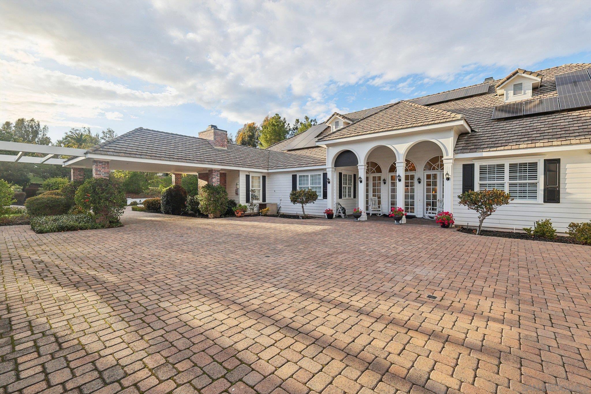 Nestled within the exclusive gates of Green Valley Estates, this custom single-level estate offers 5,457 sq. ft. of refined elegance on a private 2.1-acre lot. Designed with superior craftsmanship, the main residence features 5BR/4.5 baths plus 749 sq. ft. detached guest house with 2BR/2BA provides a luxurious retreat for visitors. Rrich hardwood floors, intricate crown molding, and graceful archways. Natural light pours through expansive French doors and oversized windows, seamlessly blending indoor and outdoor spaces. A The resort-style backyard is an entertainer s dream, boasting multiple covered porches, a spacious patio with an outdoor fireplace, a sparkling pool and spa, a built-in BBQ and owned Solar power enhances both luxury and sustainability. The gourmet kitchen is a chef s delight, featuring granite countertops, a large center island, a professional 6-burner stove, custom cabinetry, and a walk-in pantry. The elegant primary suite offers a private sitting area with a fireplace, French doors to the patio, and a spa-inspired bath with a soaking tub and walk-in closet. A 4-car detached garage with a private half-bath completes this extraordinary estate. This exceptional property blends timeless sophistication with modern comfort, offering an unparalleled lifestyle in one of the area's most coveted communities.Interested in this Listing?