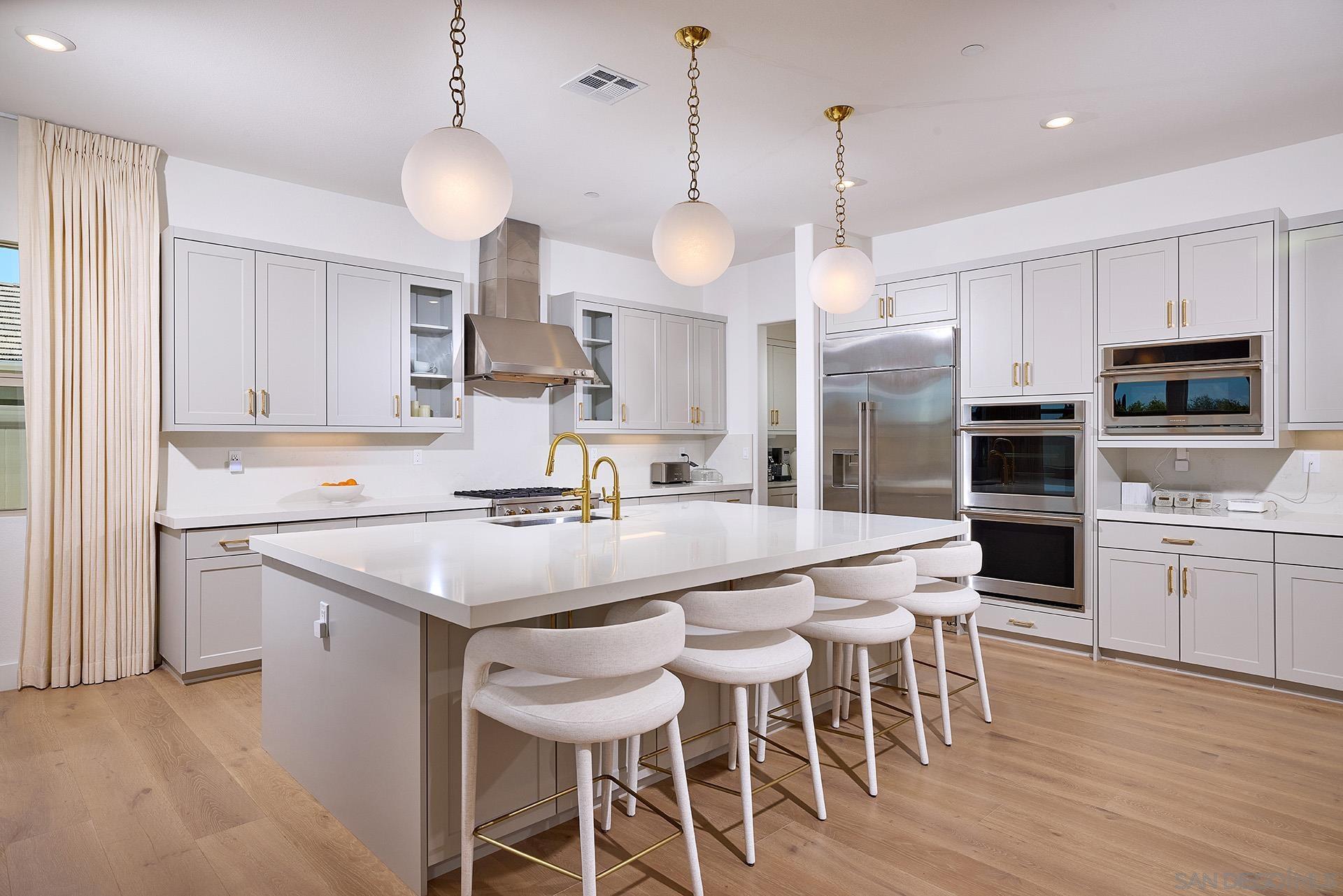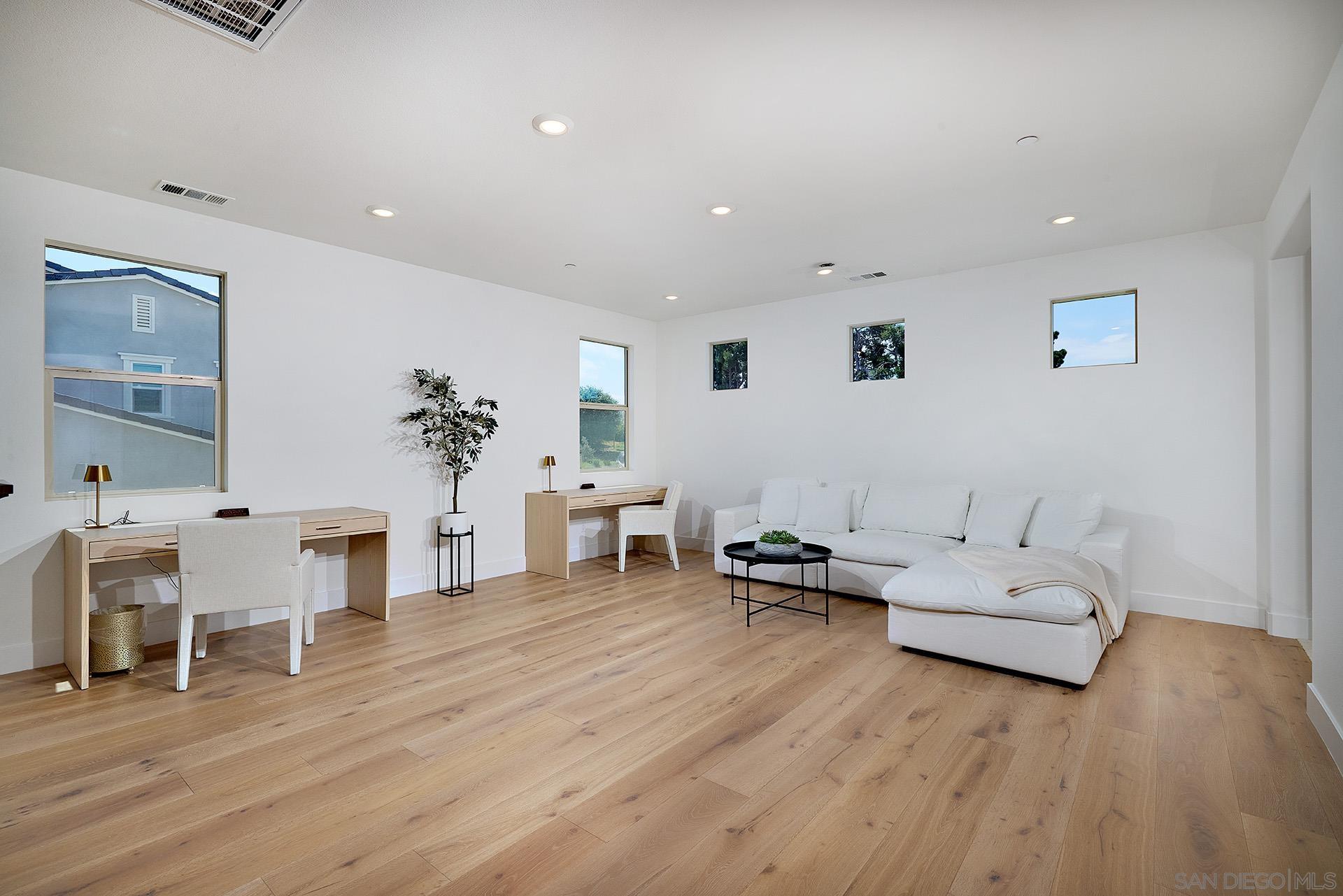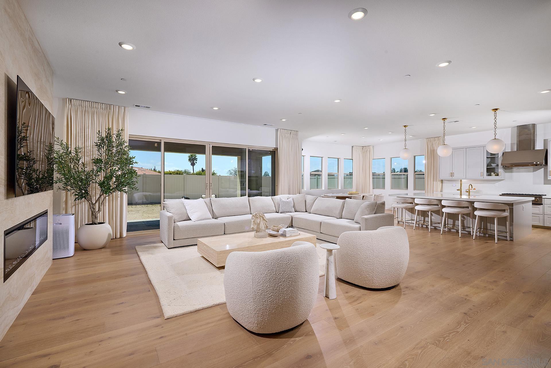Rare Lennar Homestead Plan 1, this spectacular home lives like a single level, highly upgraded and well appointed with a very desirable Next Gen suite consisting of a separate entrance, living space, kitchenette, bedroom, bathroom and laundry. An additional ensuite bedroom, including the primary owner s suite and the office are also located on the entry level. Upstairs, the bonus and media rooms are situated close to two additional secondary bedrooms with bathrooms upstairs one being an ensuite. The Great Room, kitchen and dining room share an open floor plan with gorgeous French white oak engineered wood floors throughout, a custom floor to ceiling porcelain tile finished fireplace, flowing access to the outdoor California Room through sliding glass doors to a spacious backyard that is very private with community open spaces behind. Stainless appliances, dual ovens, built in refrigerator, prep island with custom quartz counters, both a butler s and walk in pantry which are all exceptional for family gatherings and entertaining. A 3 car garage with a large driveway finished in pavers with plenty of off-street parking and an owned 4.4 kw solar system. Served by some of the best North Poway schools and convenient to shopping and freeway access.Interested in this Listing?