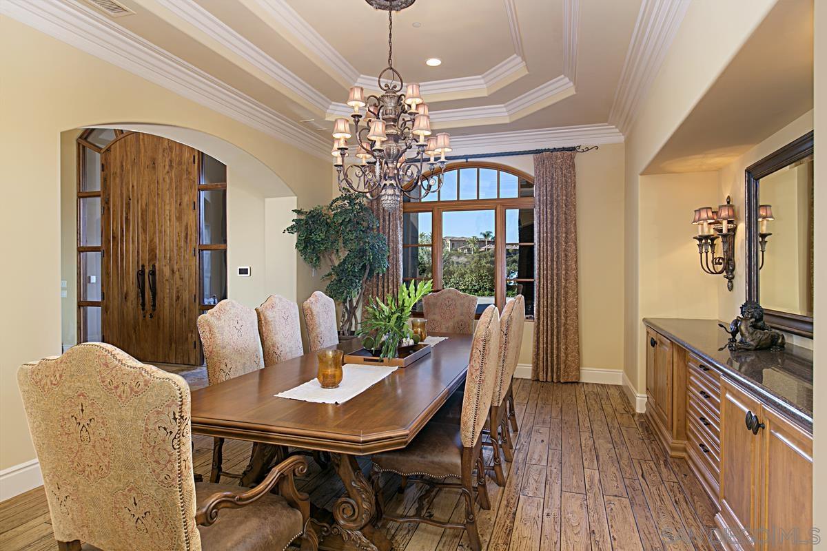 Bryce Point Estate is THE Ultimate View Property! A 2-story Mediterranean hilltop masterpiece in the guard gated community of The Heritage Custom Estates. Located at the end of a private cul-de-sac, perched high above Maderas Golf Course with breathtaking views all around. This custom home features amenities found in a luxurious resort. Finished with tumbled travertine, marble, hardwood flooring, crown moulding, granite countertops, immense stone fireplaces, water filtration system and whole house & pool solar, this home is designed with every detail in mind. The gourmet chef's kitchen boasts an expansive granite island and opens into a spacious family room with stone fireplace, vaulted wood ceiling and entertainer's wet bar with walk in wine cellar. Rejuvenate in the dedicated Wellness Center with gym/yoga/cardio/weight studio, locker room with steam sauna, hydrotherapy tub with waterfall, hot dry sauna and shower. Stream sports events and movies in the private cinema room with state-of-the-art sound system. The beauty of this estate extends outdoors to the large, covered veranda with living room, dining area and outdoor kitchen overlooking the lushly landscaped grounds. Further enhancing the outdoors is a vanishing edge saltwater pool with bench seating, waterfall, sit in grotto, slide, extra deep end with diving ledge and outdoor heated jetted spa. Enjoy playing sports on the sport court and large flat grassy areas. BONUS FEATURE: This estate offers a private 1-bedroom suite with living room, kitchenette and fireplace perfect for nanny or multi-generational.Interested in this Listing?