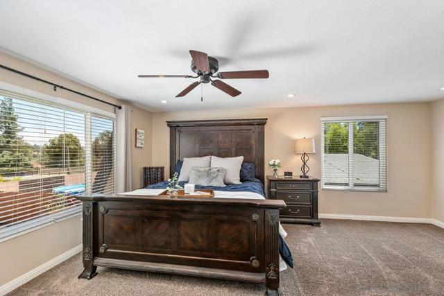 HERE IT IS! Gorgeous, move- in ready 5bed/3bath home perfectly located in the heart of Poway! Custom details shine bright throughout the entire home. Remodeled custom kitchen boasts ample storage, endless granite countertops, stainless steel appliances, newer tile floors and more. Hard to find and highly sought after downstairs bedroom and full bathroom could serve perfectly as a guest bedroom, office or playroom. Retreat and relax in the resort-like backyard! Cool off and enjoy the hot summer days in the saltwater pool complete with a newer pool pump. BBQ and let the kids play all year long on the new turf backyard and custom built play structure. Much more to offer...SEE SUPPLEMENT! Wind the day away as the sun goes down in the hot tub complete with new cover. Some highlights include newer HVAC, exterior LED lighting, dual paned windows, low voltage landscape lighting, wired gigabit ethernet in all bedrooms, custom built storage shed and mature fruit trees, Nu Flo plumbing just to name a few. Large upstairs master retreat is open and bright, complete with a walk-in closet and master bath. Ample space to park your RV and boat! Termite inspection has been completed and cleared. Located in a prime part of Poway. Walking distance to award winning Poway UniInterested in this Listing?