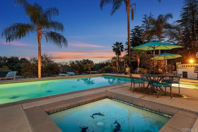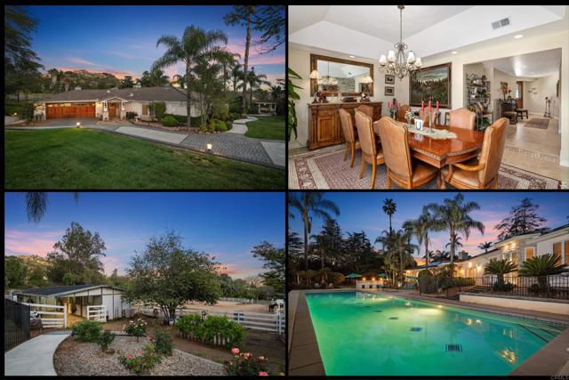 Exceptional Equestrian Estate one block from Lake Poway trails. Rare opportunity to own one of Poway s most desirable equine properties located one block from the Lake Poway trail system. Designer s home, Equine facilities, Pool, Gazebo, Rose Garden, Playhouse, Storage, Dog run, Garden, Fruit trees, Fountain, and more. Home features two Master Bedrooms with Pella Windows and doors, 3 fireplaces, high end cabinetry, tons of storage, and designer touches throughout. Many windows, skylights, and natural light. The pool area has an Olympic lap length pool with a spa, shallow kid s pool and BBQ. The large primary Master bedroom has a fireplace, French doors out to the pool area, a large master bathroom w/dual head showers, jetted tub, separate sink vanities, custom mosaic mirrors, operable skylight opens up to the natural air, Linen storage with/ pull out hampers, and huge walk in closet. The secondary Master bedroom has a sliding door out to the pool area, dual sink vanity, pull out vanity shelves, two large closets, and roman garden tub. A lovely Office/Library features a fireplace flanked by custom book shelves, drawers, and deep storage. French doors open out to a fountain area, and a separate gated entrance. A double fireplace separates the Kitchen/Dining area with the kitchen nook overlooking the pool and stables. The 2.72 acre property is fenced and cross fenced with 3 automatic gates. The 3 stall Barn Master barn has in and outs connected to a one acre pasture with lighted riding arena and round pen. There are also three separate large paddocks with covers. Stalls and aisle ways are matted. You can take the Lake Poway trail all the way to the Blue Sky Preserve or ride down the street and catch the trail to Tooth Rock. A network of riding/walking trail systems are planned into the Poway community. Come take a look at this pristine estate! You won t be disappointed!Interested in this Listing?