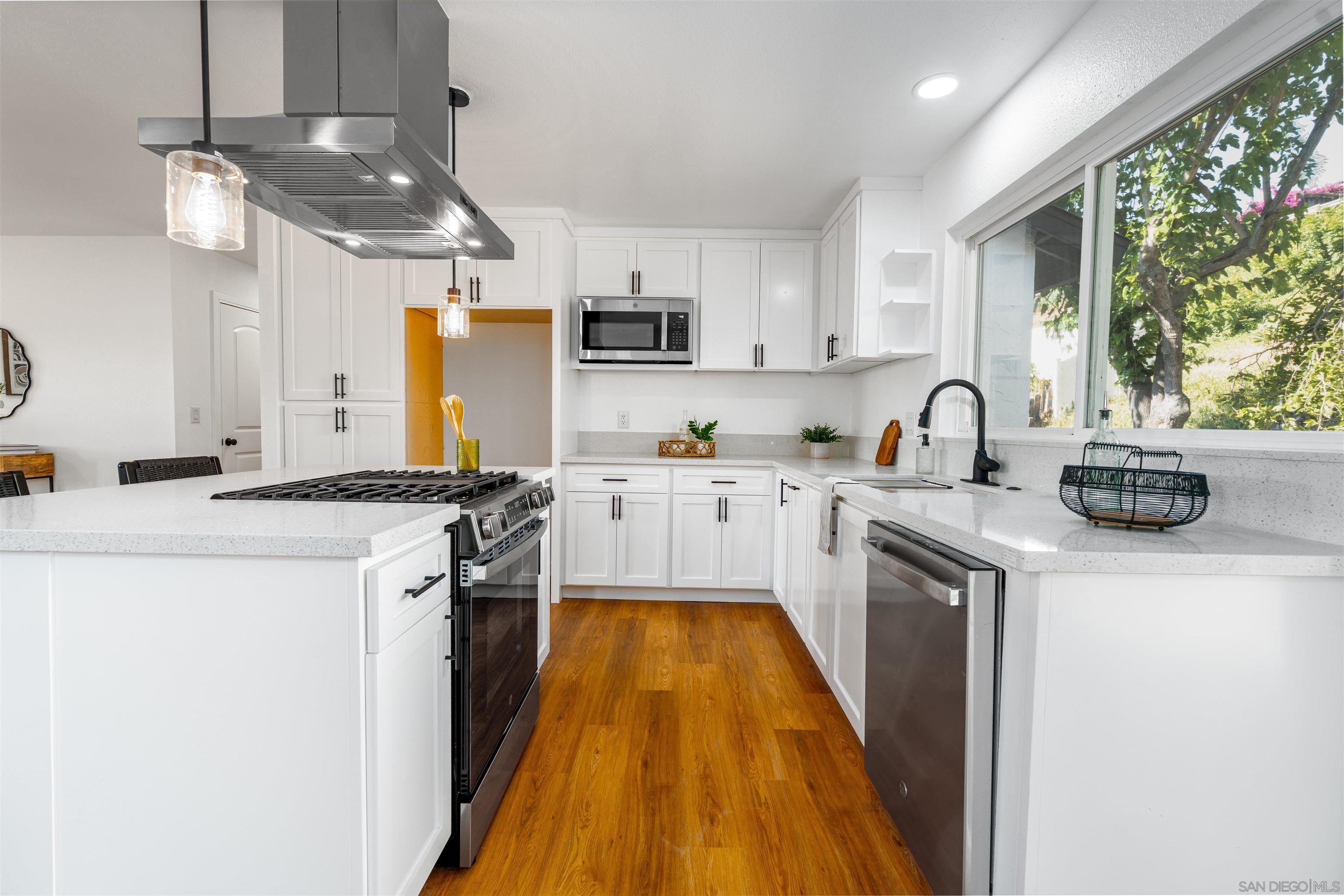Welcome to this truly stunning, fully remodeled 4-bedroom, 2-bathroom home, perfectly situated in a quiet neighborhood in the heart of Poway. This isn't just a house; it's a meticulously updated sanctuary designed for modern living, offering both unparalleled style and everyday convenience. Step inside and be greeted by a bright, open-concept floor plan featuring beautiful new luxury vinyl flooring that extends throughout house. Recessed lighting throughout enhances the contemporary feel and illuminates every corner. The updated kitchen is a chef's delight, boasting sleek new quartz countertops, stainless steel appliances, and custom cabinetry, all centered around an island. Both bathrooms have been completely transformed with modern fixtures. For your peace of mind, this home also includes a brand-new roof. Outside, the backyard offers space for entertaining, play, or simply relaxing in the California sunshine. Location is everything, and this home delivers! You'll be just a few miles from essential conveniences like Costco, Target, and Starbucks, making errands and daily routines effortless. Beyond the easy access to amenities, you'll benefit from living in a vibrant Poway community with highly-regarded, award-winning schools, fantastic parks, and a welcoming atmosphere. This is a rare opportunity to own a turn-key, completely renovated home in one of San Diego County's most desirable family-friendly neighborhoods. Don't miss out on making this exceptional property yours!Interested in this Listing?