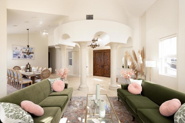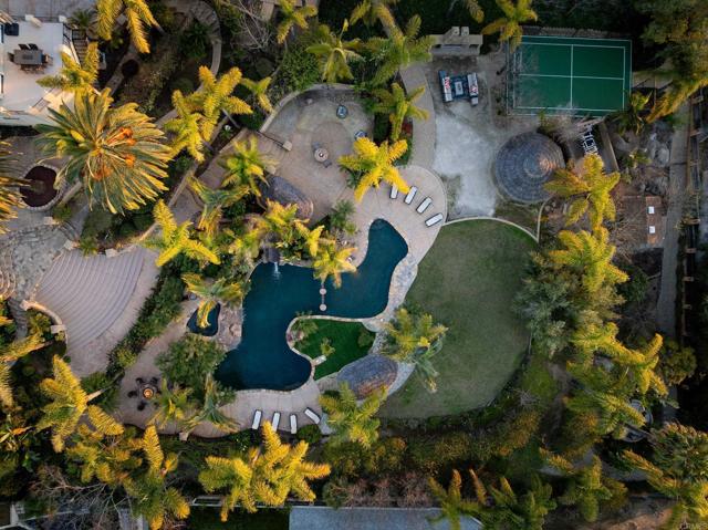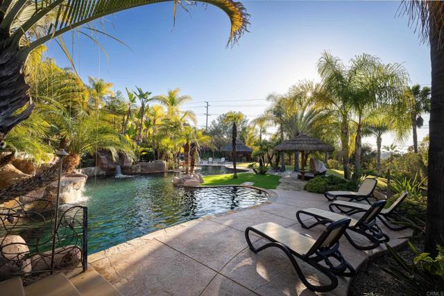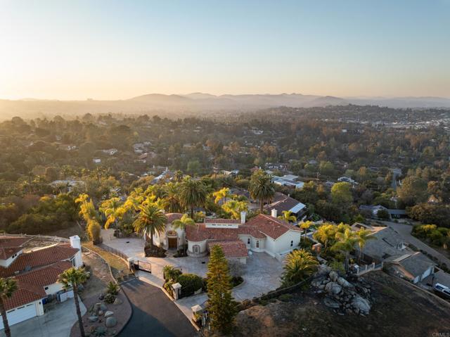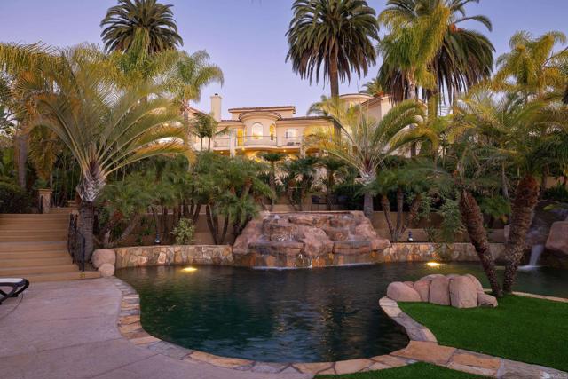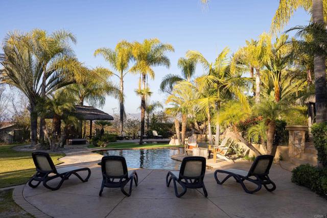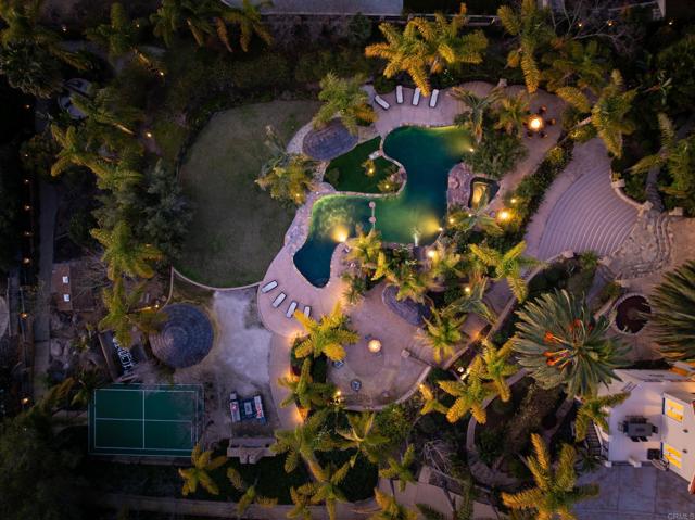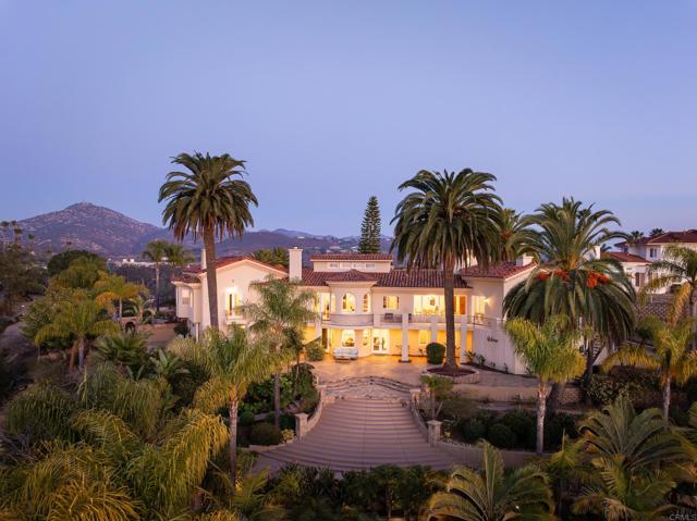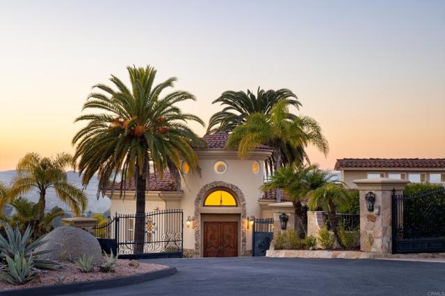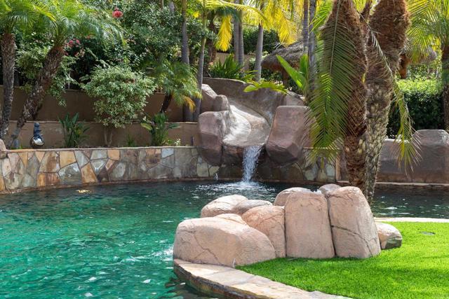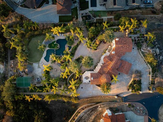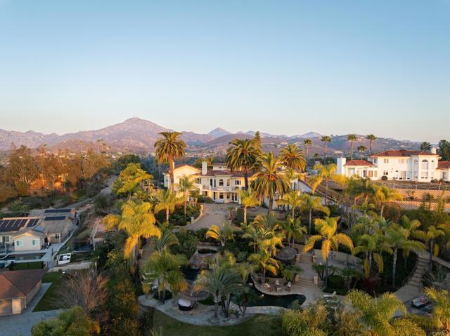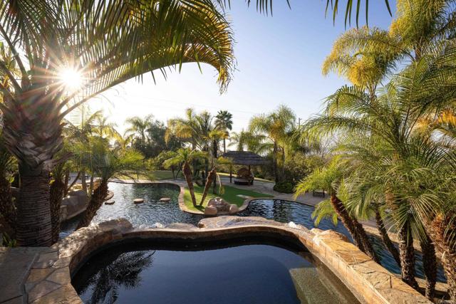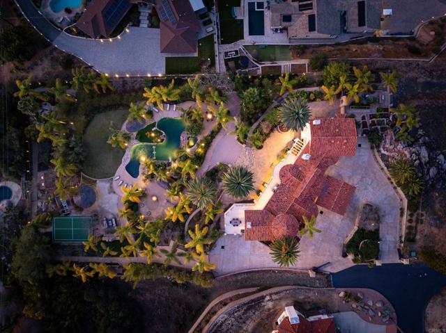 Welcome to your very own White Lotus! Enjoy vacation vibes everyday with your very own private resort nestled above Lake Poway. Spanning 5,062 SF on 1.3 acres of beautifully landscaped terrain, this architectural marvel once featured on MTV Cribs and former home of a a future NFL Hall of Famer, offers five bedrooms and six baths, seamlessly combining elegance with modern amenities for an unparalleled living experience. The property boasts incredible attention to detail, including towering Canary palms and a variety of vibrant greenery. Experience luxury with an impressive 70,000-gallon pool and spa, complete with a waterfall and a winding waterslide, along with multiple entertaining patios, gas fire pits, a grand outdoor wood-burning fireplace, and a professional-grade basketball/pickleball court. The estate offers remote-controlled pool, spa, outdoor lighting, and irrigation systems for your convenience. With a grand turret entry, spacious circular driveway, and an attached four-car garage, the gated property provides breathtaking views from its premium, end-of-cul-de-sac location on a west-facing hillside. Inside, you'll find a home boasting enviable architecture with soaring ceilings reaching up to 14 feet, complemented by elegant columns and arches. The entire design is crafted to maximize natural light through strategically placed windows, including an indirect light channel with both east and west-facing panoramic views. The residence also includes a chef's kitchen ideal for culinary pursuits, a wine cellar for the connoisseur, and a state-of-the-art movie theatre for ultimate entertainment. The time is now to indulge in the opportunity to create the ultimate vacation in your own backyard. Contact us today to schedule a private showing!Interested in this Listing?