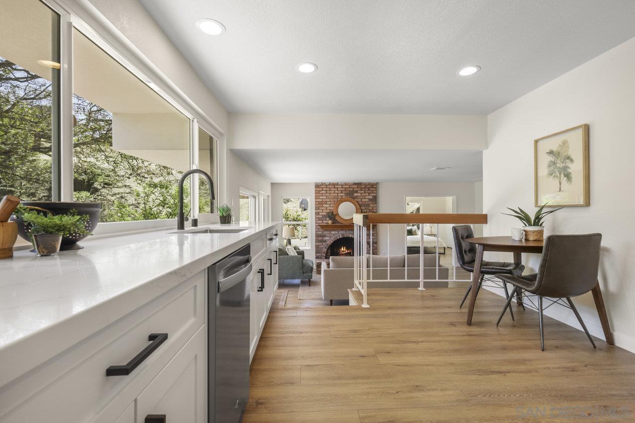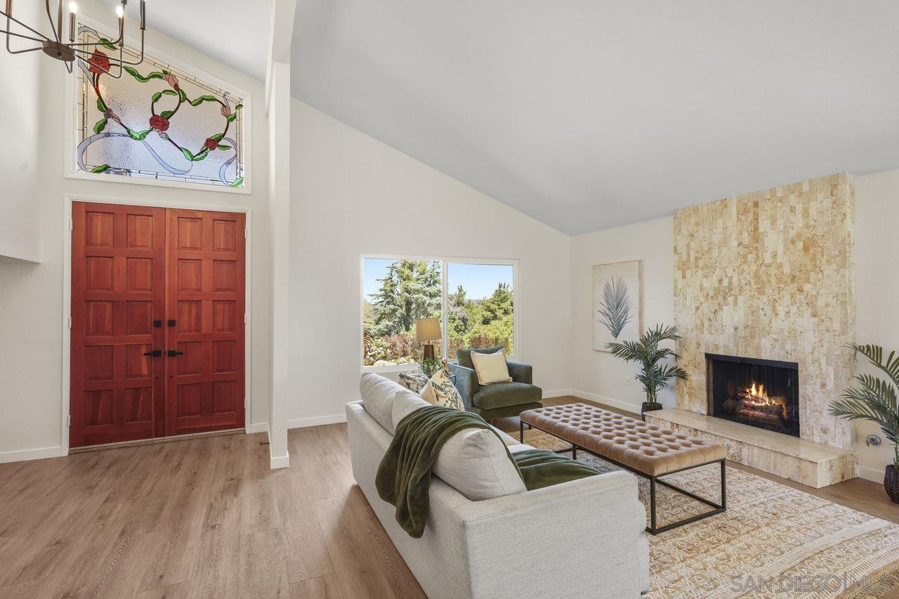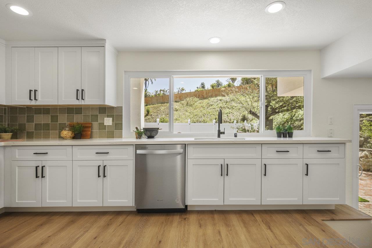 We are thrilled to showcase this beautifully renovated home, boasting elegance and premium finishes at every turn. Step inside to find a spacious 4 bedroom, 3 full bath abode that seamlessly blends functionality with high-end design. Indulge in the comfort of luxury vinyl plank flooring throughout the first floor, setting the stage for a stylish yet durable living space. The heart of this home is undoubtedly the kitchen, equipped with slow close white shaker cabinets and marbled quartz countertops that exude sophistication. Complemented by a soothing forest green backsplash, it s a culinary dream come to life. Parking is plentiful here, thanks to an oversized 3 car garage coupled with an expansive turn around driveway for all your guests. Let's not forget the convenience of a generous in-law suite on the first floor complete with a full bathroom perfect for hosting or providing privacy for extended family. Both living areas invite relaxation with cozy gas fireplaces, creating an inviting ambience day or night. Your search ends here. Experience this renovation masterpiece a true testament to luxury in Poway.Interested in this Listing?