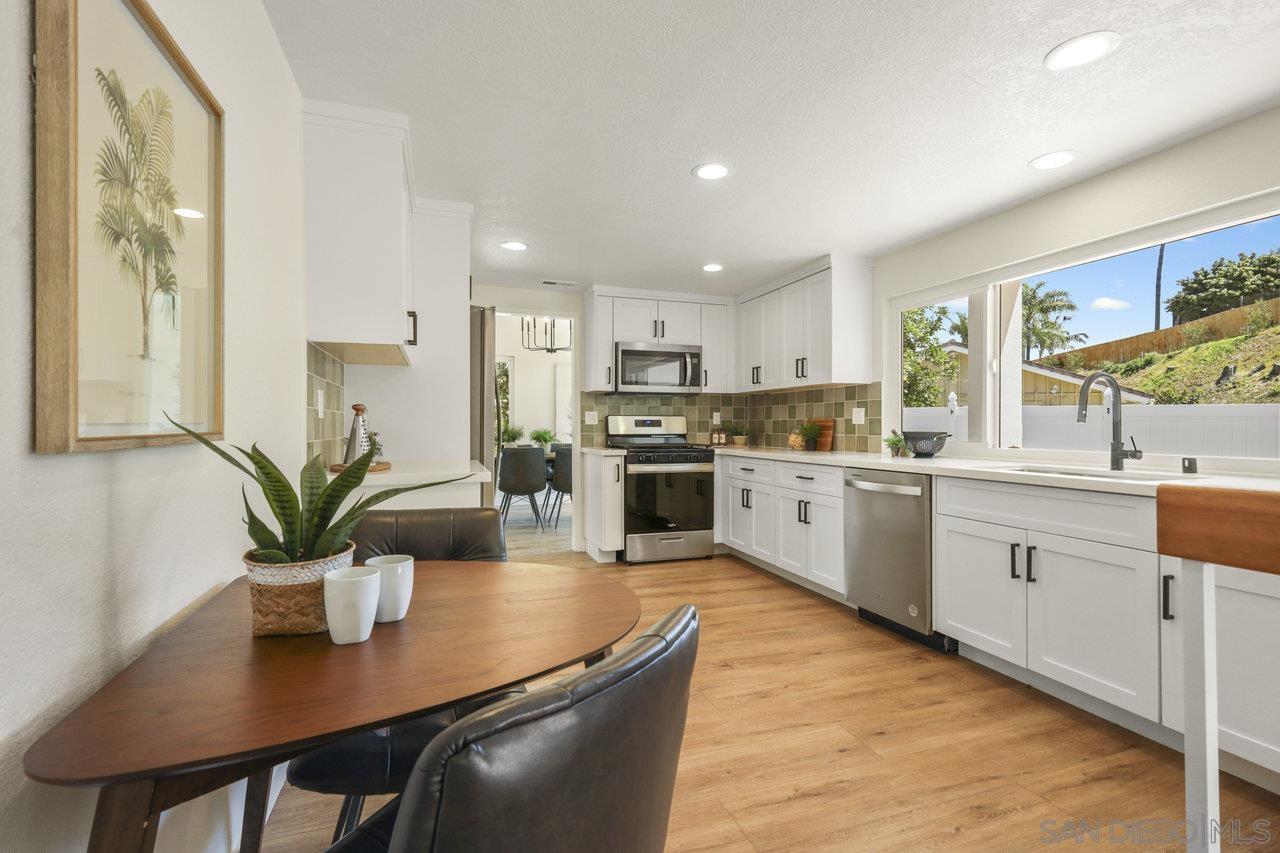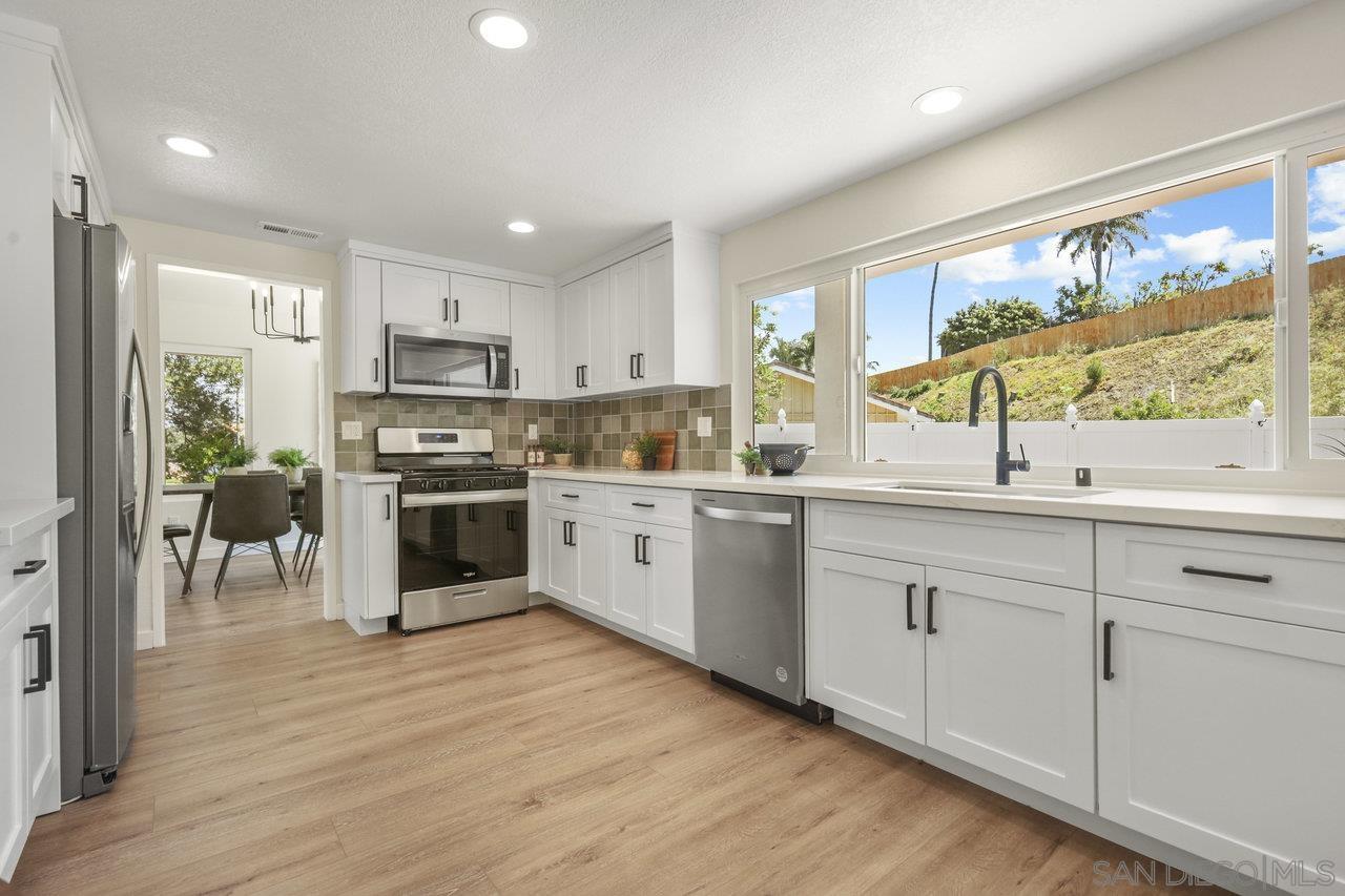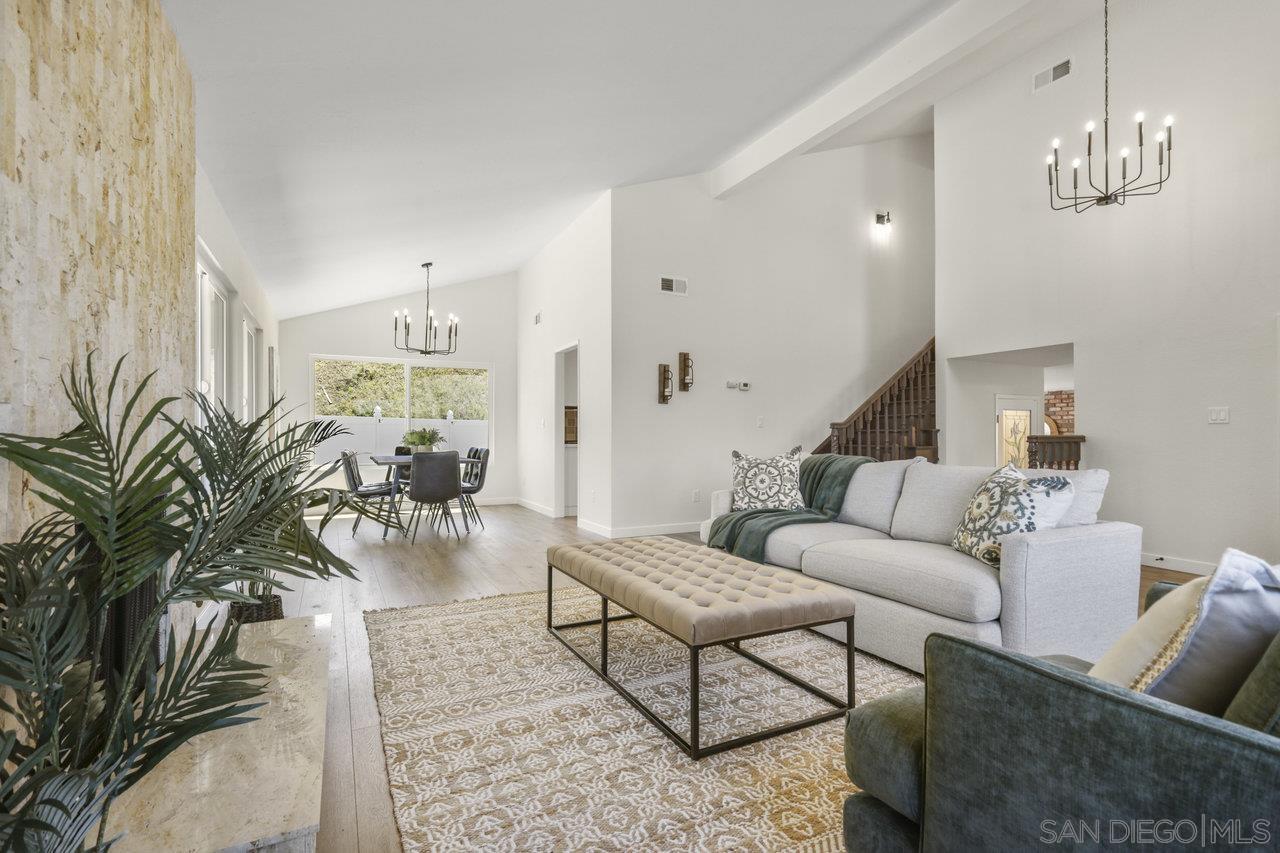 We are thrilled to showcase this beautifully renovated home, boasting elegance and premium finishes at every turn. Step inside to find a spacious 4 bedroom, 3 full bath abode that seamlessly blends functionality with high-end design. Indulge in the comfort of luxury vinyl plank flooring throughout the first floor, setting the stage for a stylish yet durable living space. The heart of this home is undoubtedly the kitchen, equipped with slow close white shaker cabinets and marbled quartz countertops that exude sophistication. Complemented by a soothing forest green backsplash, it s a culinary dream come to life. Parking is plentiful here, thanks to an oversized 3 car garage coupled with an expansive turn around driveway for all your guests. Let's not forget the convenience of a generous in-law suite on the first floor complete with a full bathroom perfect for hosting or providing privacy for extended family. Both living areas invite relaxation with cozy gas fireplaces, creating an inviting ambience day or night. Your search ends here. Experience this renovation masterpiece a true testament to luxury in Poway.Interested in this Listing?