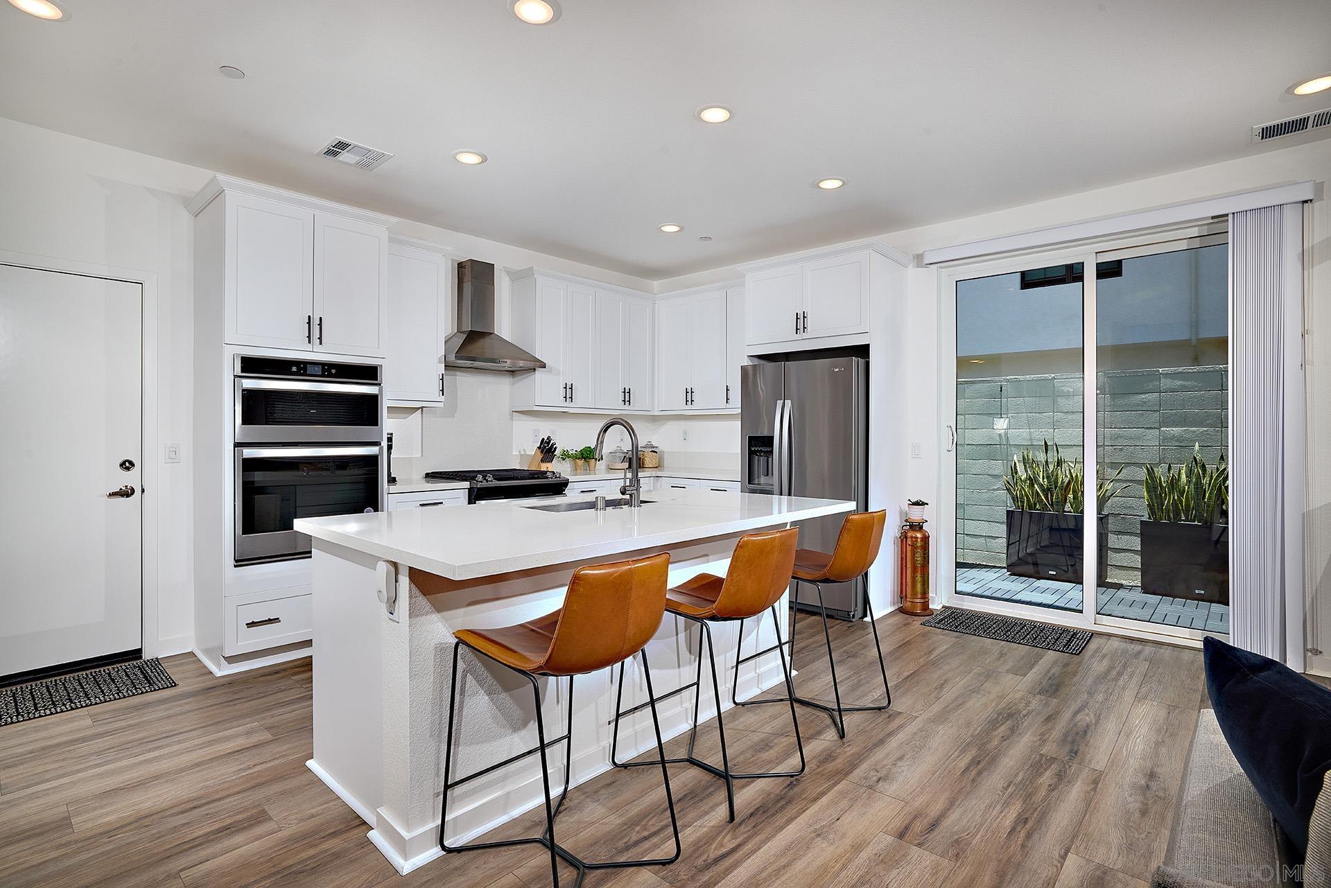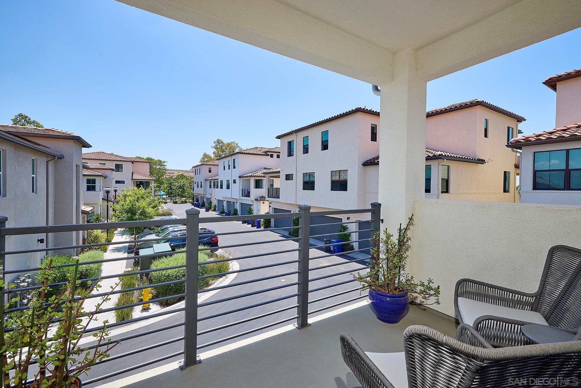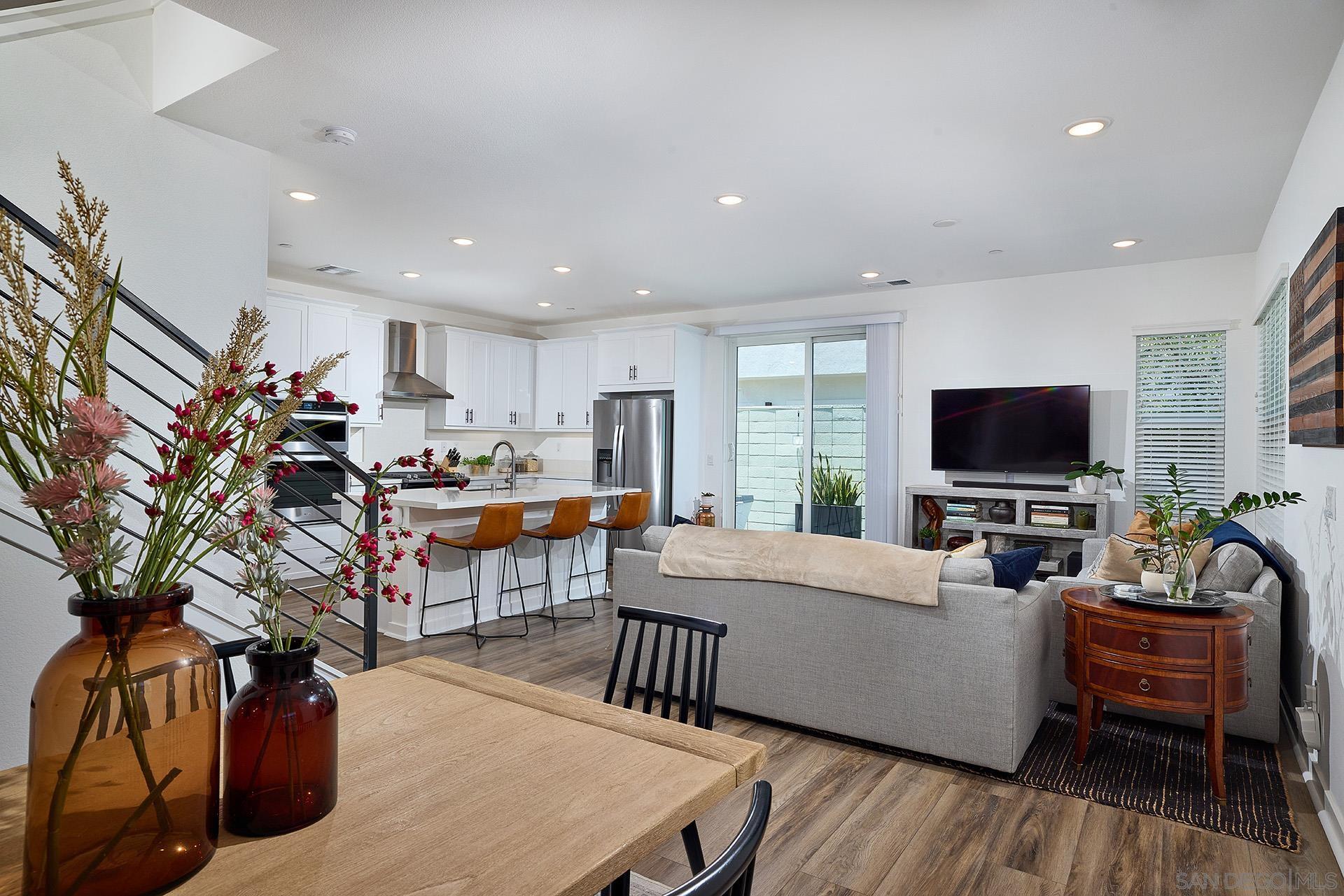 Beautiful townhome in the heart of Poway! VA Assumption possible! Direct access to the Poway Community Park and walking distance to shops, restaurants, movie theater, library and Valley Elementary School. This newer townhome, built in 2021, is an end unit in the quieter part of Poway Commons with a partial view of the community park. Townhome has upgraded LVP flooring and 9ft ceilings throughout. The first floor, which features living area, kitchen, dining area, and half bath, has its own individual private patio, staircase closet with ample storage and 2 car garage with epoxy flooring, EV charging, extra overhead storage and direct access to the kitchen. Kitchen is well designed with a separate pantry, quartz countertops, a stainless steel appliance package with double oven and a center island that seats 3-4 people. The second floor features 3 bedrooms with 2 full baths, open loft and separate laundry area. The primary bedroom has an in-suite bath, large custom closet with lots of storage and a private balcony with a partial view of the community park. The in-suite bath features a large dual vanity with quartz countertop, separate water closet and large walk-in shower with a custom quartz seating area. Two additional bedrooms are perfectly sized for secondary bedrooms and/or office spaces featuring lots of natural light and closet space. The second full bath features a single vanity with quartz countertop and large shower/bathtub. Open loft/den area can be designed in many ways to be multi-purpose with lots of space and natural light.Interested in this Listing?