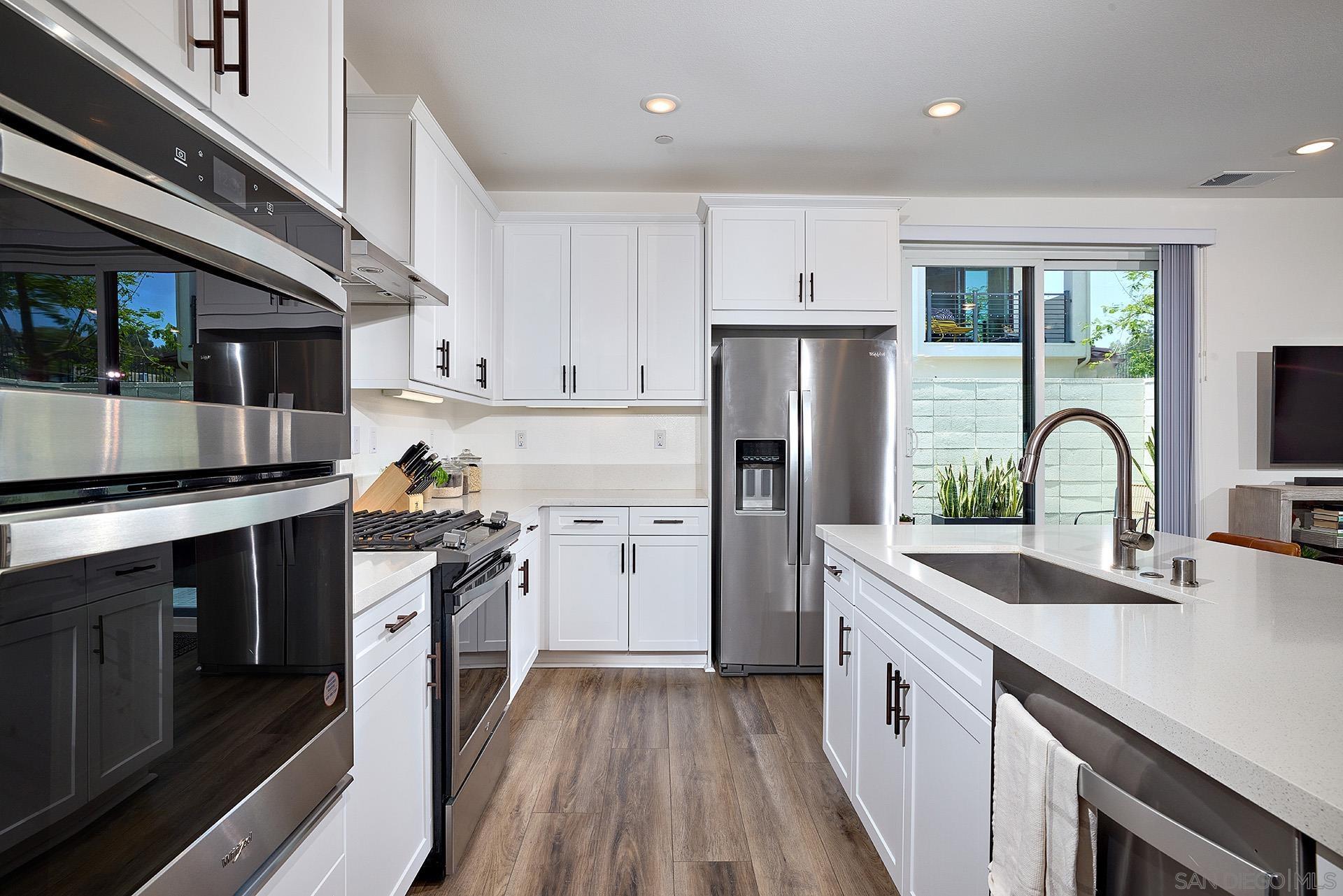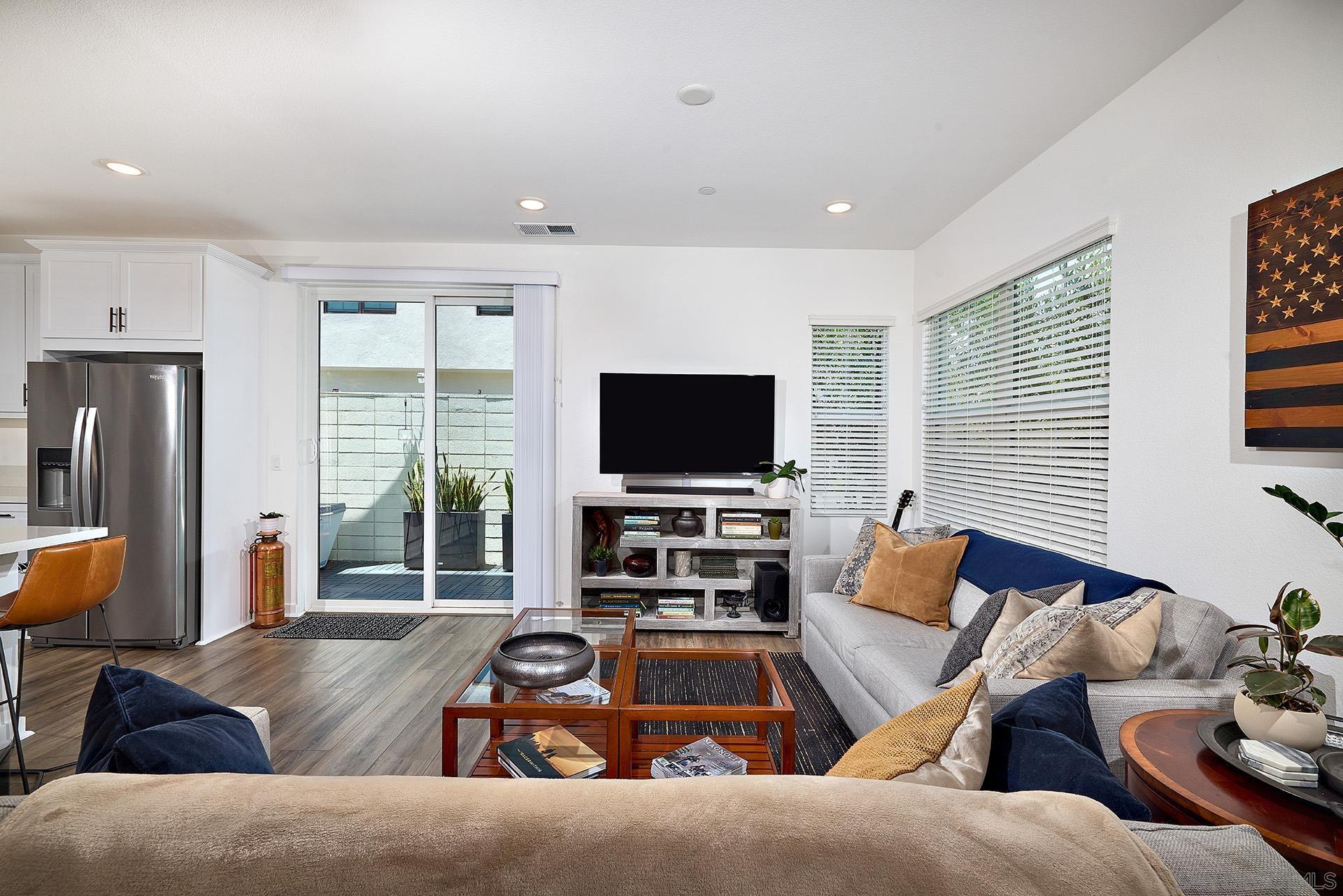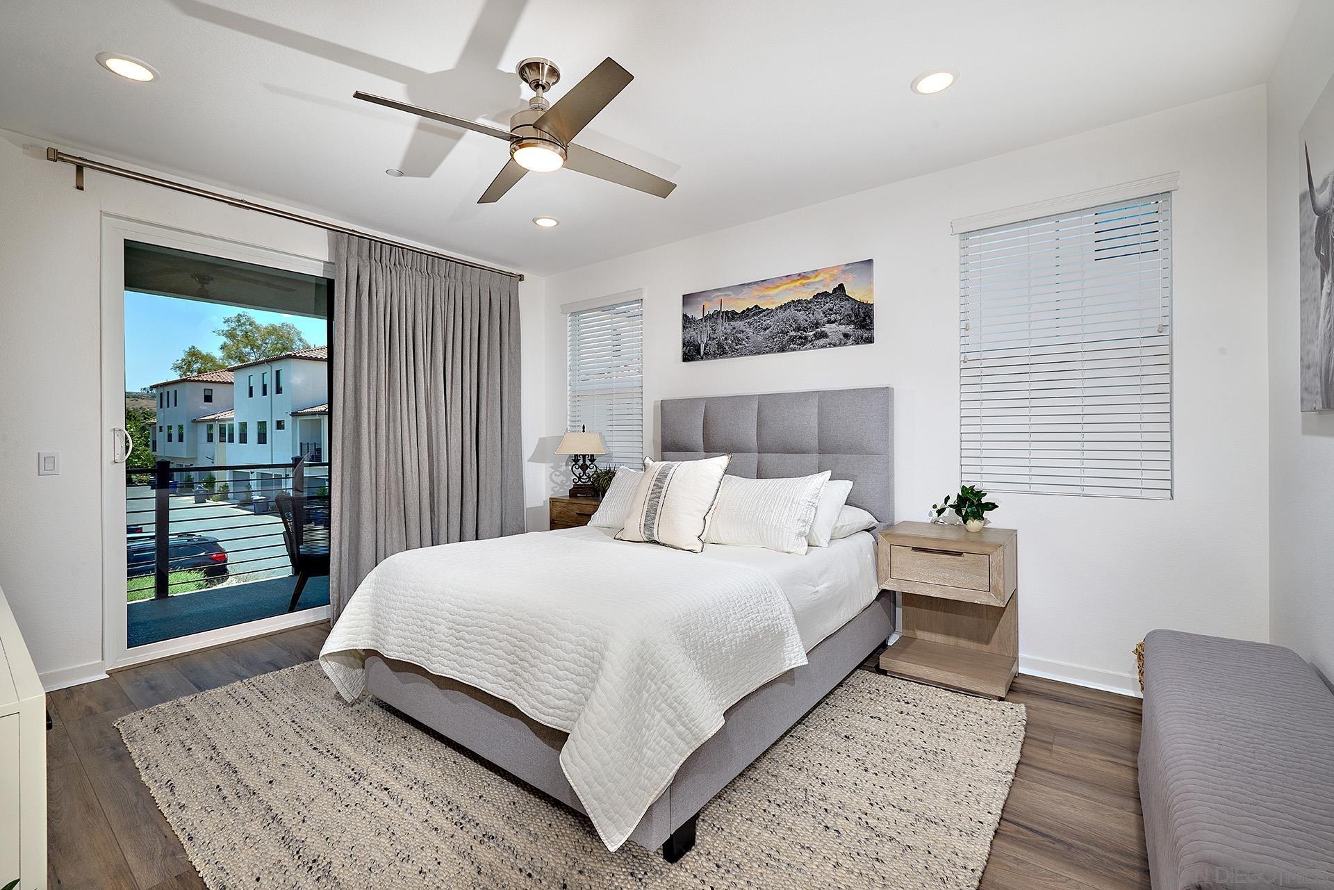 Beautiful townhome in the heart of Poway! VA Assumption possible! Direct access to the Poway Community Park and walking distance to shops, restaurants, movie theater, library and Valley Elementary School. This newer townhome, built in 2021, is an end unit in the quieter part of Poway Commons with a partial view of the community park. Townhome has upgraded LVP flooring and 9ft ceilings throughout. The first floor, which features living area, kitchen, dining area, and half bath, has its own individual private patio, staircase closet with ample storage and 2 car garage with epoxy flooring, EV charging, extra overhead storage and direct access to the kitchen. Kitchen is well designed with a separate pantry, quartz countertops, a stainless steel appliance package with double oven and a center island that seats 3-4 people. The second floor features 3 bedrooms with 2 full baths, open loft and separate laundry area. The primary bedroom has an in-suite bath, large custom closet with lots of storage and a private balcony with a partial view of the community park. The in-suite bath features a large dual vanity with quartz countertop, separate water closet and large walk-in shower with a custom quartz seating area. Two additional bedrooms are perfectly sized for secondary bedrooms and/or office spaces featuring lots of natural light and closet space. The second full bath features a single vanity with quartz countertop and large shower/bathtub. Open loft/den area can be designed in many ways to be multi-purpose with lots of space and natural light.Interested in this Listing?