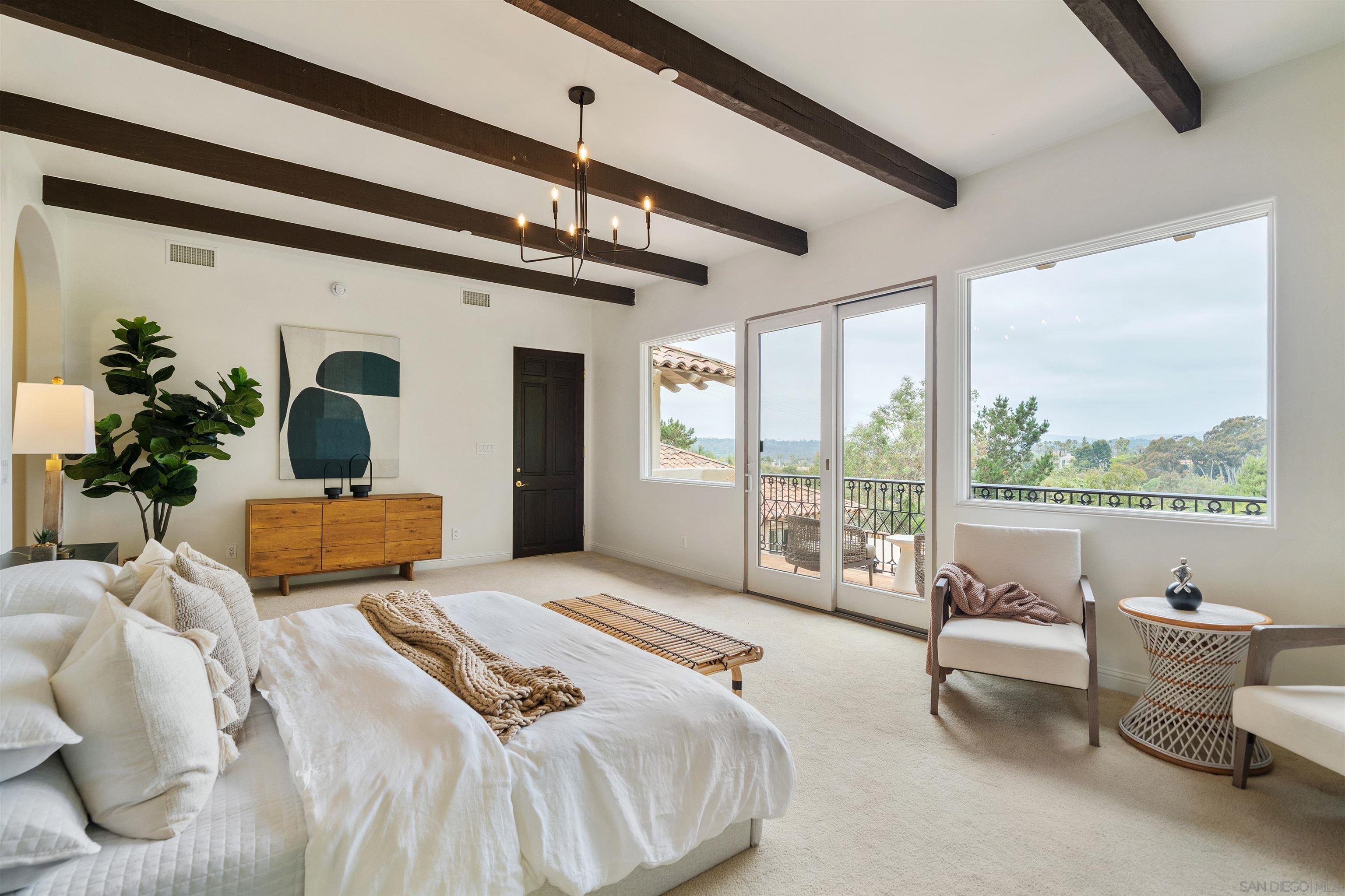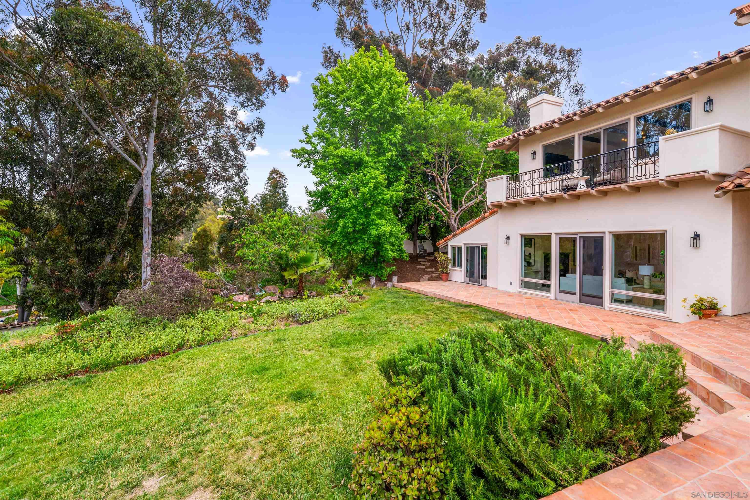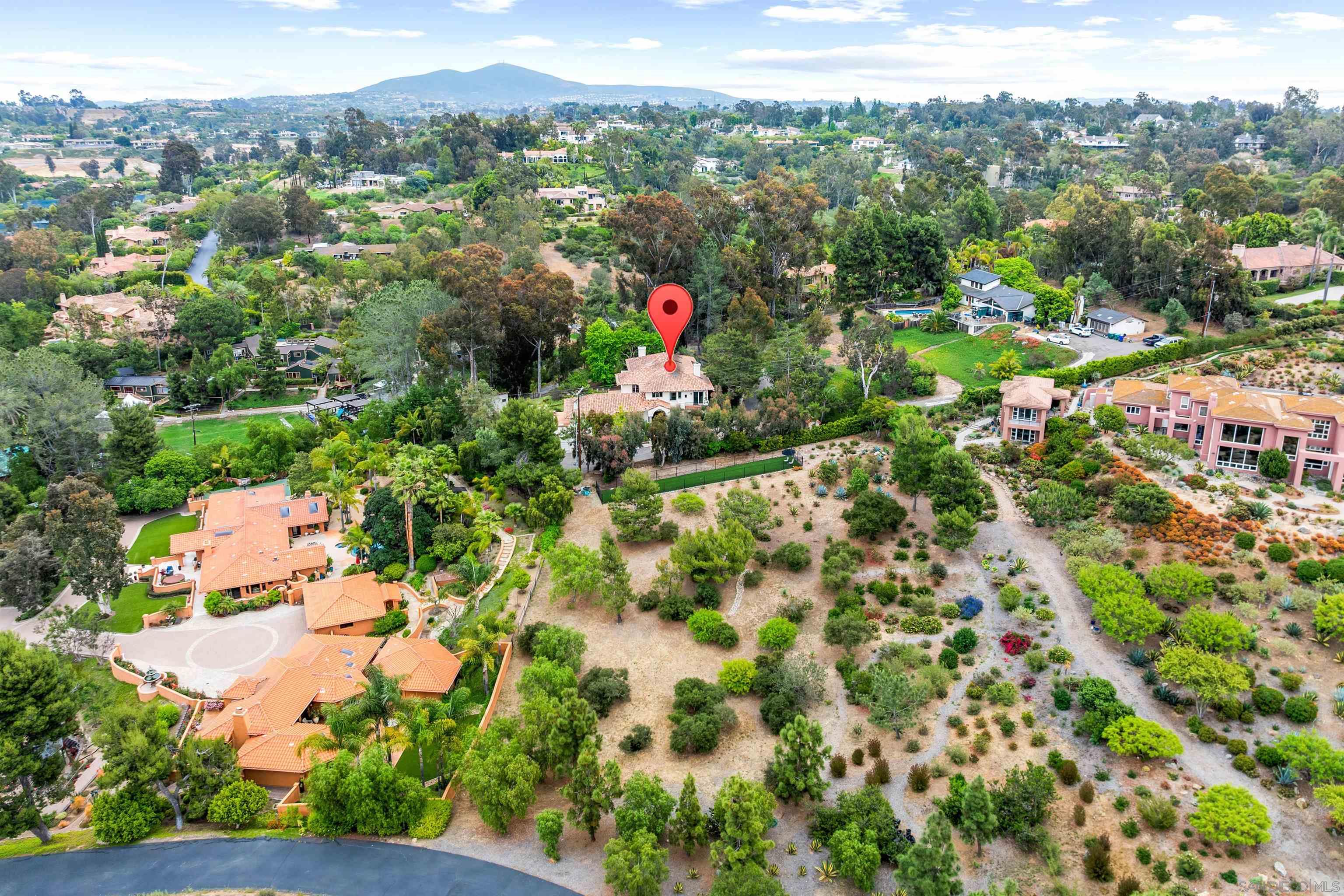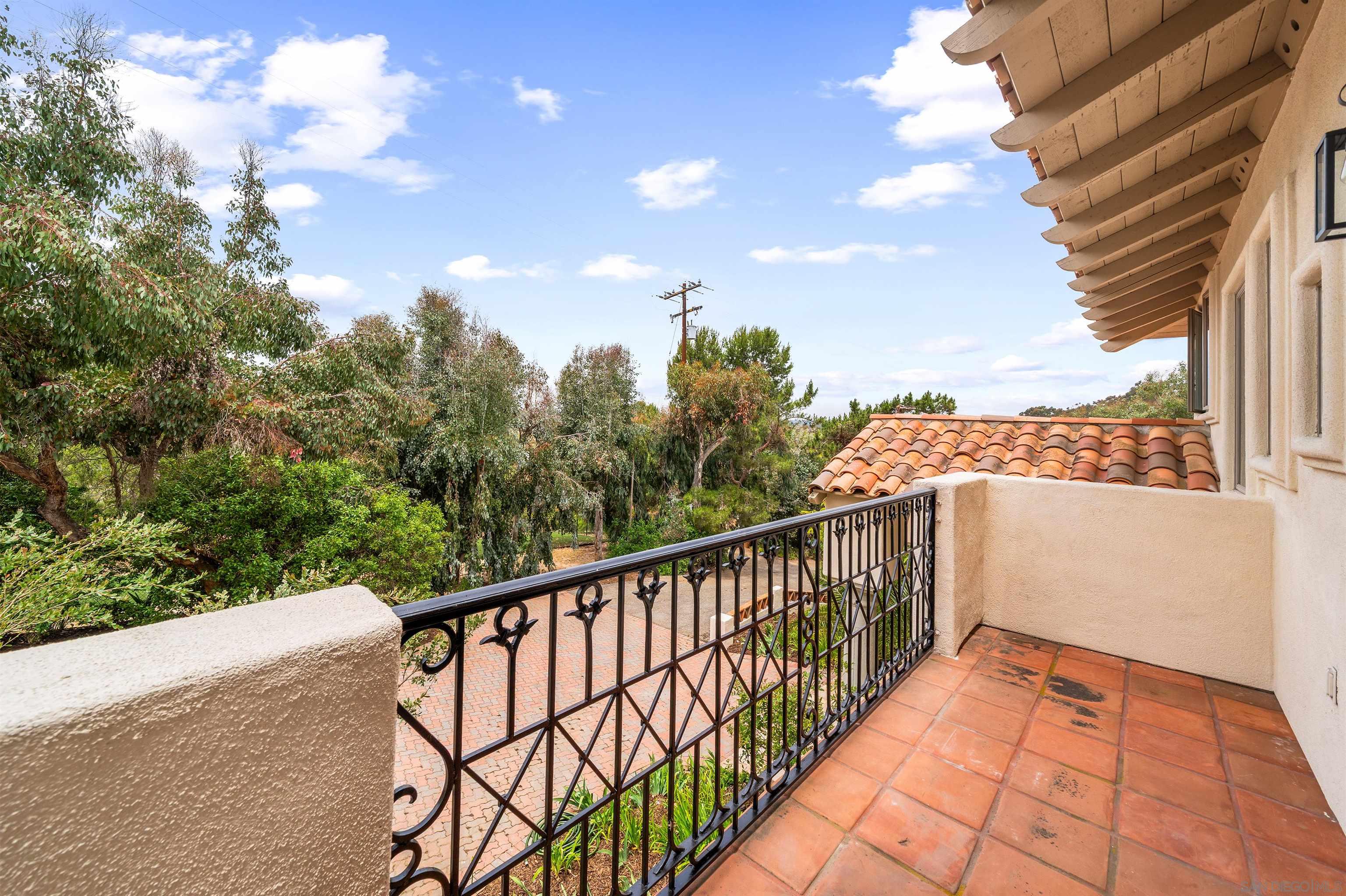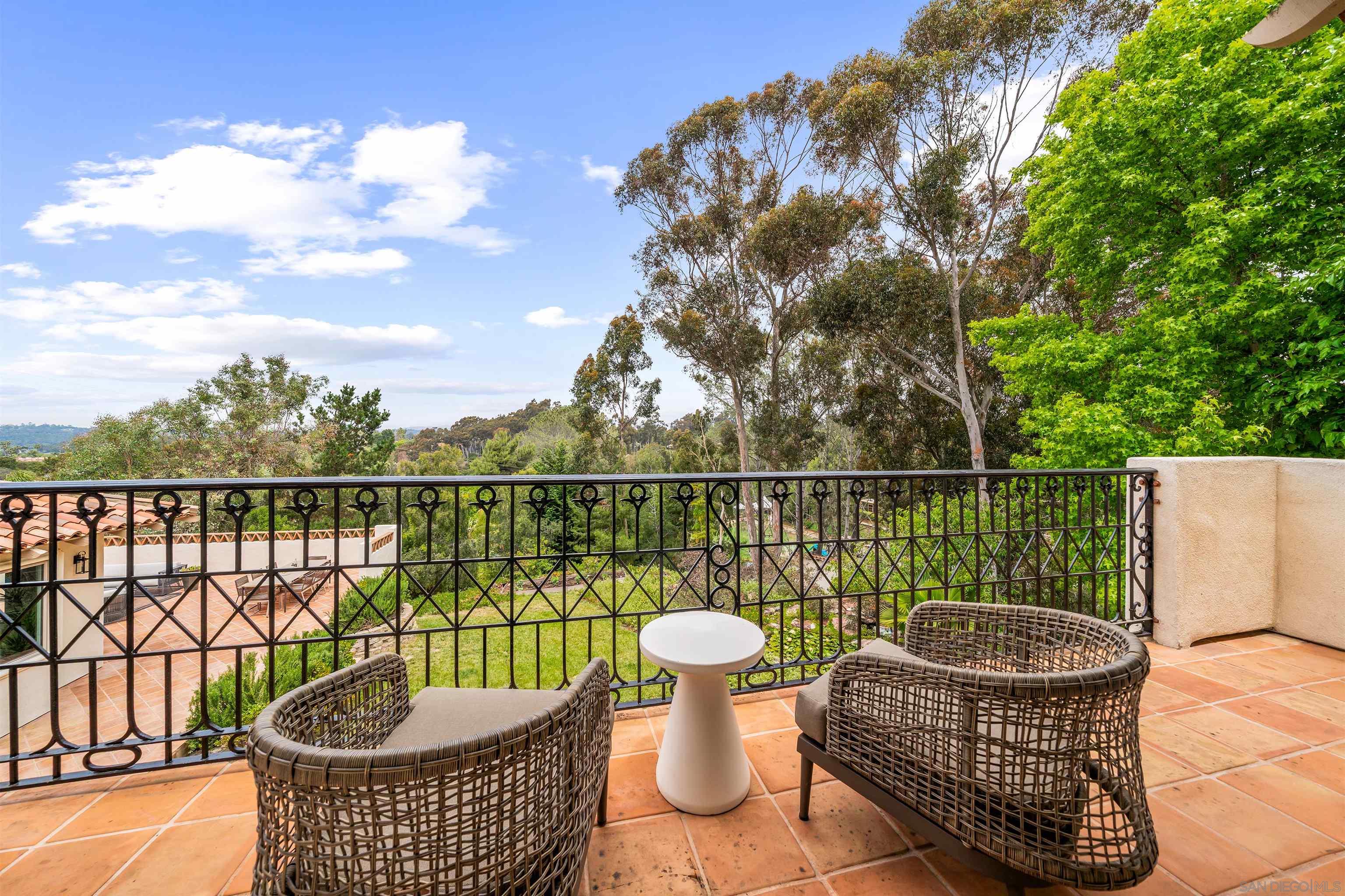 Nestled within beautiful Rancho Santa Fe, this exquisite Spanish style estate offers timeless elegance and exceptional privacy on 1.32 beautifully landscaped acres. Surrounded by mature trees and featuring a tranquil pond, this home is designed for both grand entertaining and an everyday retreat. Originally built in 1976, the home has been thoughtfully expanded and remodeled over the years, showcasing a harmonious blend of classic craftsmanship and luxury. Inside, you'll find expansive living spaces filled with natural light, dramatic wood beam ceilings, and handcrafted Spanish tile accents that lend unique charm throughout. The chef s kitchen is an entertainer s dream, highlighted by rare Blue Bahia granite countertops and ample space for gathering. Designed with flexibility in mind, the home includes two luxurious upstairs primary suite - both with oversized bathtubs, including one with a jetted tub - as well as five additional rooms that can be tailored to your lifestyle as bedrooms, offices, playrooms, or creative spaces. Step outside to an oversized saltillo tiled patio perfect for hosting gatherings, and enjoy the added bonus of a 600+ sq. ft. detached space perfect as an office, private studio, workshop with a half bath, or easily convert into an ADU - offering a versatile haven for productivity, creativity, or relaxation. Indulge in exceptional amenities, from your own private sauna and an expansive nine-car garage to beautifully appointed fireplaces in the primary bedroom, family room, and reading room each space designed for comfort and sophistication.Interested in this Listing?