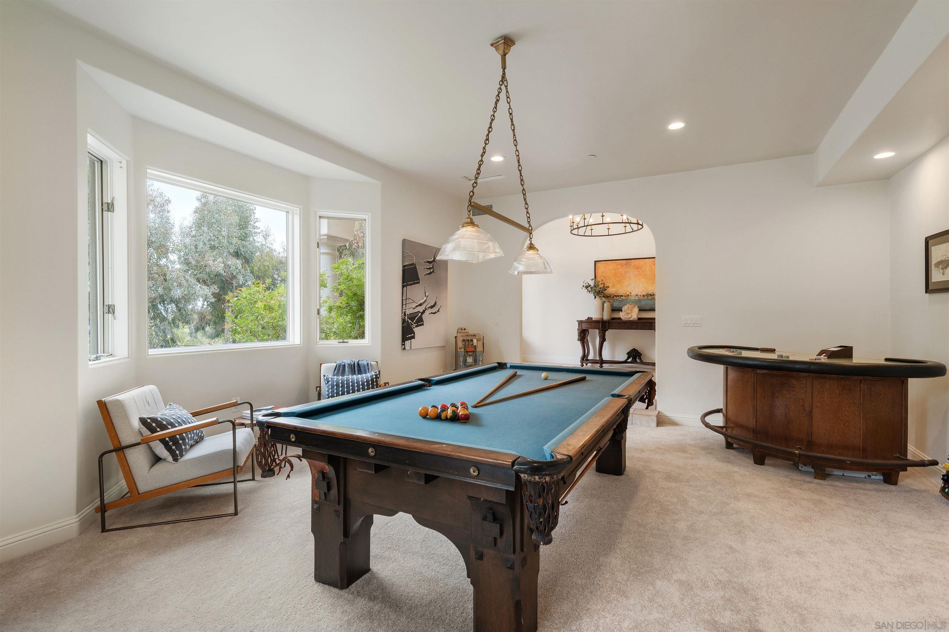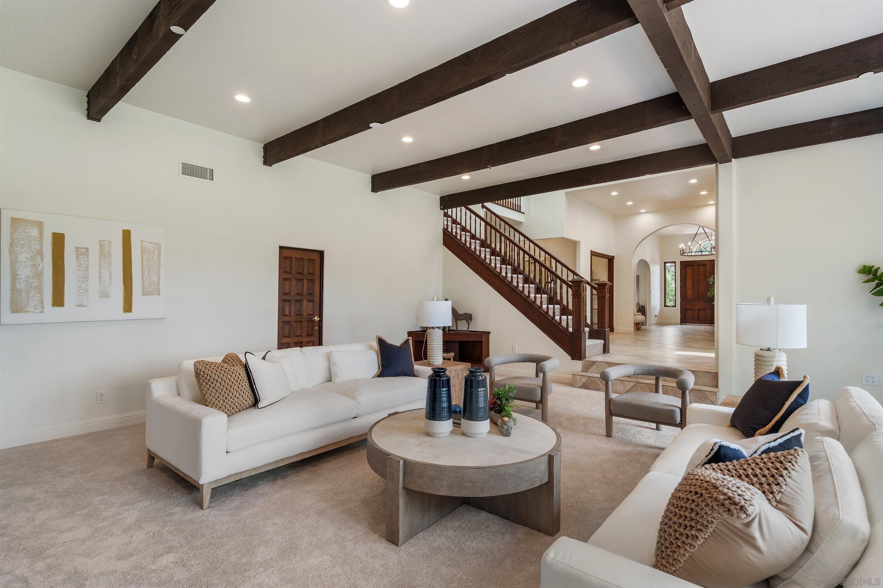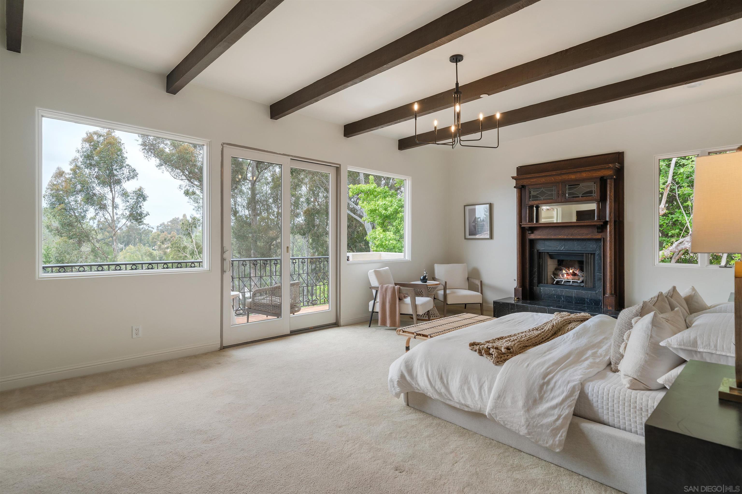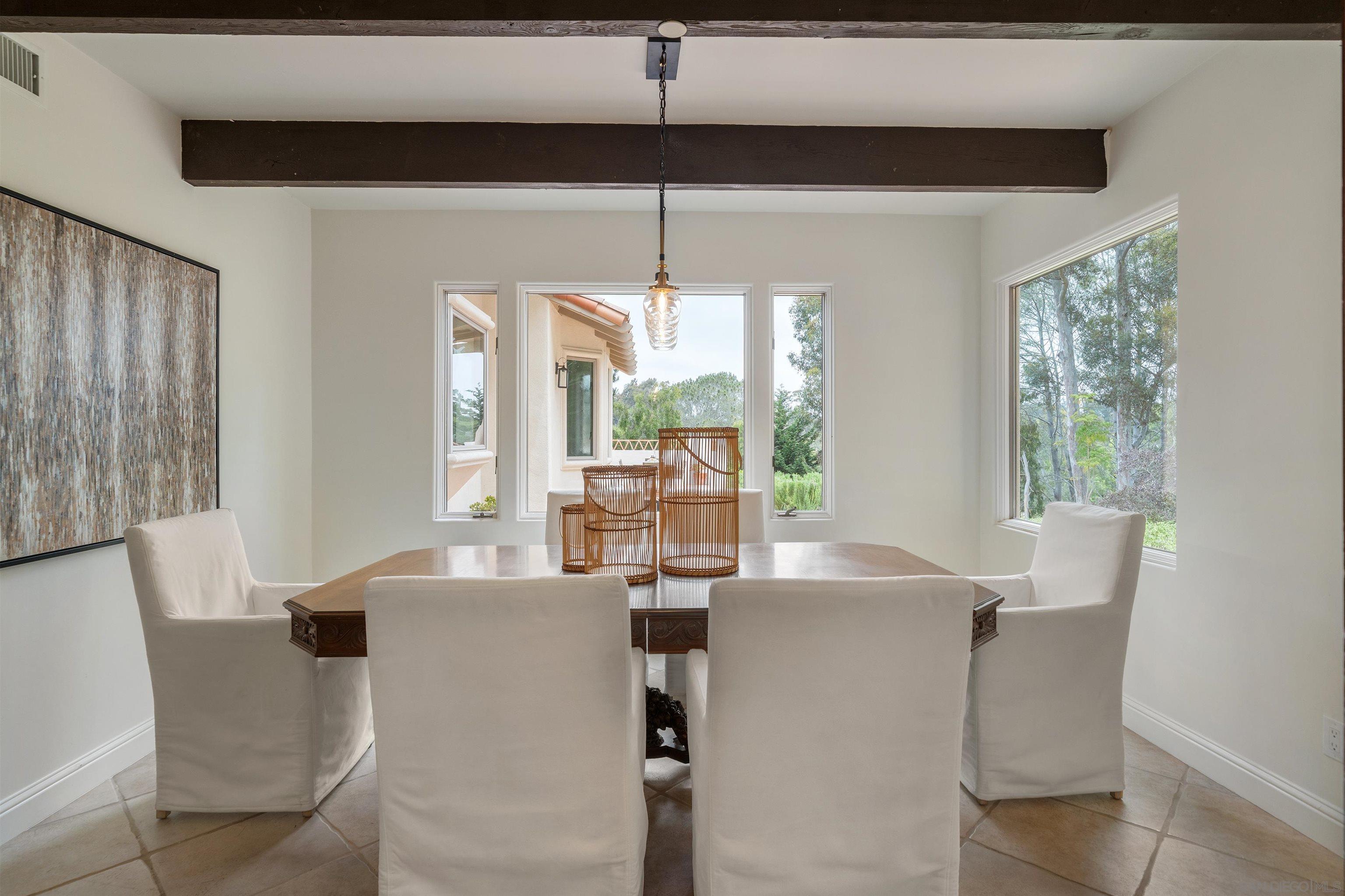 Nestled within beautiful Rancho Santa Fe, this exquisite Spanish style estate offers timeless elegance and exceptional privacy on 1.32 beautifully landscaped acres. Surrounded by mature trees and featuring a tranquil pond, this home is designed for both grand entertaining and an everyday retreat. Originally built in 1976, the home has been thoughtfully expanded and remodeled over the years, showcasing a harmonious blend of classic craftsmanship and luxury. Inside, you'll find expansive living spaces filled with natural light, dramatic wood beam ceilings, and handcrafted Spanish tile accents that lend unique charm throughout. The chef s kitchen is an entertainer s dream, highlighted by rare Blue Bahia granite countertops and ample space for gathering. Designed with flexibility in mind, the home includes two luxurious upstairs primary suite - both with oversized bathtubs, including one with a jetted tub - as well as five additional rooms that can be tailored to your lifestyle as bedrooms, offices, playrooms, or creative spaces. Step outside to an oversized saltillo tiled patio perfect for hosting gatherings, and enjoy the added bonus of a 600+ sq. ft. detached space perfect as an office, private studio, workshop with a half bath, or easily convert into an ADU - offering a versatile haven for productivity, creativity, or relaxation. Indulge in exceptional amenities, from your own private sauna and an expansive nine-car garage to beautifully appointed fireplaces in the primary bedroom, family room, and reading room each space designed for comfort and sophistication.Interested in this Listing?