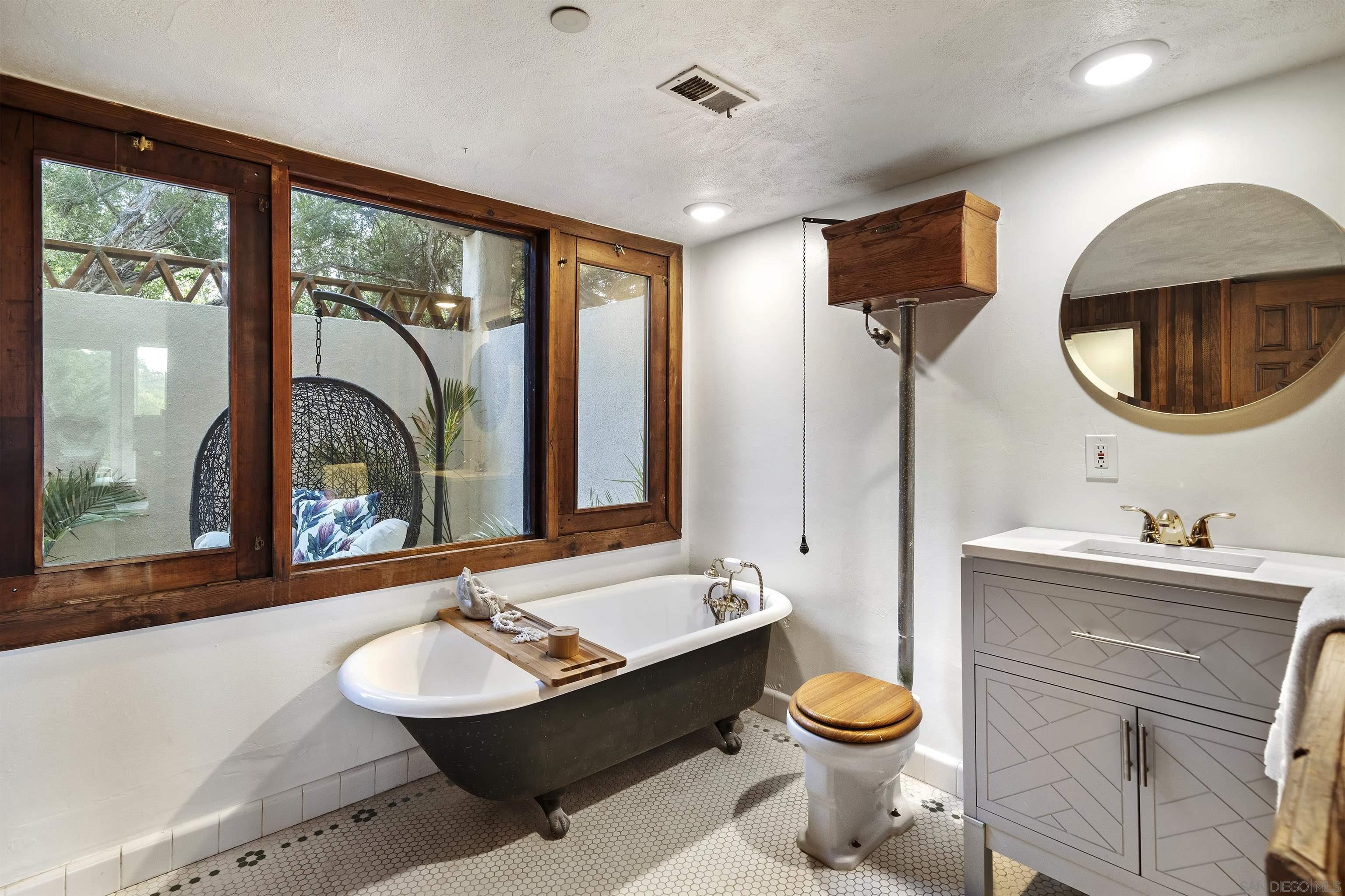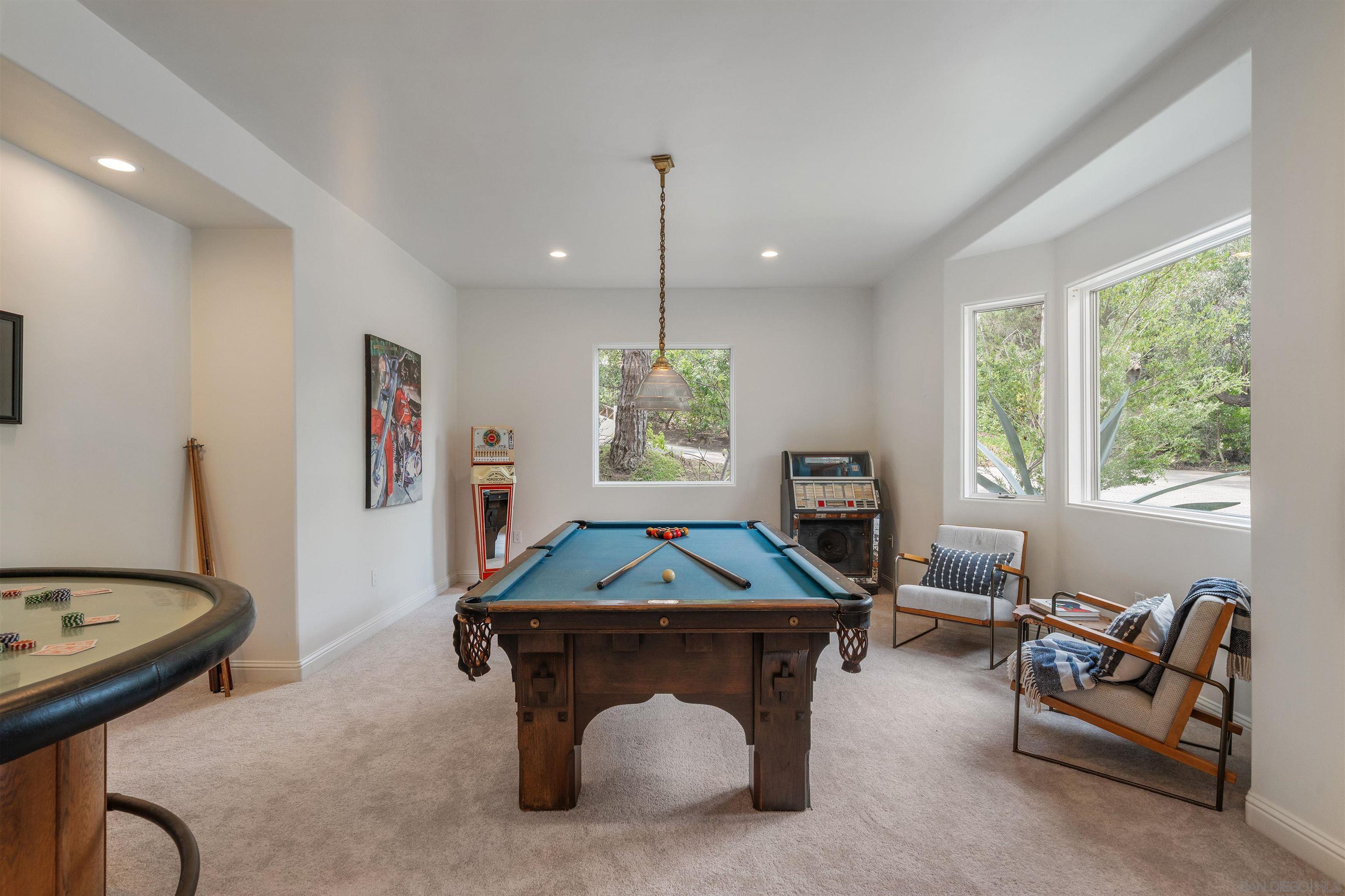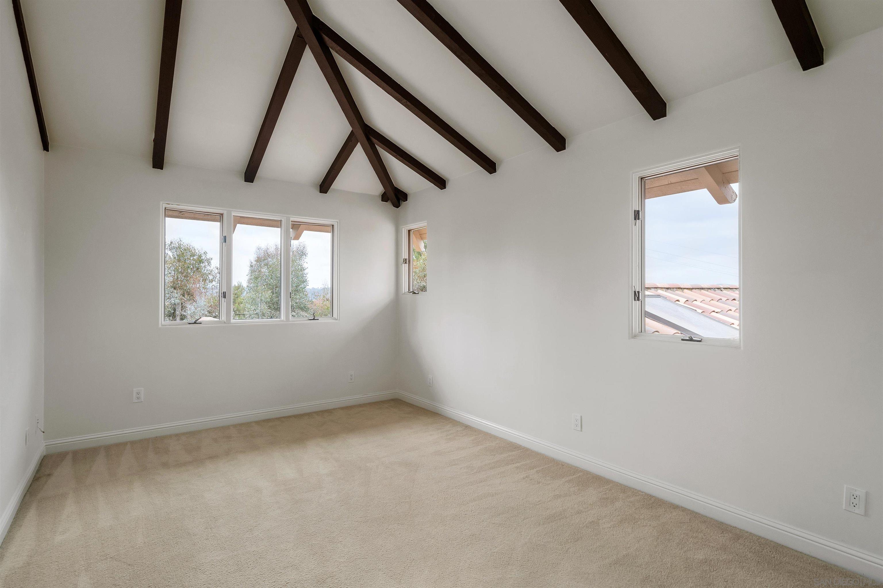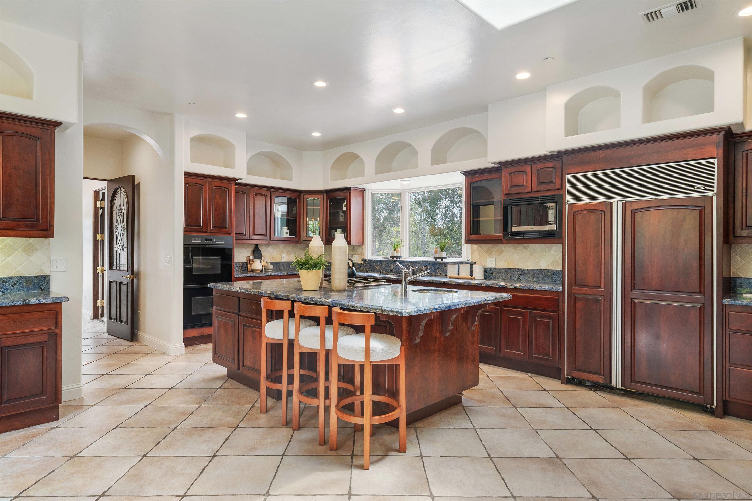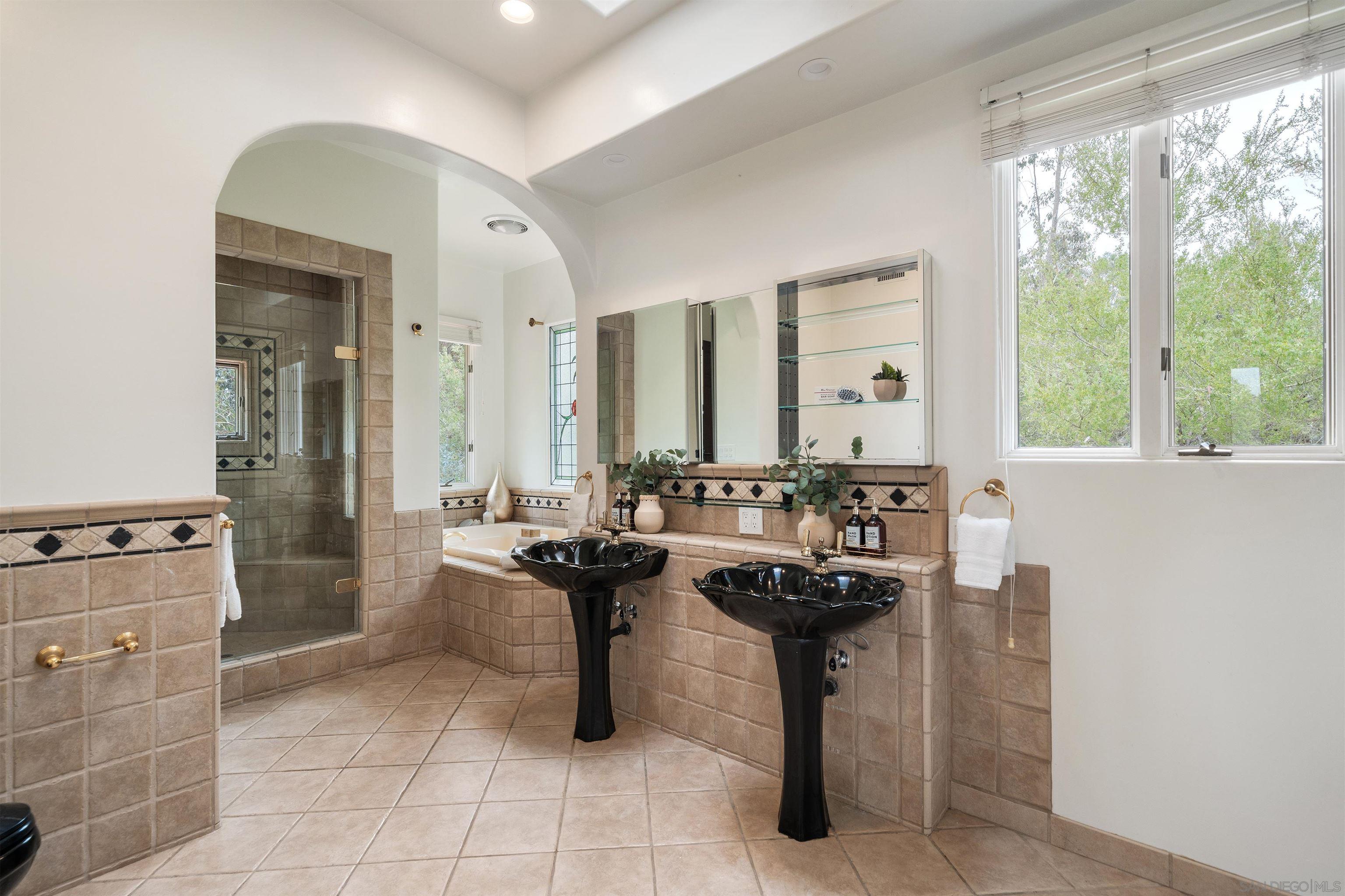 Nestled within beautiful Rancho Santa Fe, this exquisite Spanish style estate offers timeless elegance and exceptional privacy on 1.32 beautifully landscaped acres. Surrounded by mature trees and featuring a tranquil pond, this home is designed for both grand entertaining and an everyday retreat. Originally built in 1976, the home has been thoughtfully expanded and remodeled over the years, showcasing a harmonious blend of classic craftsmanship and luxury. Inside, you'll find expansive living spaces filled with natural light, dramatic wood beam ceilings, and handcrafted Spanish tile accents that lend unique charm throughout. The chef s kitchen is an entertainer s dream, highlighted by rare Blue Bahia granite countertops and ample space for gathering. Designed with flexibility in mind, the home includes two luxurious upstairs primary suite - both with oversized bathtubs, including one with a jetted tub - as well as five additional rooms that can be tailored to your lifestyle as bedrooms, offices, playrooms, or creative spaces. Step outside to an oversized saltillo tiled patio perfect for hosting gatherings, and enjoy the added bonus of a 600+ sq. ft. detached space perfect as an office, private studio, workshop with a half bath, or easily convert into an ADU - offering a versatile haven for productivity, creativity, or relaxation. Indulge in exceptional amenities, from your own private sauna and an expansive nine-car garage to beautifully appointed fireplaces in the primary bedroom, family room, and reading room each space designed for comfort and sophistication.Interested in this Listing?