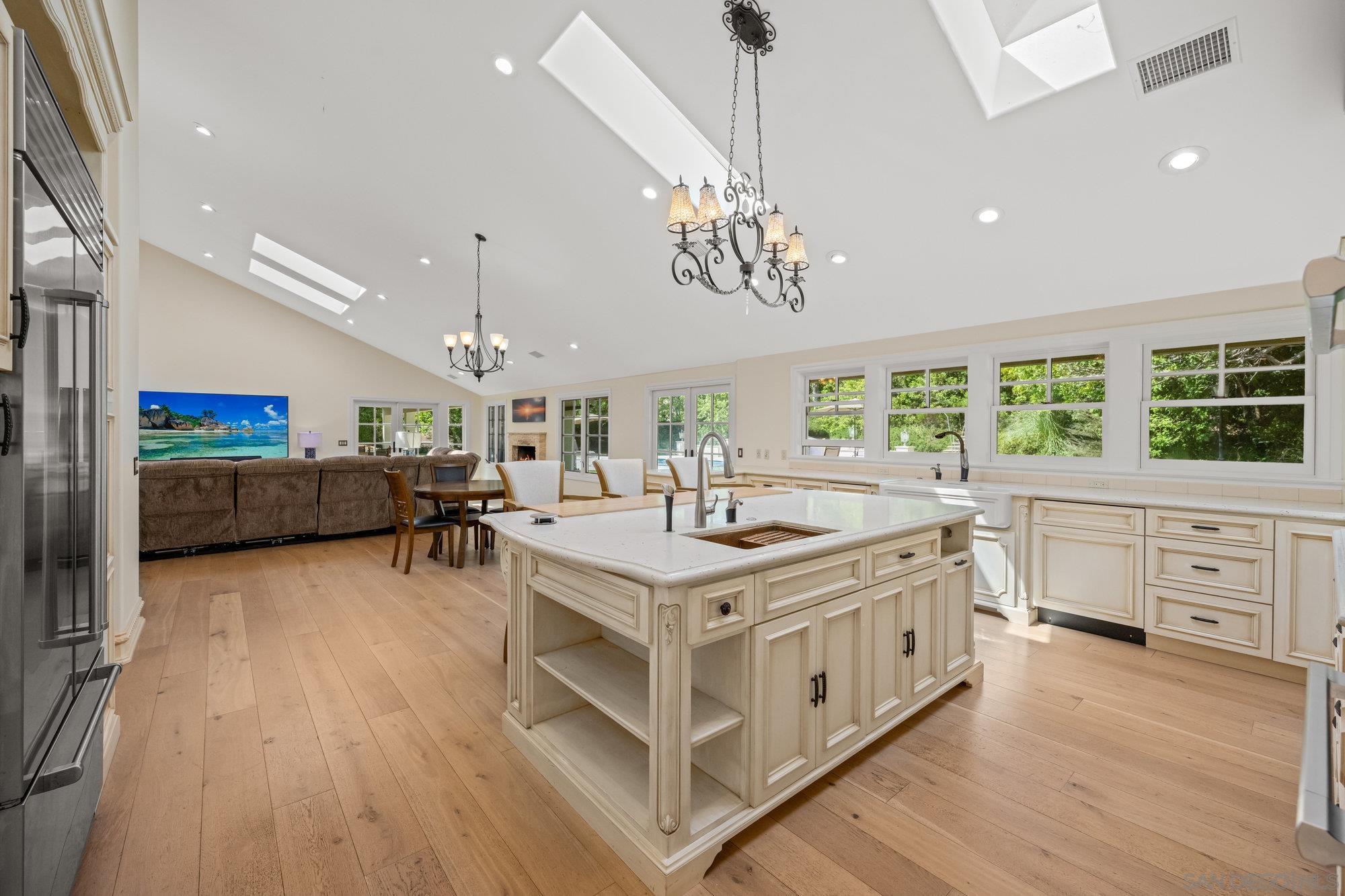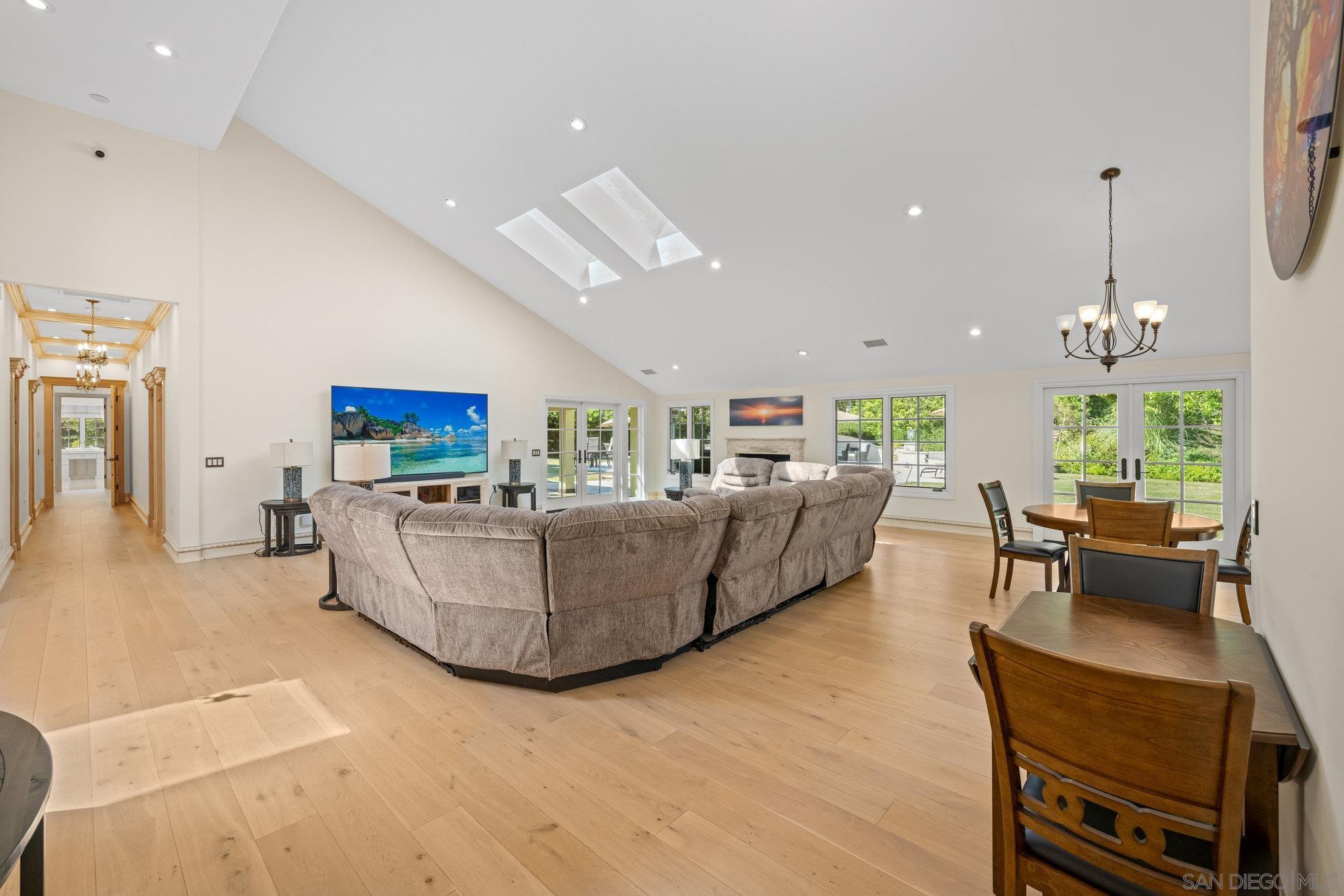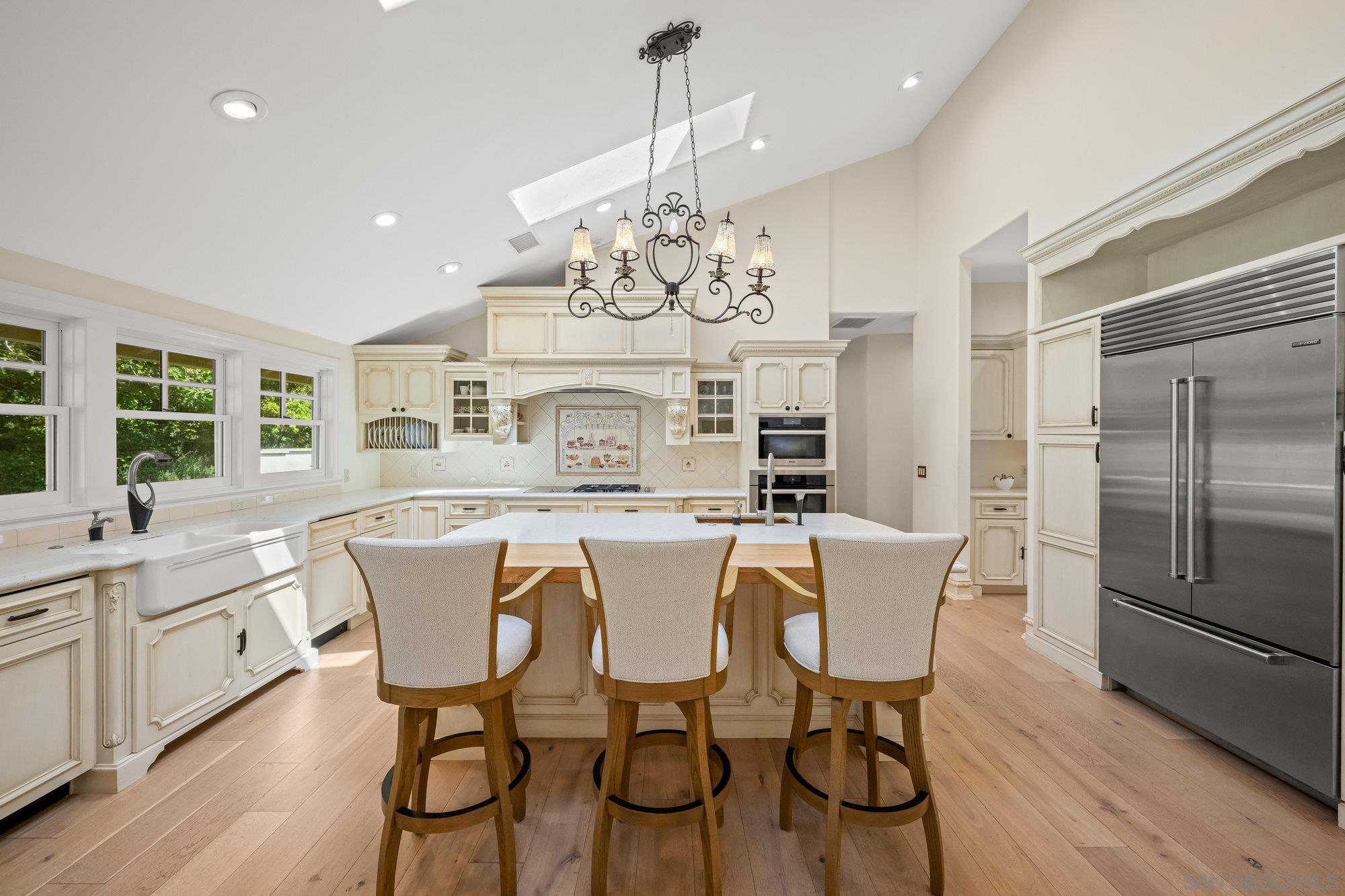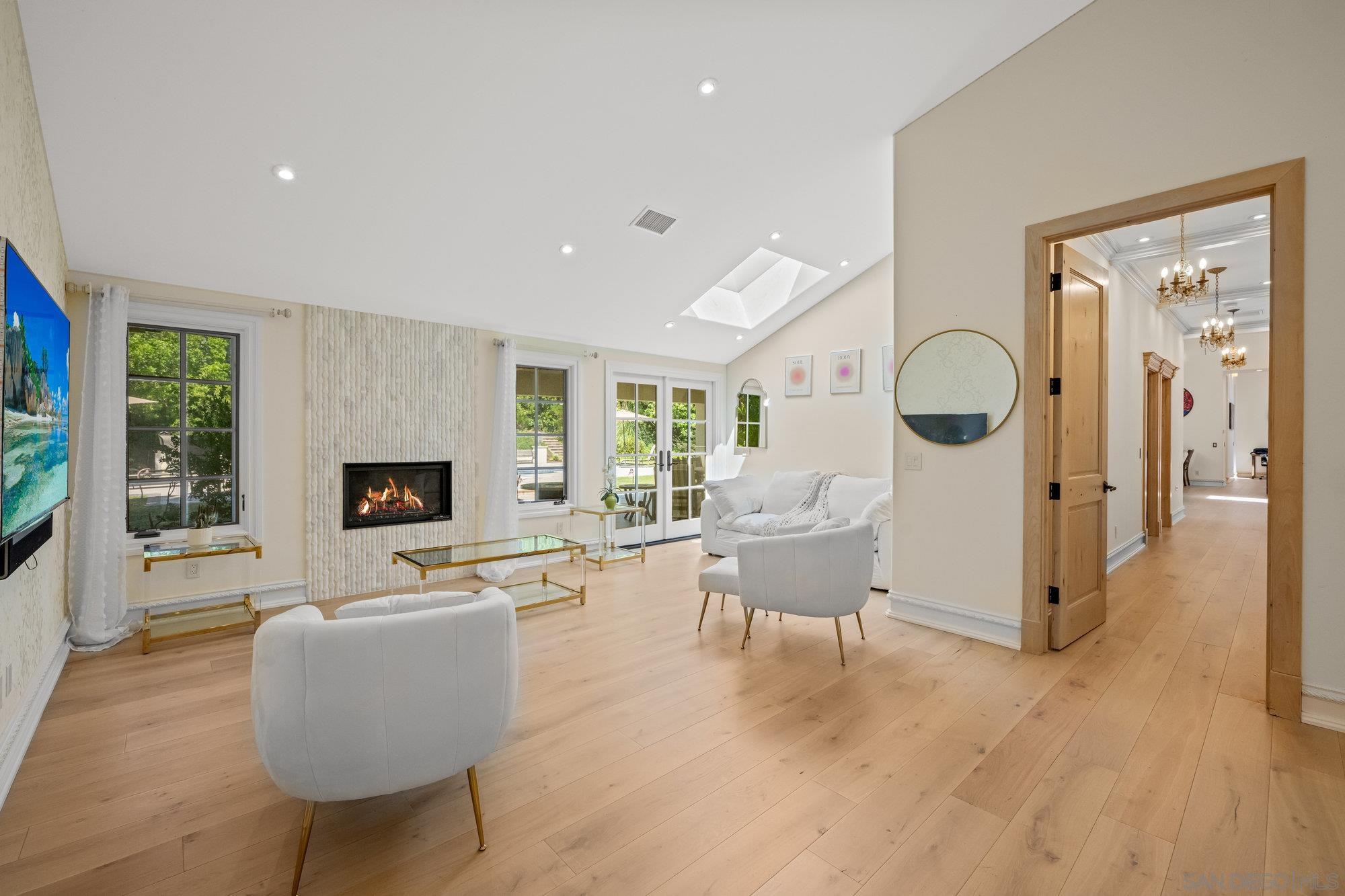 Experience elevated one-level living on 2.75 ultra-private, flat acres in Rancho Santa Fe s exclusive Covenant. Rebuilt in 2017 with meticulous attention to detail, this 4,550 sq ft custom estate blends timeless European design with modern California ease. The open-concept floor plan features 5 en suite bedrooms and 5.5 baths, soaring ceilings, and expansive living spaces filled with natural light. The chef s kitchen is a true centerpiece, showcasing sleek European cabinetry, top-of-the-line Miele appliances including dual cooktops and warming drawer, plus whole-home water filtration. A formal dining space and stone-clad fireplace anchor the seamless transition to the elegant family room, creating an inviting space for both entertaining and everyday living. Curated with designer stonework, custom fireplaces, and smart home features including integrated speakers and security cameras this home offers effortless sophistication. Outside, enjoy lush landscaping, a sparkling pool and spa, covered patio, and ample parking for up to 18 vehicles. A separate dog wash station with private access adds thoughtful convenience. Located on the desirable west side of the Covenant, minutes from Roger Rowe School, RSF Golf & Tennis Clubs, and village amenities. This is Rancho Santa Fe luxury at its finest single-level, serene, and simply exceptional.Interested in this Listing?