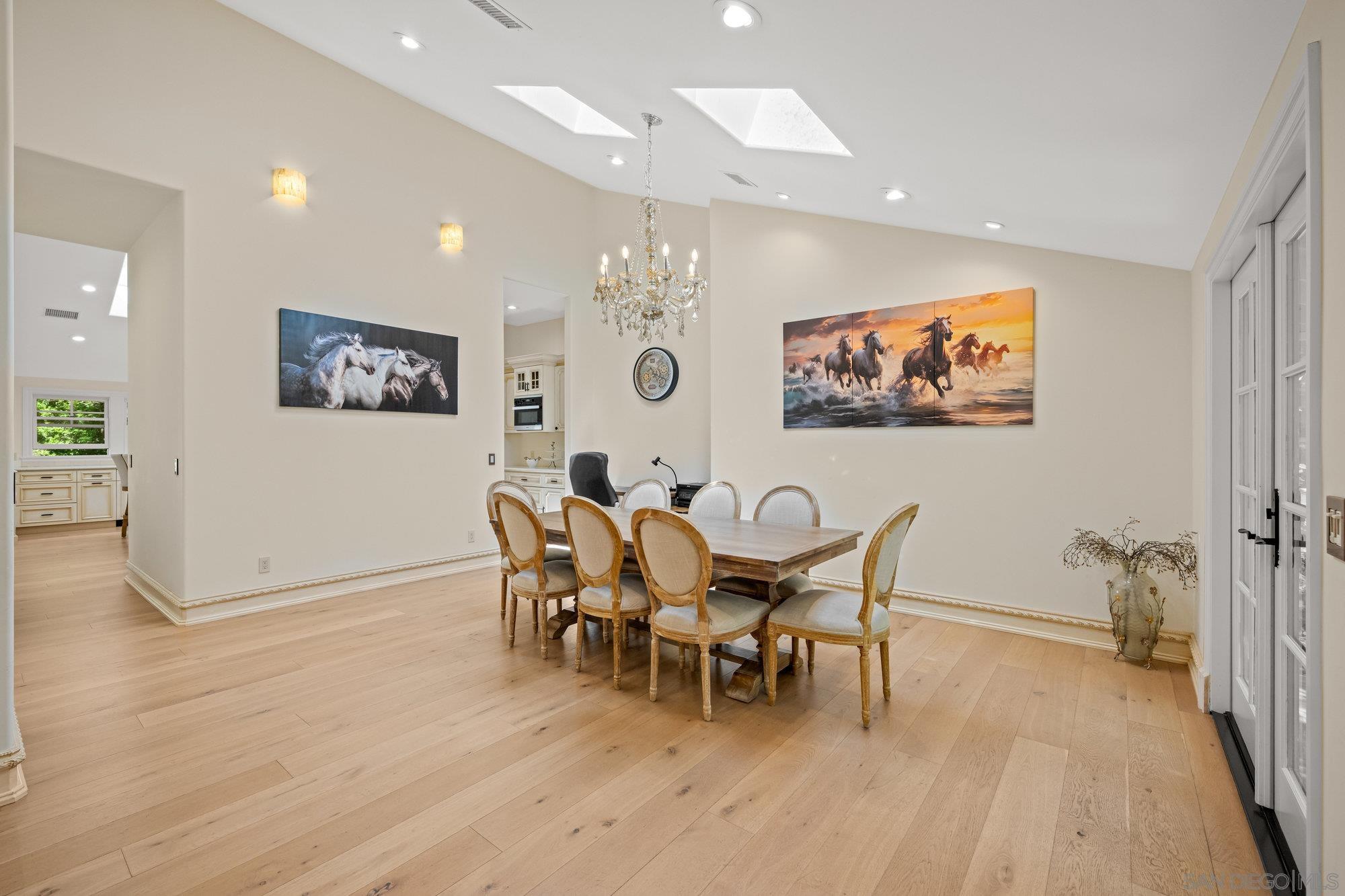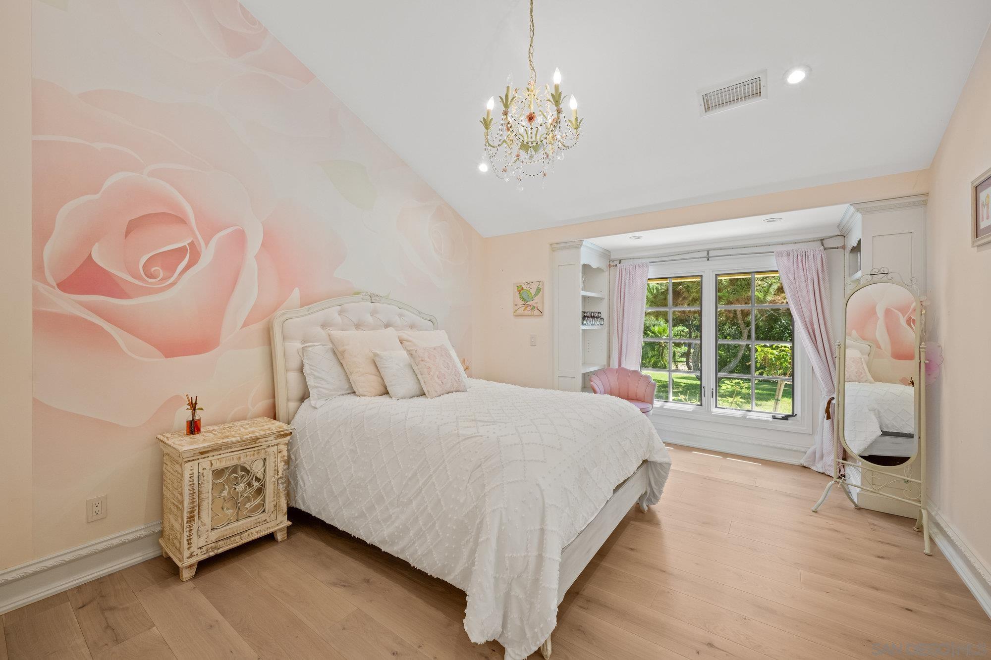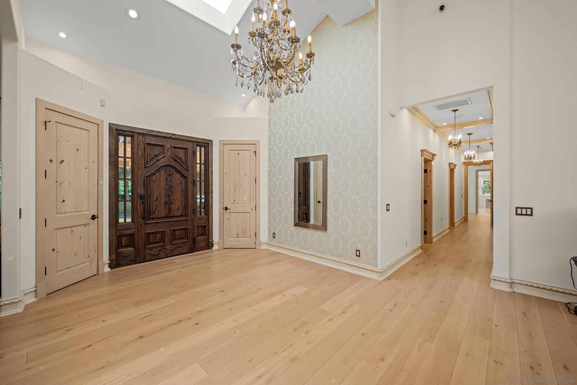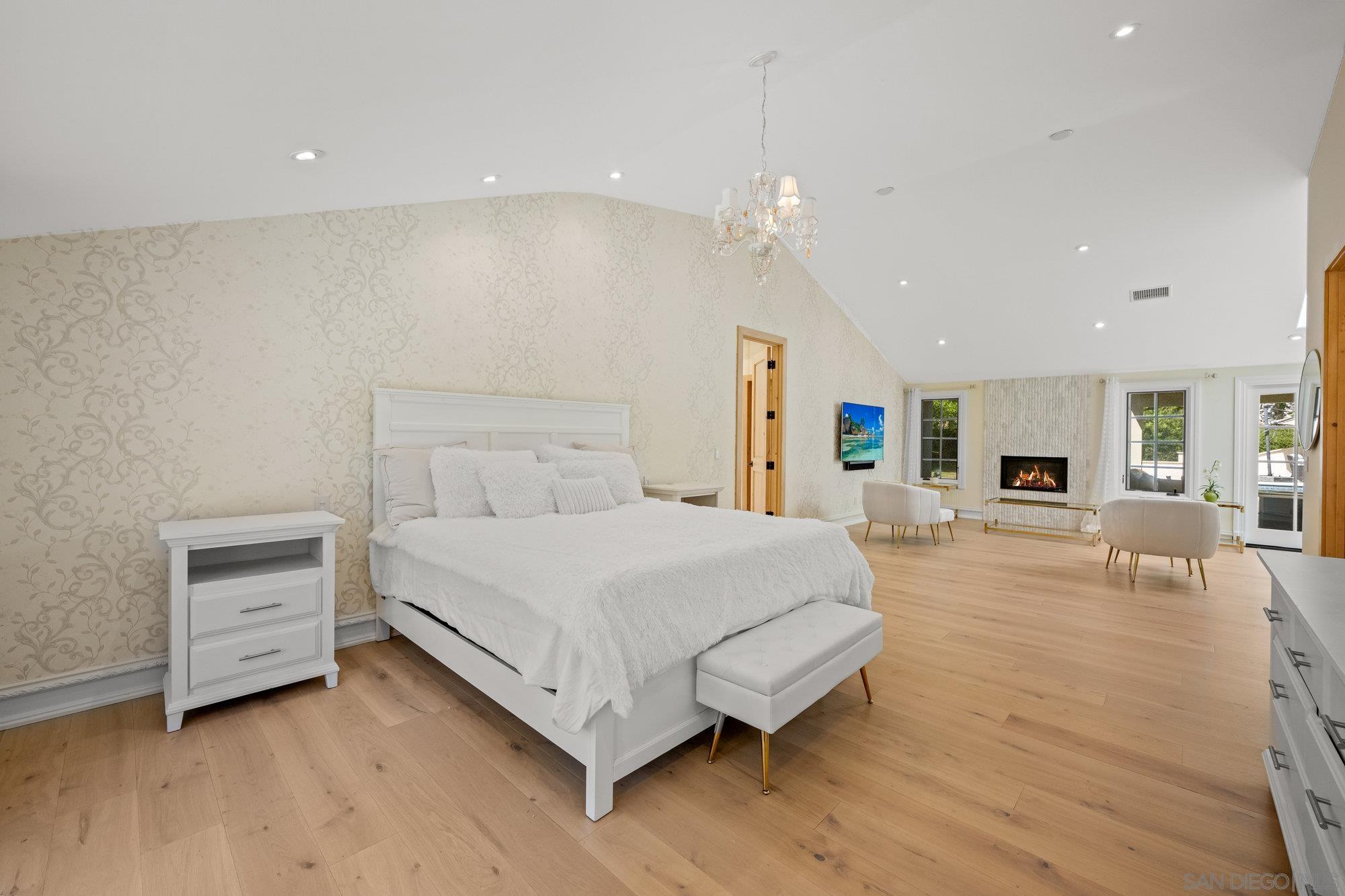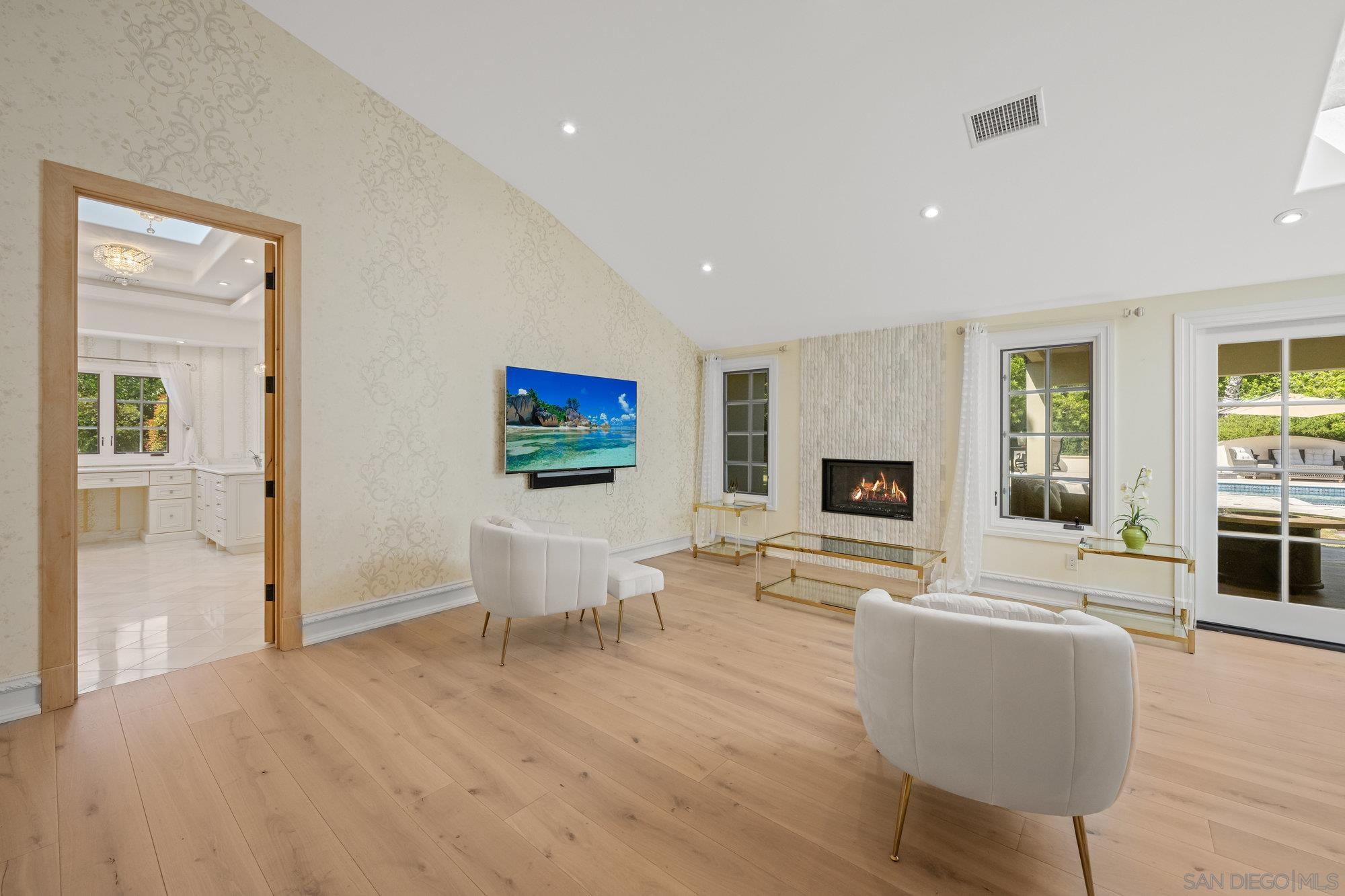 Experience elevated one-level living on 2.75 ultra-private, flat acres in Rancho Santa Fe s exclusive Covenant. Rebuilt in 2017 with meticulous attention to detail, this 4,550 sq ft custom estate blends timeless European design with modern California ease. The open-concept floor plan features 5 en suite bedrooms and 5.5 baths, soaring ceilings, and expansive living spaces filled with natural light. The chef s kitchen is a true centerpiece, showcasing sleek European cabinetry, top-of-the-line Miele appliances including dual cooktops and warming drawer, plus whole-home water filtration. A formal dining space and stone-clad fireplace anchor the seamless transition to the elegant family room, creating an inviting space for both entertaining and everyday living. Curated with designer stonework, custom fireplaces, and smart home features including integrated speakers and security cameras this home offers effortless sophistication. Outside, enjoy lush landscaping, a sparkling pool and spa, covered patio, and ample parking for up to 18 vehicles. A separate dog wash station with private access adds thoughtful convenience. Located on the desirable west side of the Covenant, minutes from Roger Rowe School, RSF Golf & Tennis Clubs, and village amenities. This is Rancho Santa Fe luxury at its finest single-level, serene, and simply exceptional.Interested in this Listing?
