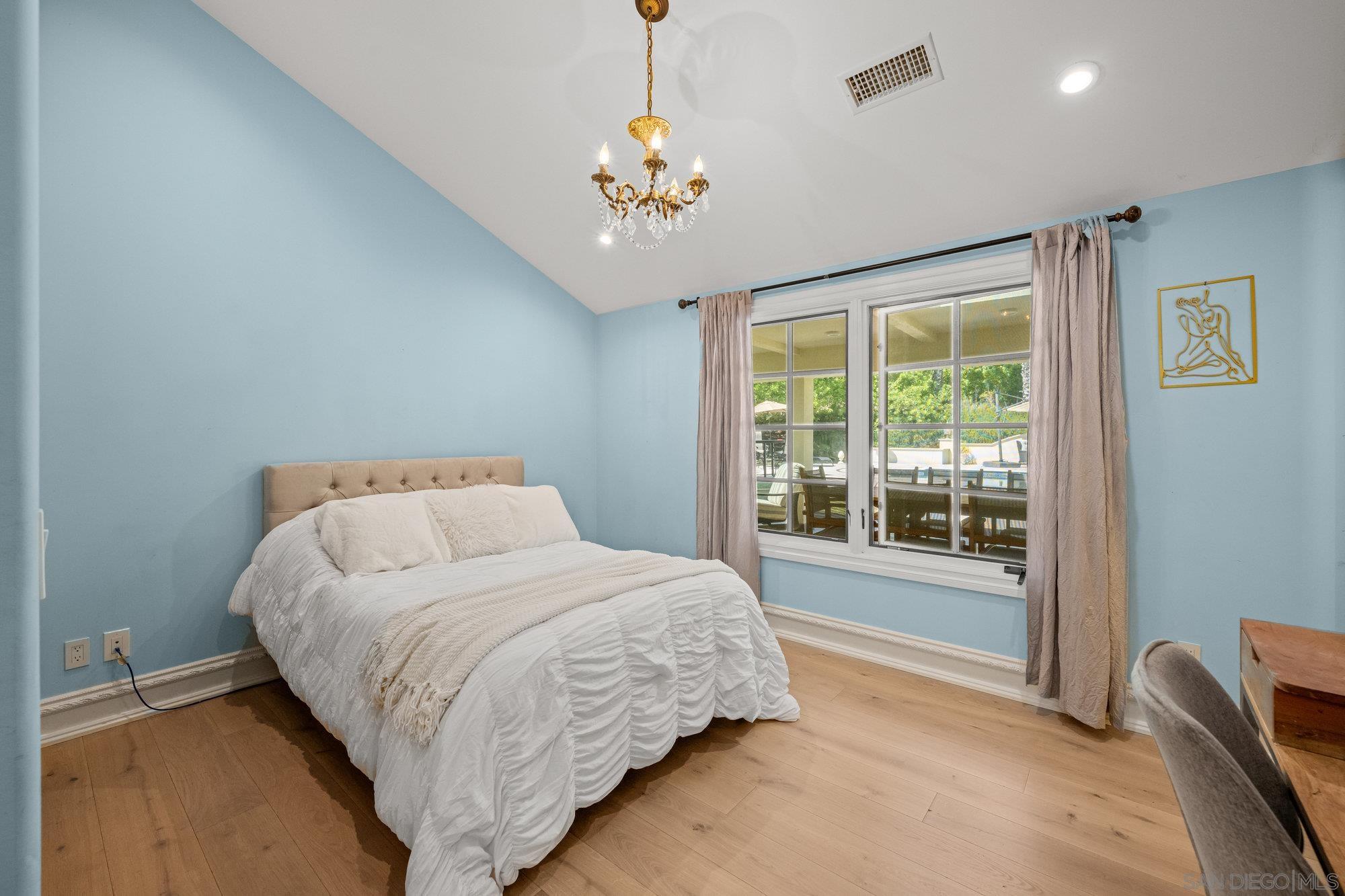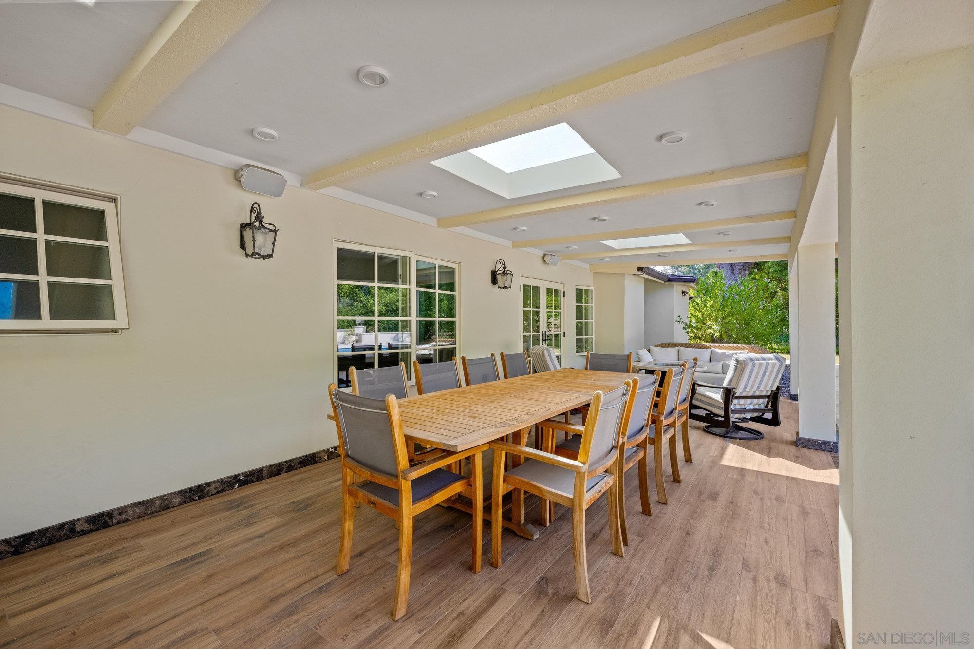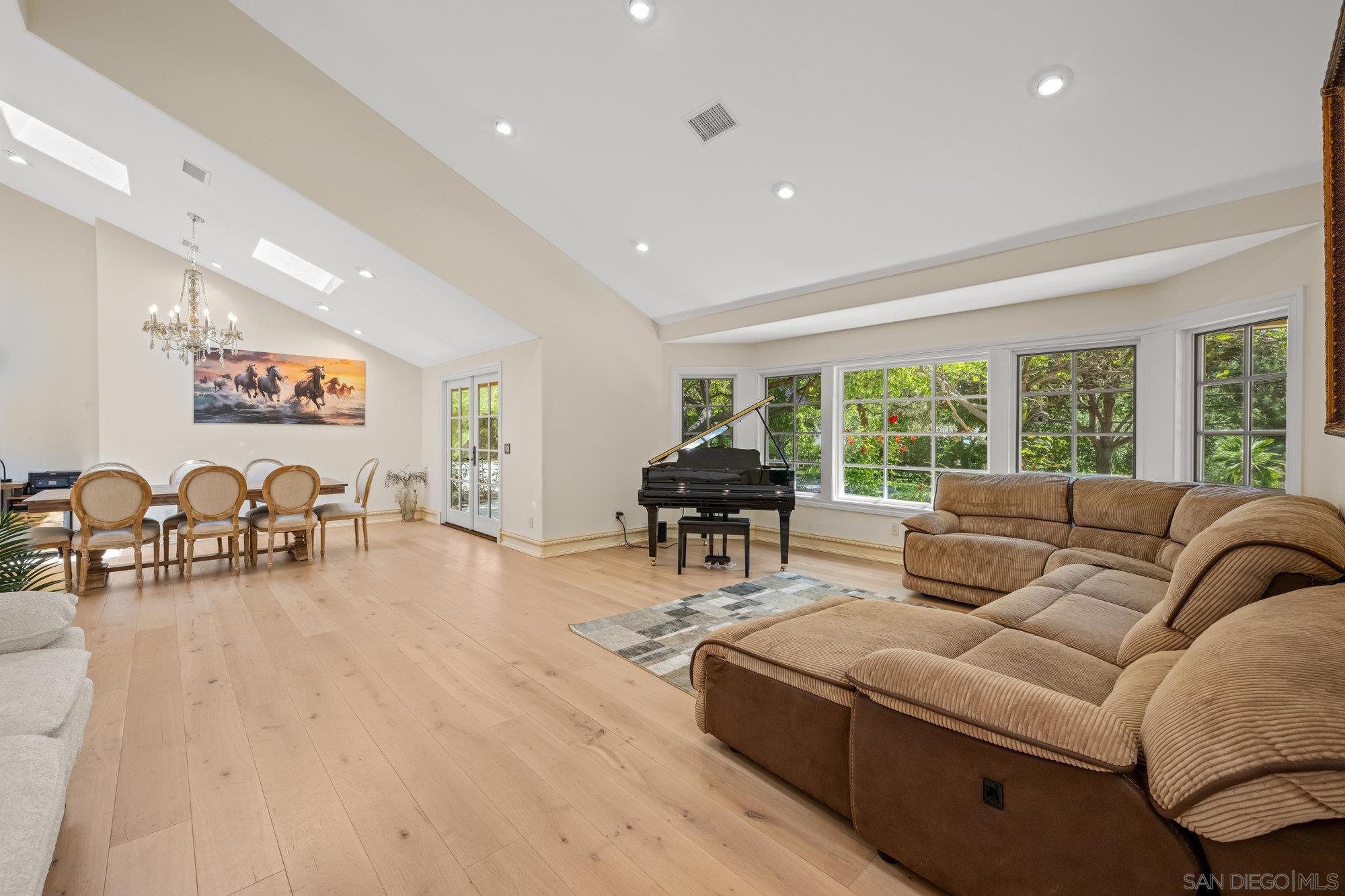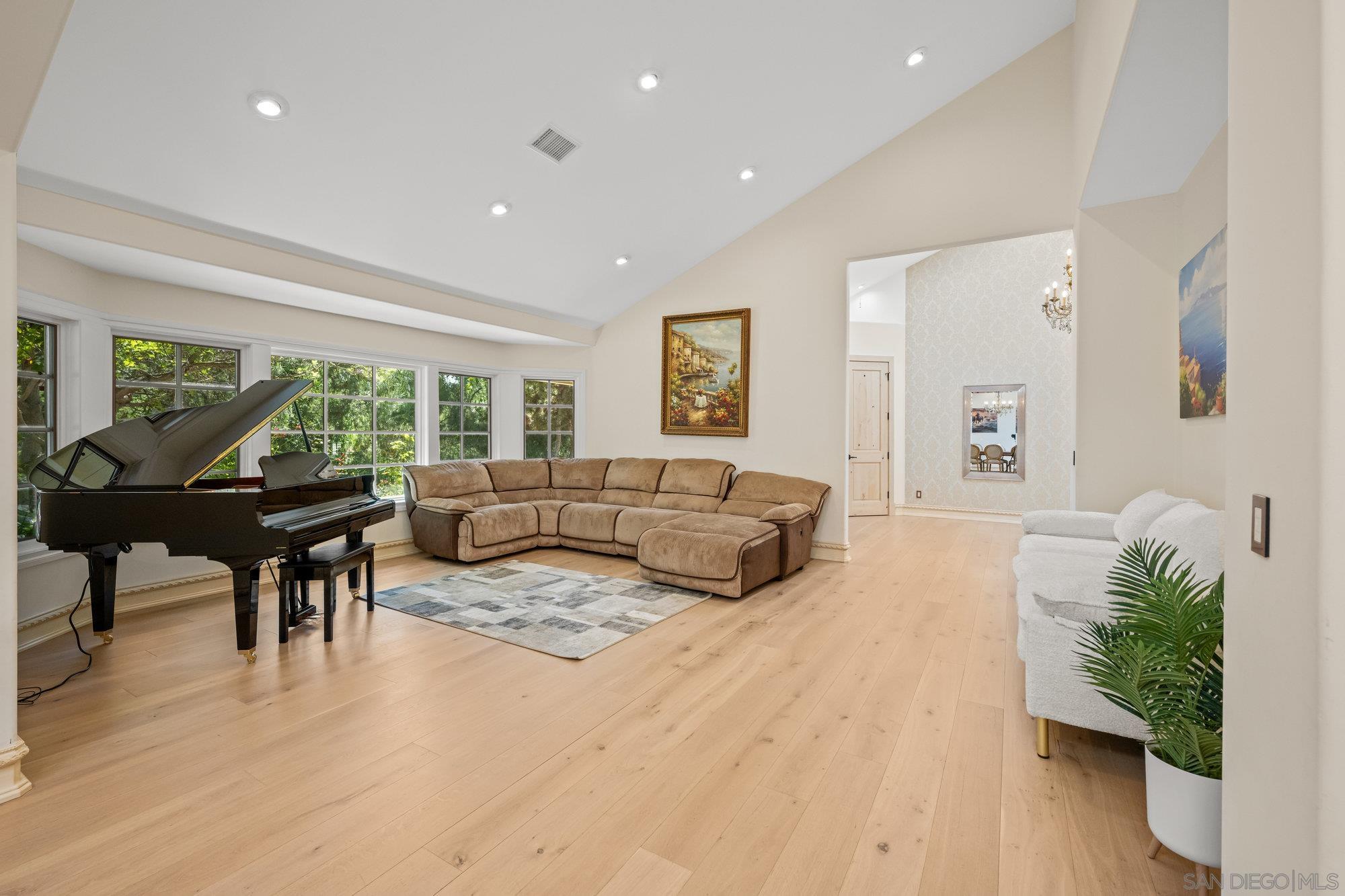 Experience elevated one-level living on 2.75 ultra-private, flat acres in Rancho Santa Fe s exclusive Covenant. Rebuilt in 2017 with meticulous attention to detail, this 4,550 sq ft custom estate blends timeless European design with modern California ease. The open-concept floor plan features 5 en suite bedrooms and 5.5 baths, soaring ceilings, and expansive living spaces filled with natural light. The chef s kitchen is a true centerpiece, showcasing sleek European cabinetry, top-of-the-line Miele appliances including dual cooktops and warming drawer, plus whole-home water filtration. A formal dining space and stone-clad fireplace anchor the seamless transition to the elegant family room, creating an inviting space for both entertaining and everyday living. Curated with designer stonework, custom fireplaces, and smart home features including integrated speakers and security cameras this home offers effortless sophistication. Outside, enjoy lush landscaping, a sparkling pool and spa, covered patio, and ample parking for up to 18 vehicles. A separate dog wash station with private access adds thoughtful convenience. Located on the desirable west side of the Covenant, minutes from Roger Rowe School, RSF Golf & Tennis Clubs, and village amenities. This is Rancho Santa Fe luxury at its finest single-level, serene, and simply exceptional.Interested in this Listing?