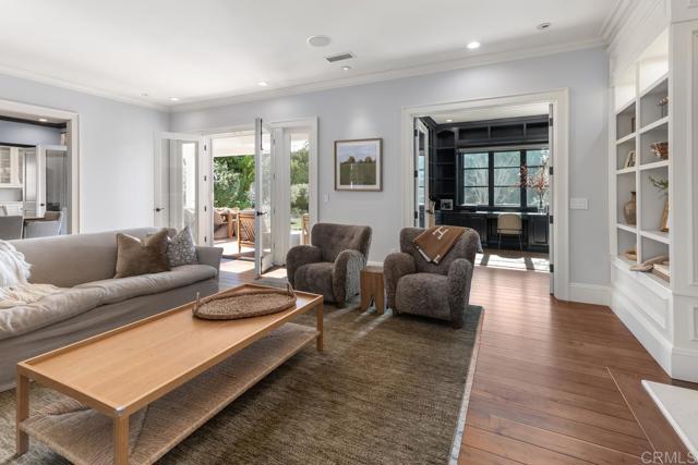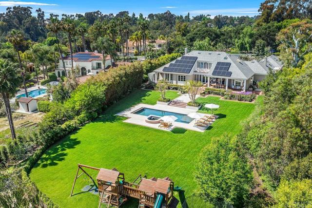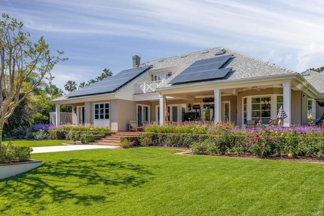 East Coast Traditional with all modern updates on the coveted North Side of Fairbanks Ranch. Completely flat 1.14 acre lot with an expansive lawn, mature hedges, newly resurfaced pool/spa and pool decking, new landscaping in both front and backyard, covered veranda, built-in outdoor grill and an exceptionally large yard to accommodate a full-size playground structure and plenty of space for children and dogs to play. Reimagined and crafted with superior quality this gorgeous home offers ease of living, inviting indoor and outdoor entertainment spaces, and a feel of quiet luxury. Light, bright and airy kitchen with top-of-the-line appliances, soaring vaulted ceilings, custom doors and windows throughout. Gorgeous walnut floors, antique French limestone fireplaces, new light fixtures and 19th century millwork create a sophisticated and refined environment that is sure to delight all. First floor primary suite with dual walk-in closets and an executive office with phenomenal backyard views allows for single-level living. Whole house solar, newer slate tile roof, Sonos surround sound, temperature-controlled wine room, upstairs playroom and small secondary office. Dream location on the most popular cul-de-sac, which is the original street where Fairbanks Ranch lots were initially sold in the 1980's. Located just 1 block to the neighborhood amenities which include a playground/picnic area, 5 tennis courts, 4 pickleball courts, a half basketball court, sand volleyball, equestrian center, walking trails, and an inviting lake with a community clubhouse where neighbors gather for social activities. Residents greatly appreciate the privacy of this armed guard-gated community that includes 24-hour roaming security. Many schools, restaurants, shopping, golf clubs are all within 5 minutes....including 5-star Rancho Valencia Resort and Spa, the Rancho Santa Fe Inn and an exceptional Sunday Farmer's Market.Interested in this Listing?