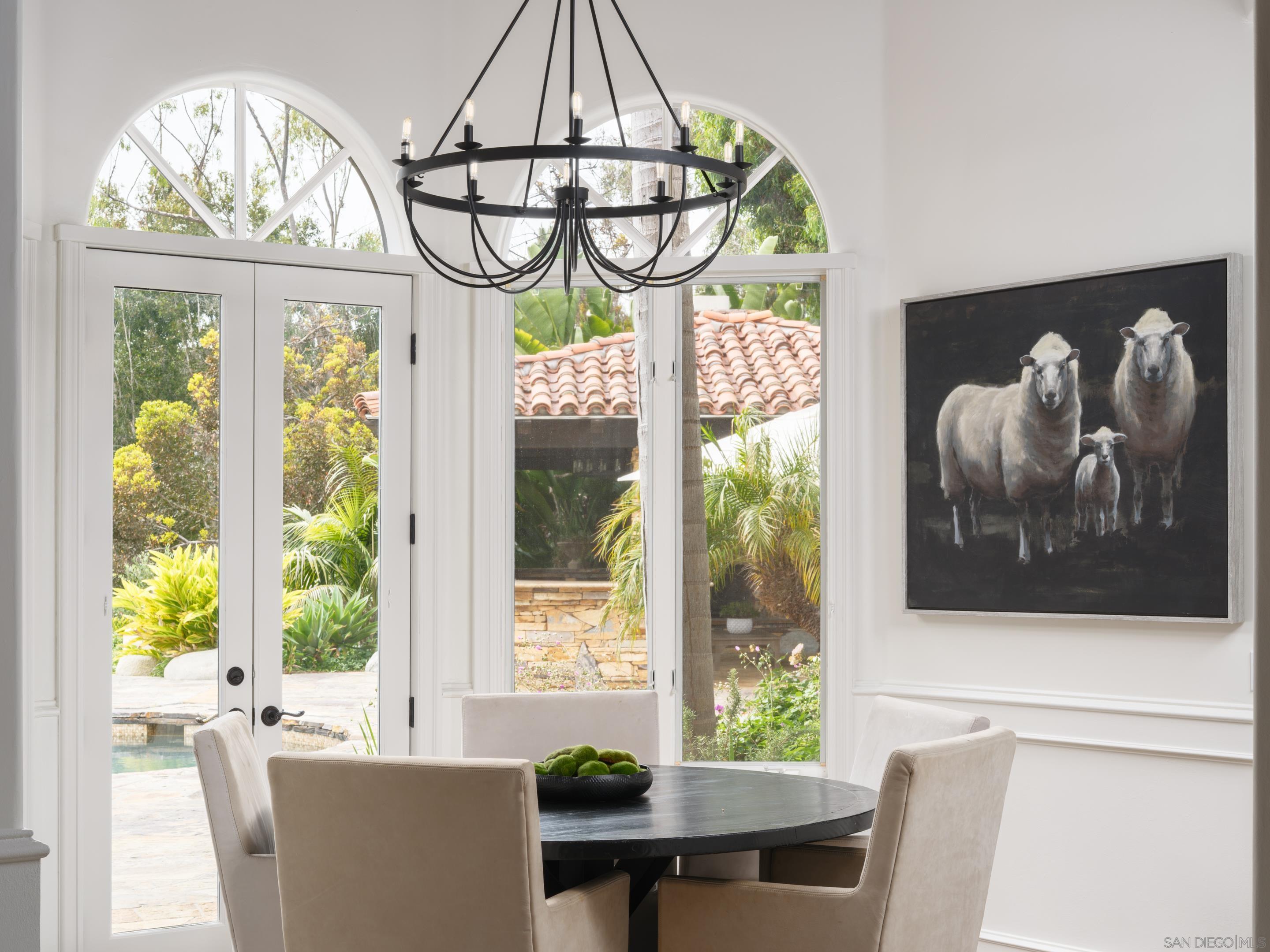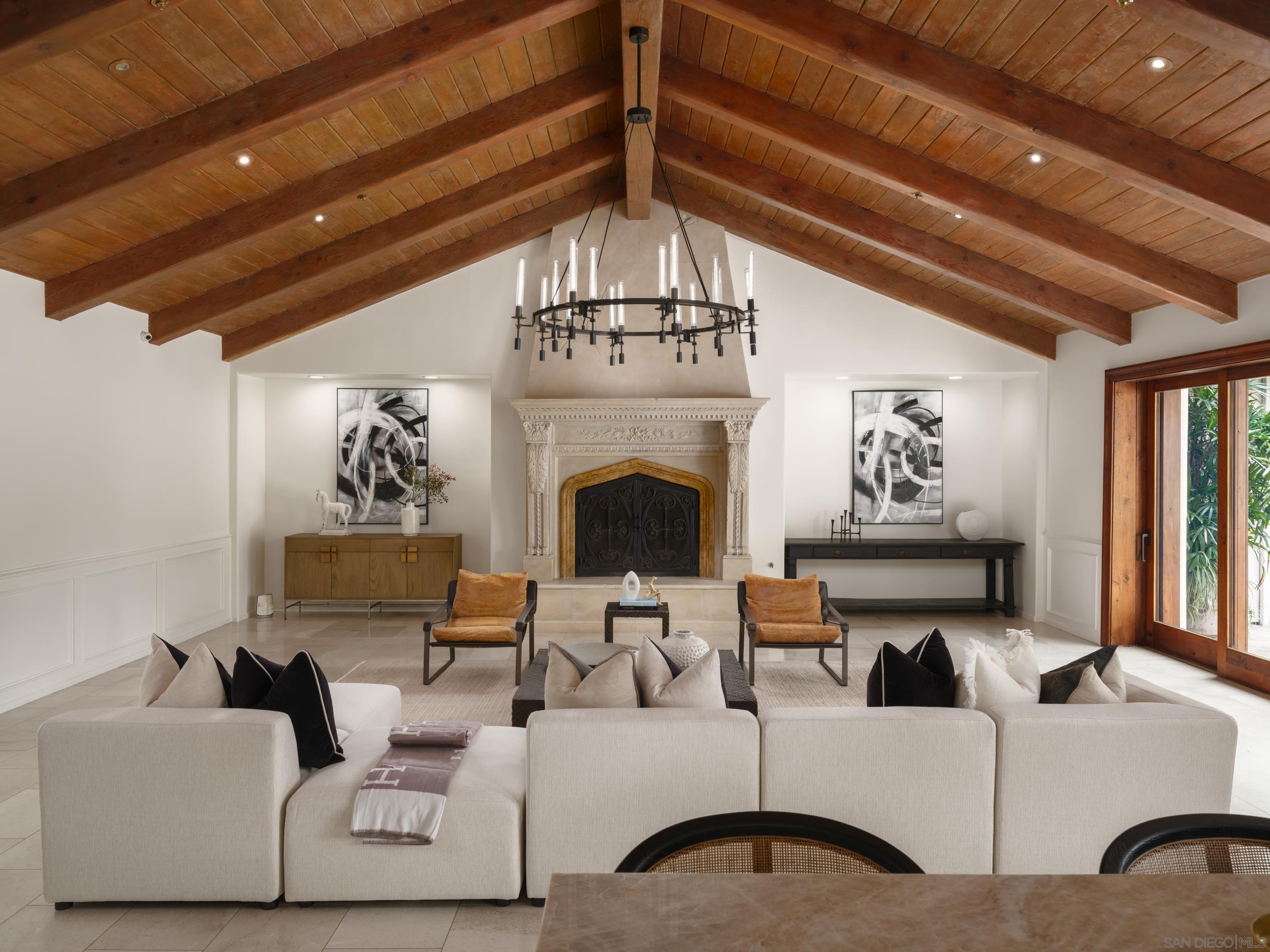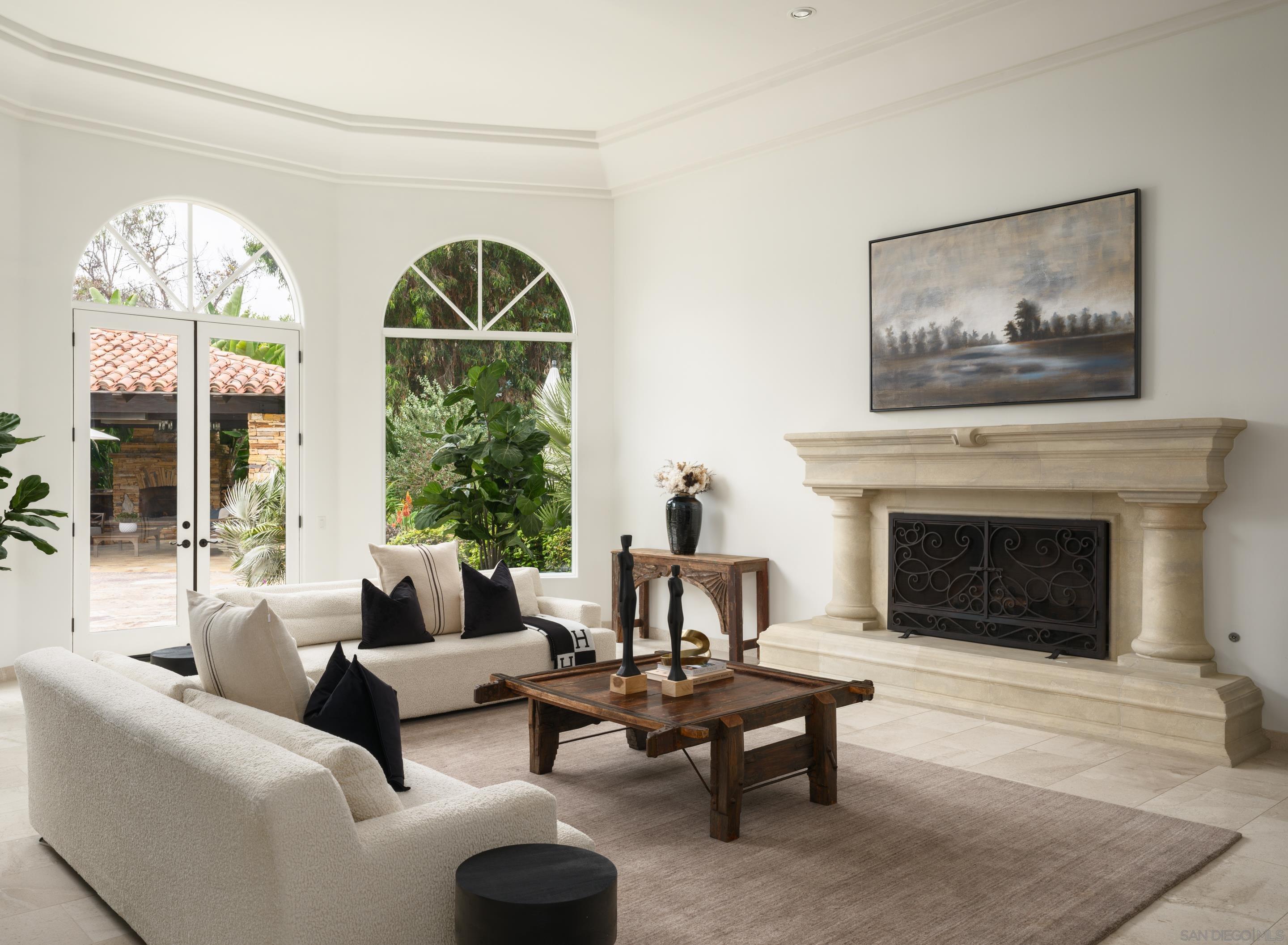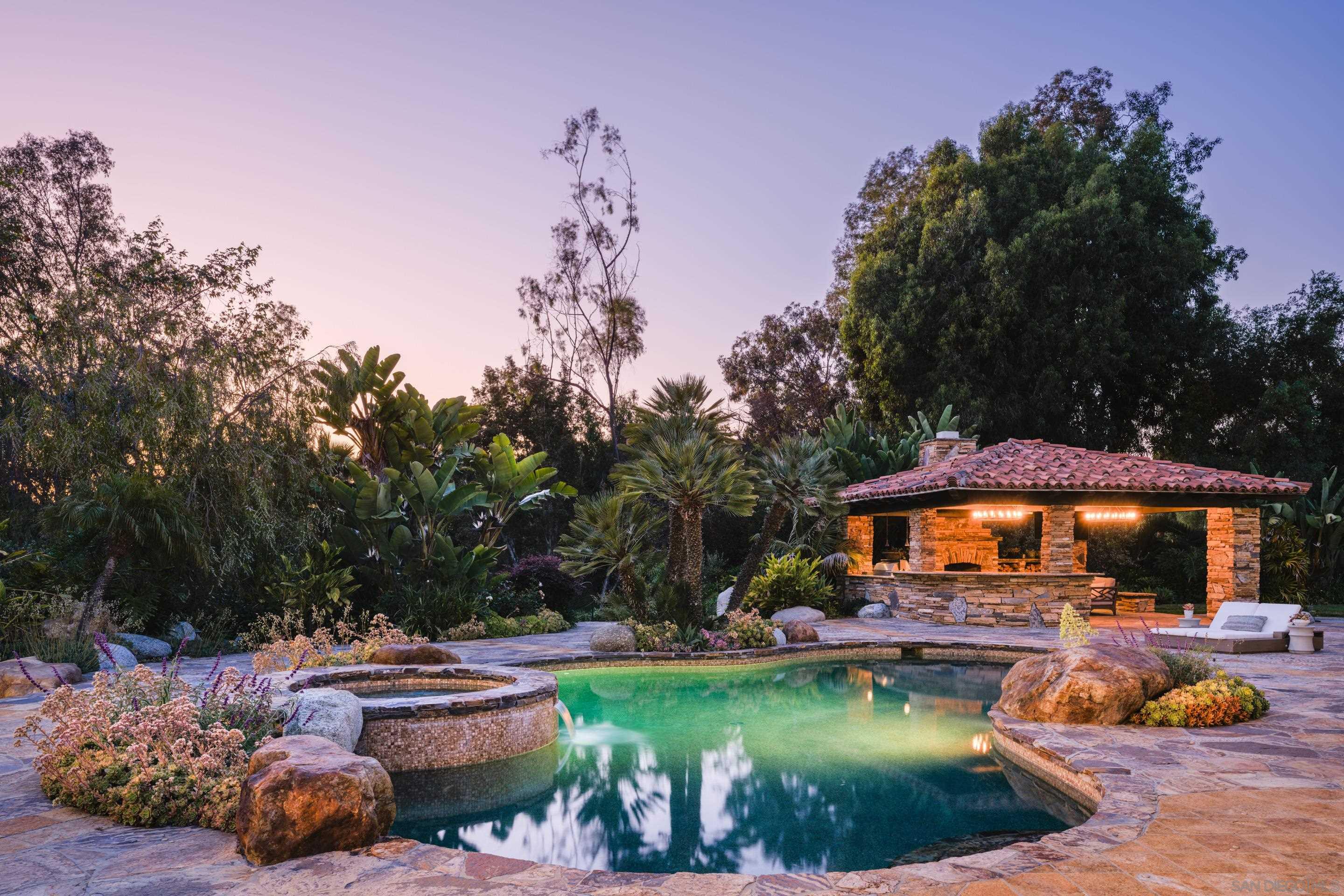 Nestled behind gates on one of the most sought-after streets in the prestigious West Covenant of Rancho Santa Fe, this reimagined single-level Modern Mediterranean estate offers timeless elegance with contemporary updates. Freshly painted inside and out, the home features new herringbone wood flooring, designer lighting, and refined touches throughout. The floor plan is thoughtfully designed, featuring a private primary suite, while a separate wing accommodates flexible secondary bedrooms ideal for family or guests. A dedicated office or library provides a quiet and functional work-from-home environment. Formal living and dining rooms create a refined ambiance, while the heart of the home lies in the open-concept family room that flows seamlessly outdoors and into a gourmet kitchen outfitted with high-end appliances, custom cabinetry, and an inviting eat-in breakfast nook. A fully detached guest house offers incredible functionality, making it ideal for visitors. The resort-style backyard is a private sanctuary, complete with a pool and spa, an outdoor shower, and an expansive covered veranda featuring a fireplace, BBQ, lounge seating area, and al fresco dining. Down below, discover a large grassy area ideal for children, pets, or even the addition of a pickleball court. Lush landscaping, a spacious motor court, and a four-car garage provide ample parking and storage for car collectors and entertainers alike.Interested in this Listing?