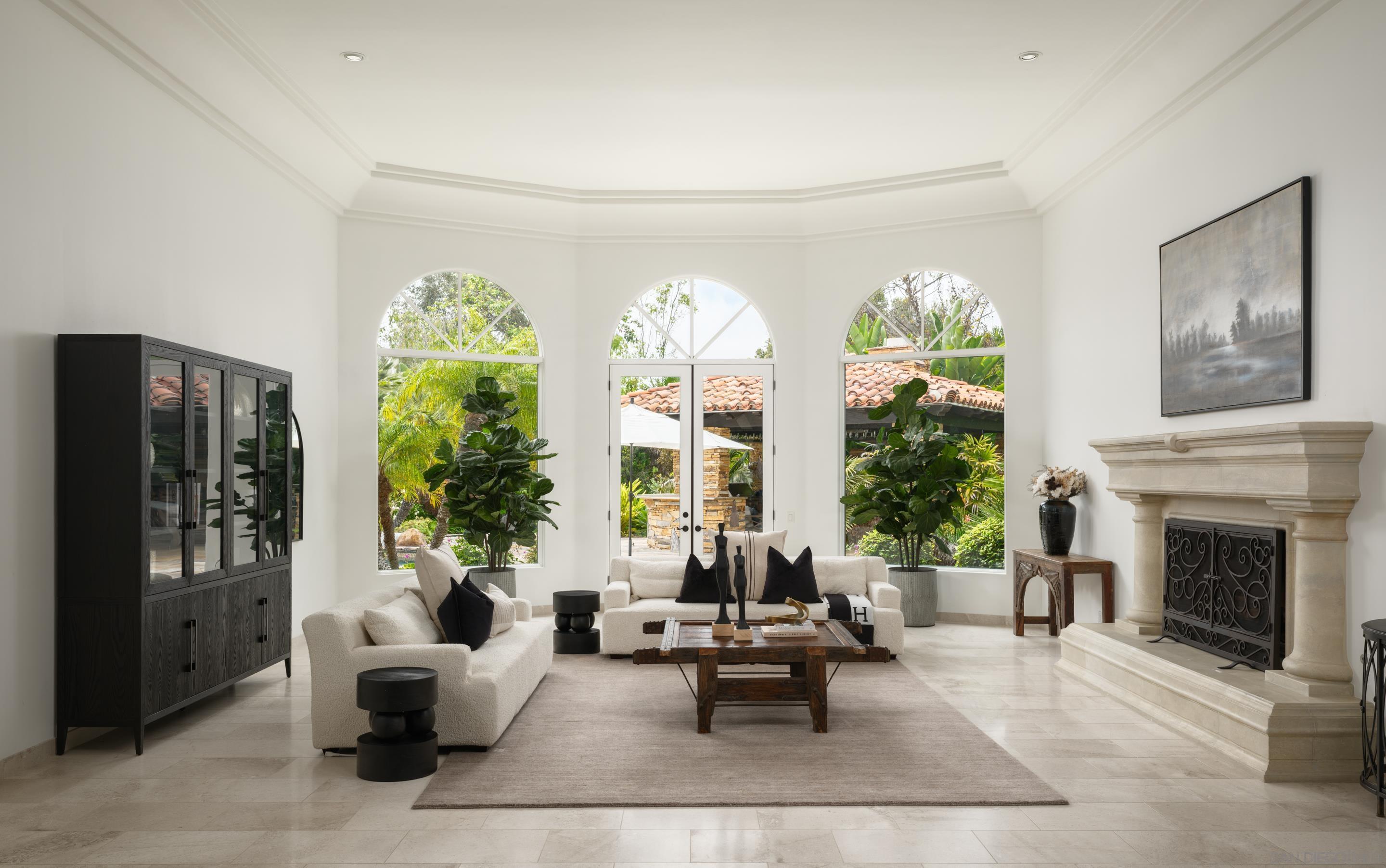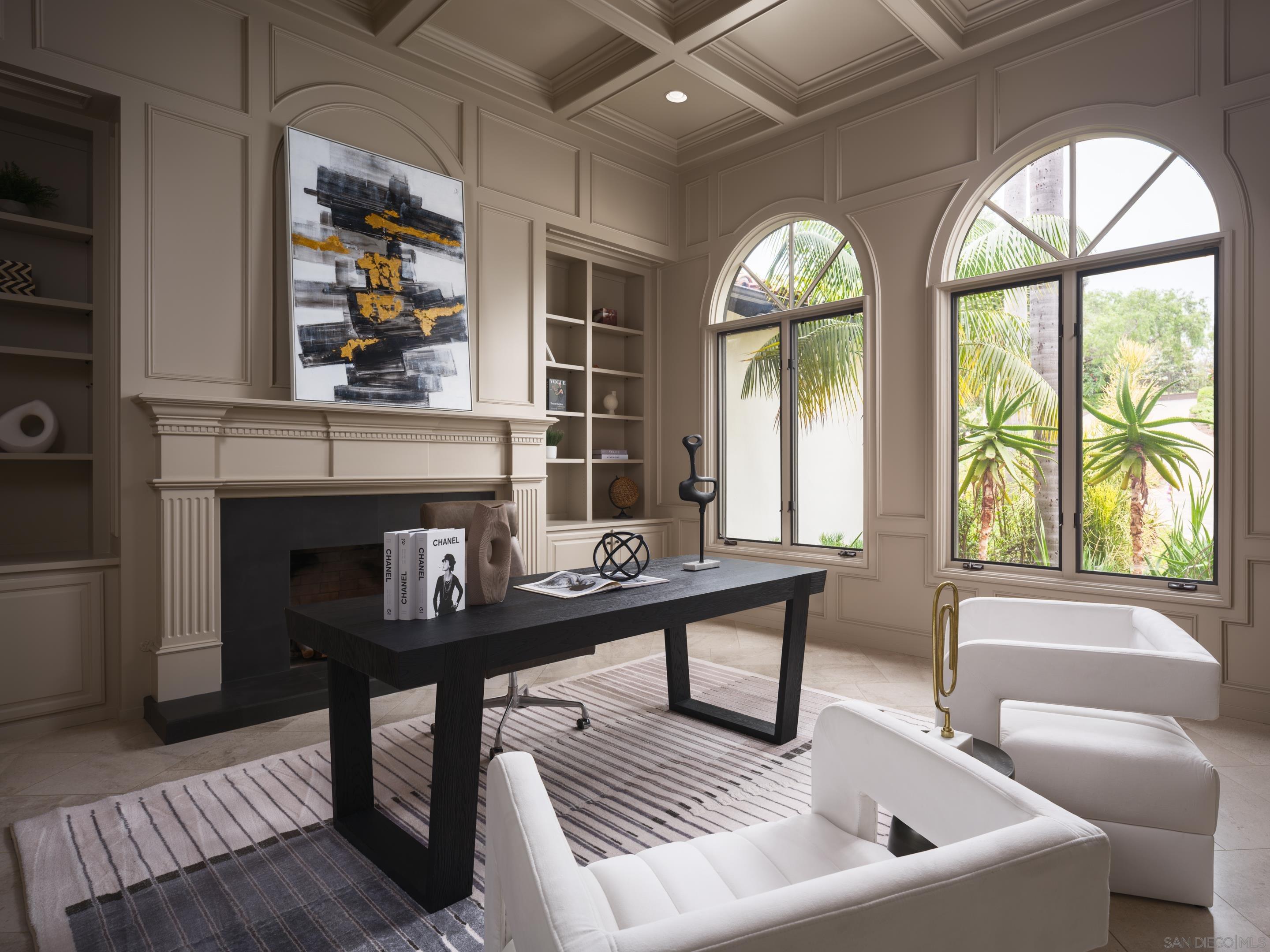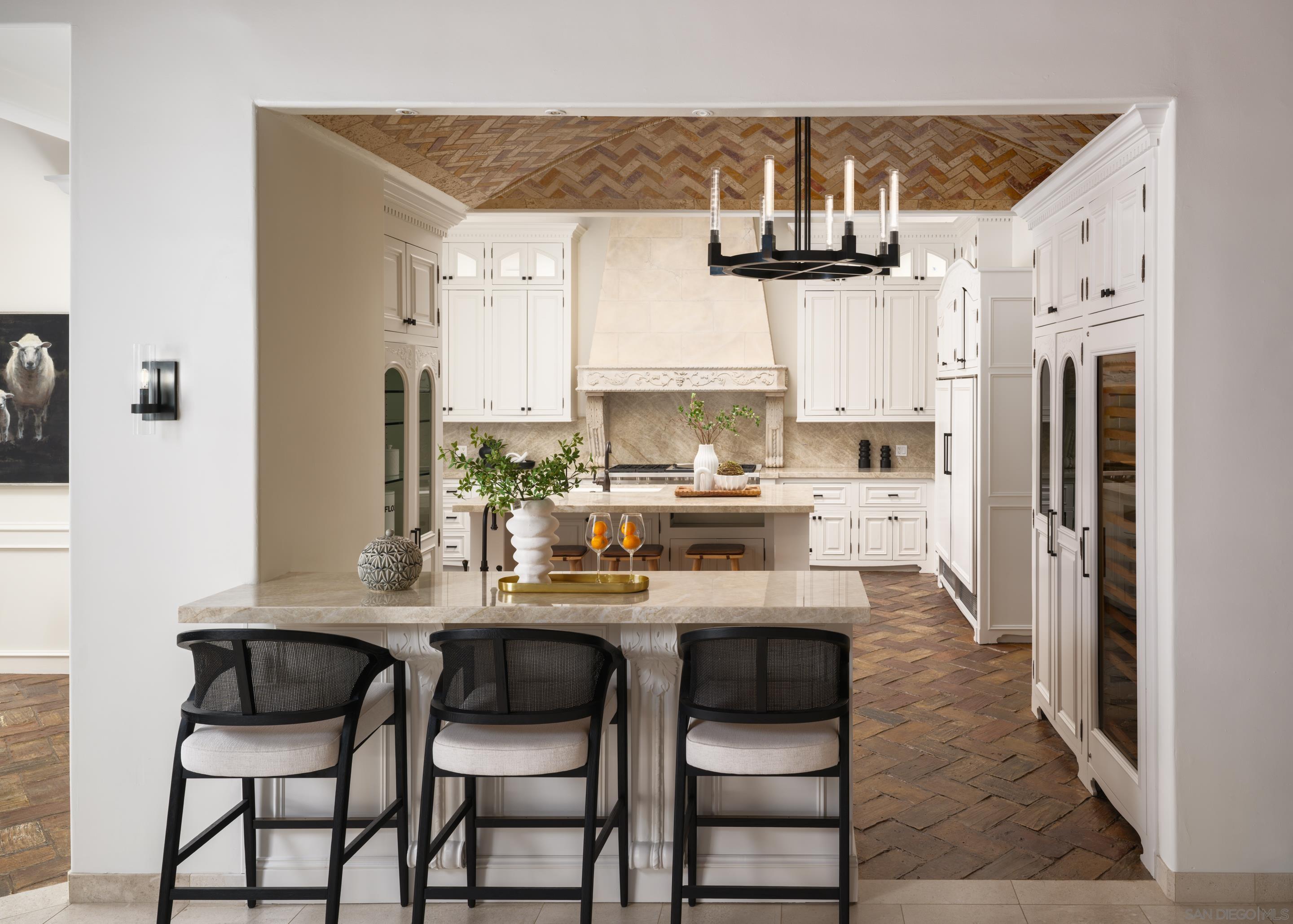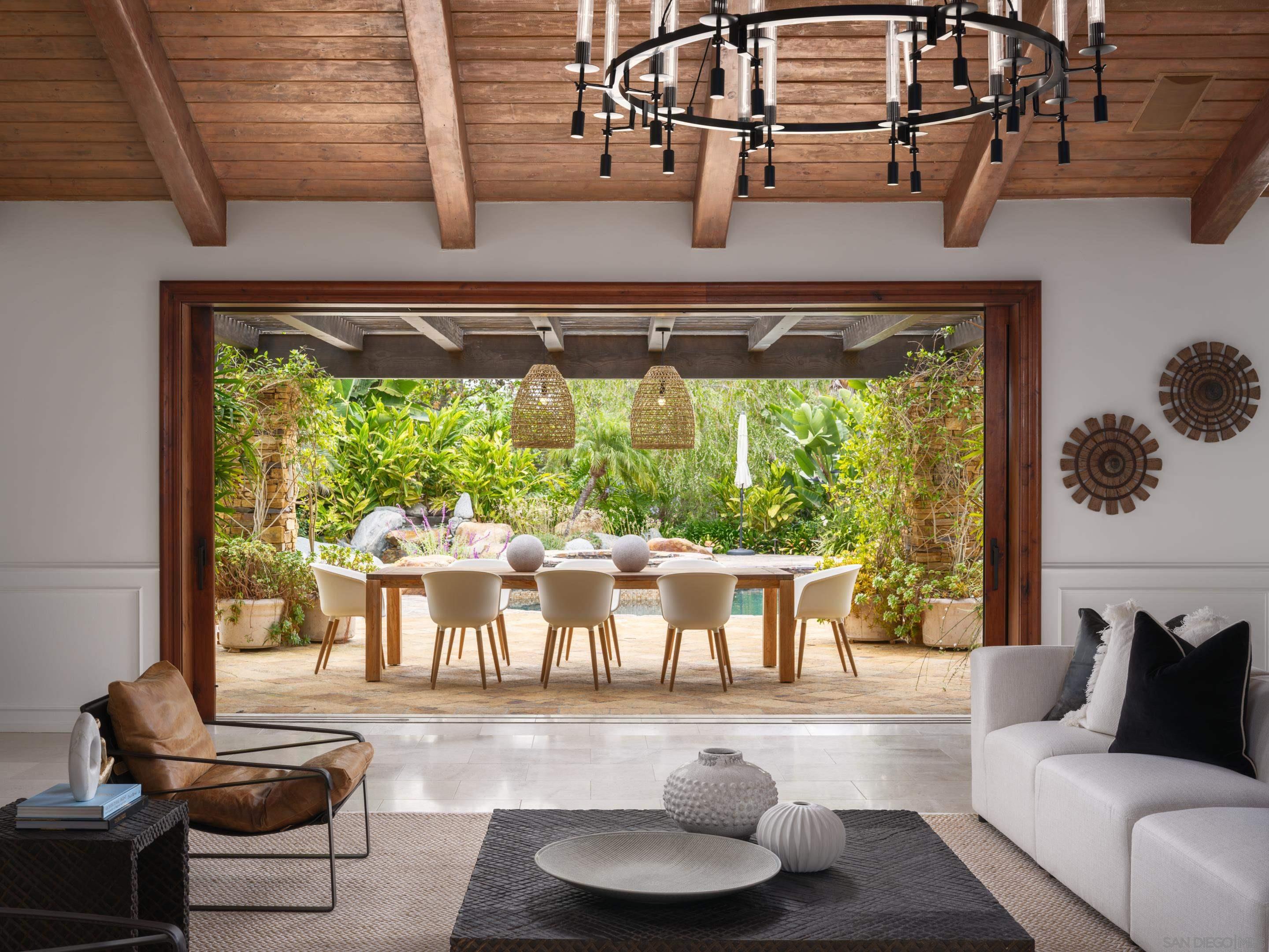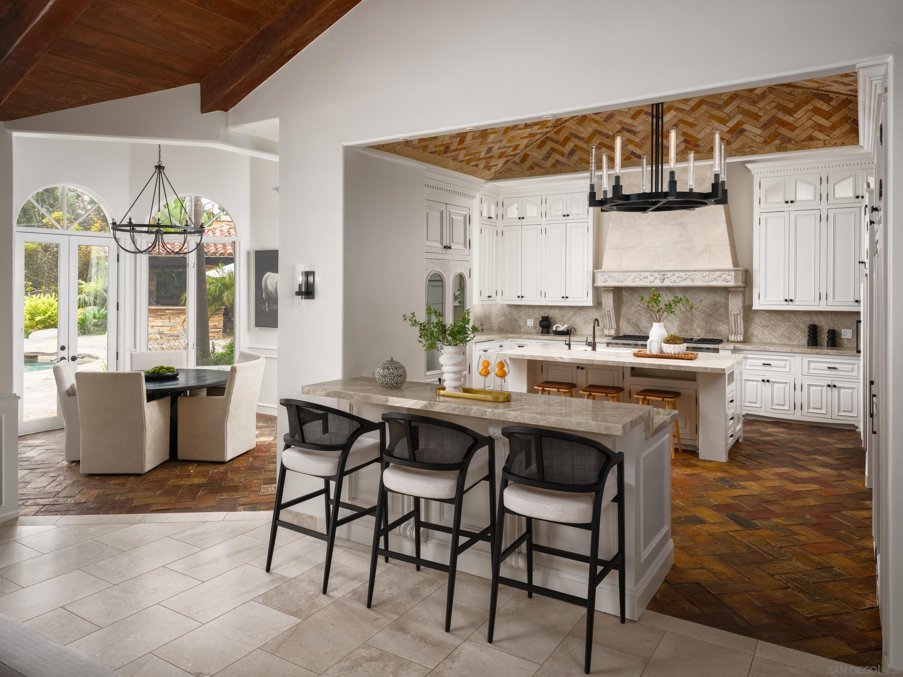 Nestled behind gates on one of the most sought-after streets in the prestigious West Covenant of Rancho Santa Fe, this reimagined single-level Modern Mediterranean estate offers timeless elegance with contemporary updates. Freshly painted inside and out, the home features new herringbone wood flooring, designer lighting, and refined touches throughout. The floor plan is thoughtfully designed, featuring a private primary suite, while a separate wing accommodates flexible secondary bedrooms ideal for family or guests. A dedicated office or library provides a quiet and functional work-from-home environment. Formal living and dining rooms create a refined ambiance, while the heart of the home lies in the open-concept family room that flows seamlessly outdoors and into a gourmet kitchen outfitted with high-end appliances, custom cabinetry, and an inviting eat-in breakfast nook. A fully detached guest house offers incredible functionality, making it ideal for visitors. The resort-style backyard is a private sanctuary, complete with a pool and spa, an outdoor shower, and an expansive covered veranda featuring a fireplace, BBQ, lounge seating area, and al fresco dining. Down below, discover a large grassy area ideal for children, pets, or even the addition of a pickleball court. Lush landscaping, a spacious motor court, and a four-car garage provide ample parking and storage for car collectors and entertainers alike.Interested in this Listing?