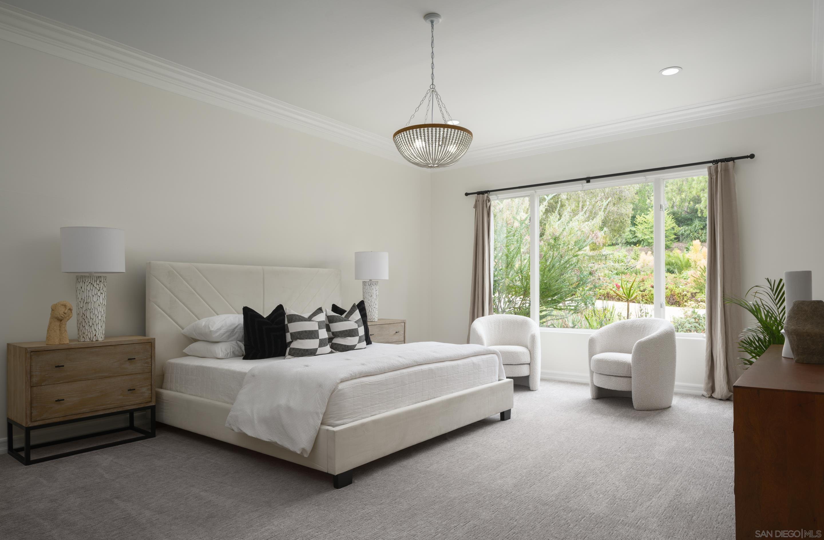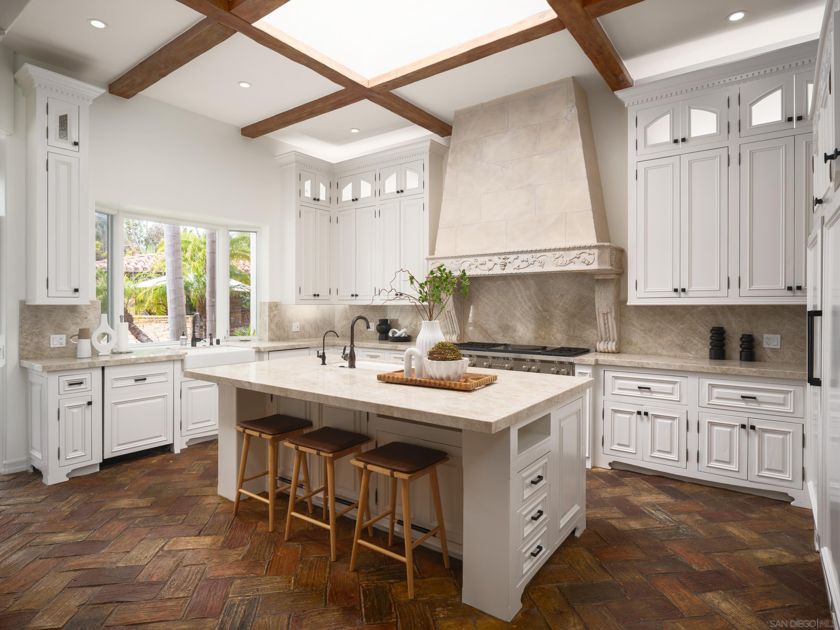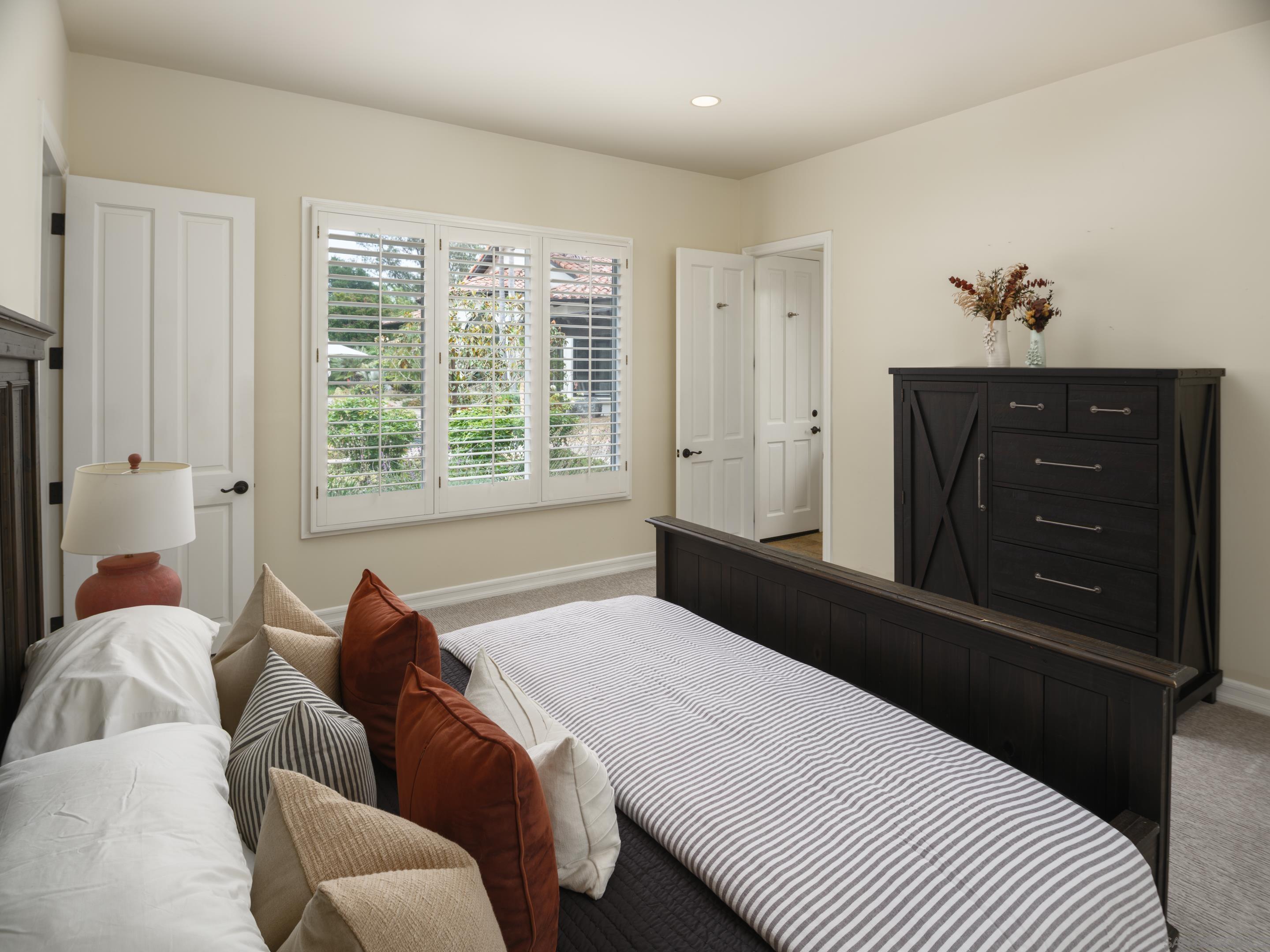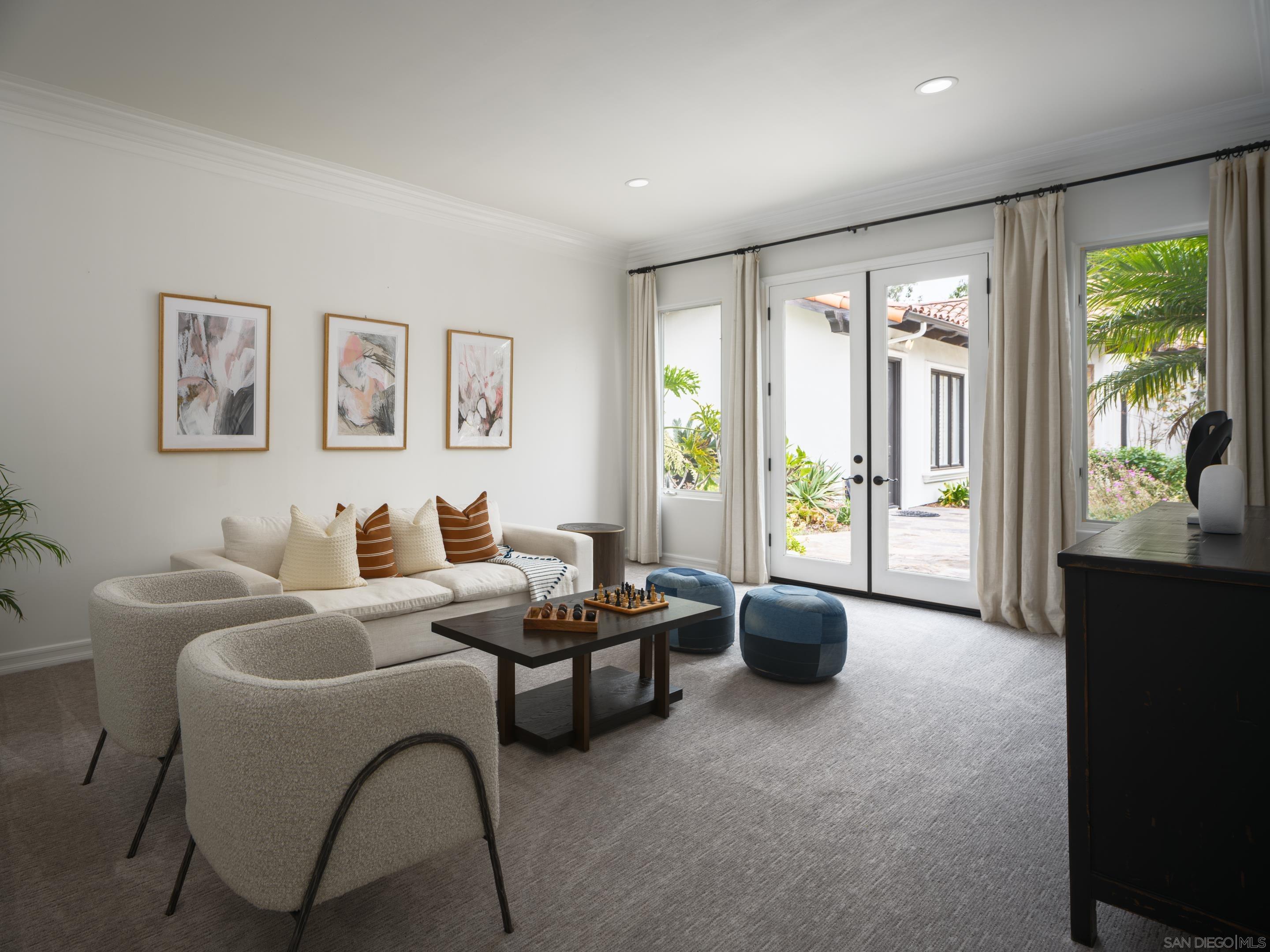 Nestled behind gates on one of the most sought-after streets in the prestigious West Covenant of Rancho Santa Fe, this reimagined single-level Modern Mediterranean estate offers timeless elegance with contemporary updates. Freshly painted inside and out, the home features new herringbone wood flooring, designer lighting, and refined touches throughout. The floor plan is thoughtfully designed, featuring a private primary suite, while a separate wing accommodates flexible secondary bedrooms ideal for family or guests. A dedicated office or library provides a quiet and functional work-from-home environment. Formal living and dining rooms create a refined ambiance, while the heart of the home lies in the open-concept family room that flows seamlessly outdoors and into a gourmet kitchen outfitted with high-end appliances, custom cabinetry, and an inviting eat-in breakfast nook. A fully detached guest house offers incredible functionality, making it ideal for visitors. The resort-style backyard is a private sanctuary, complete with a pool and spa, an outdoor shower, and an expansive covered veranda featuring a fireplace, BBQ, lounge seating area, and al fresco dining. Down below, discover a large grassy area ideal for children, pets, or even the addition of a pickleball court. Lush landscaping, a spacious motor court, and a four-car garage provide ample parking and storage for car collectors and entertainers alike.Interested in this Listing?