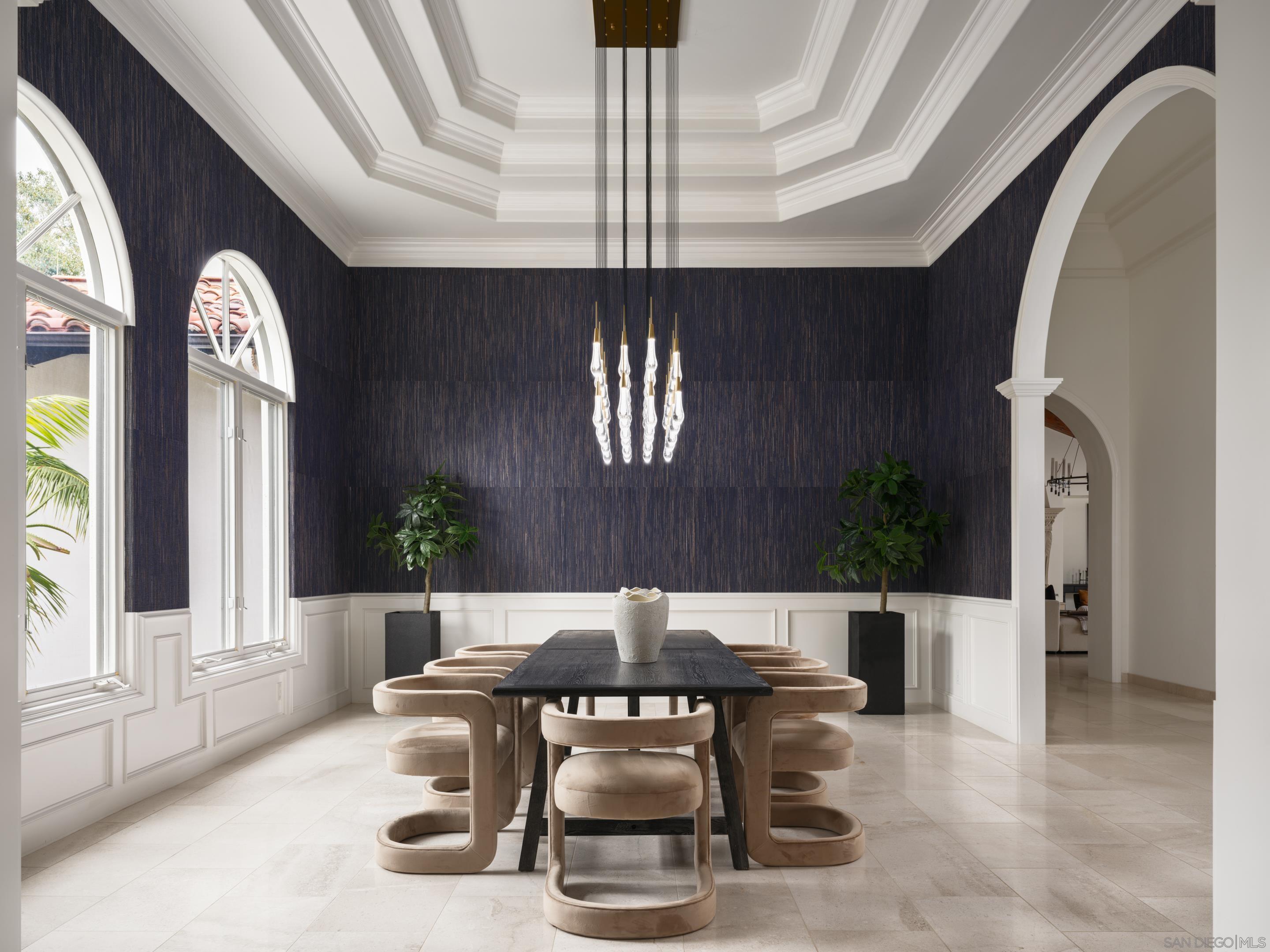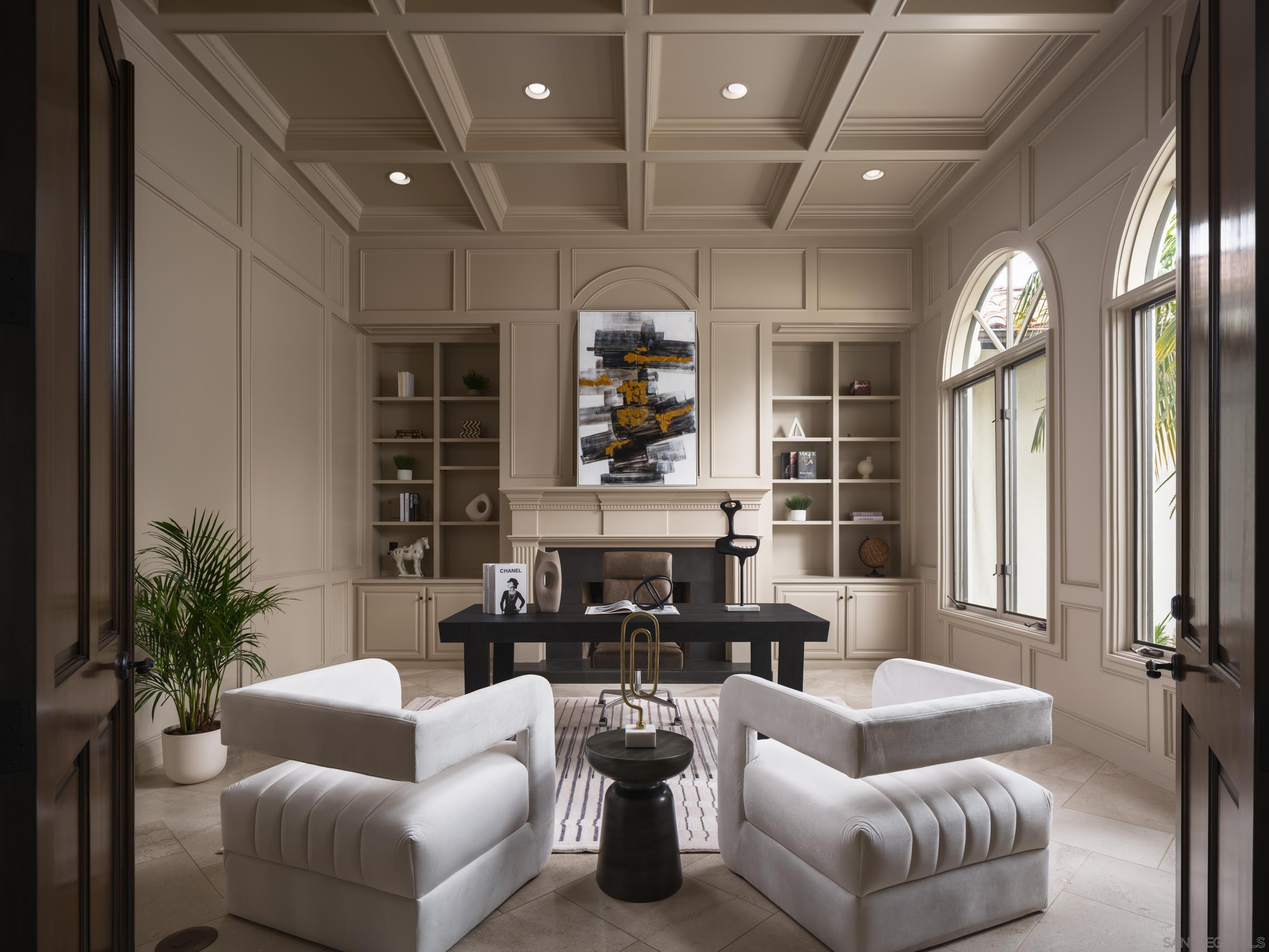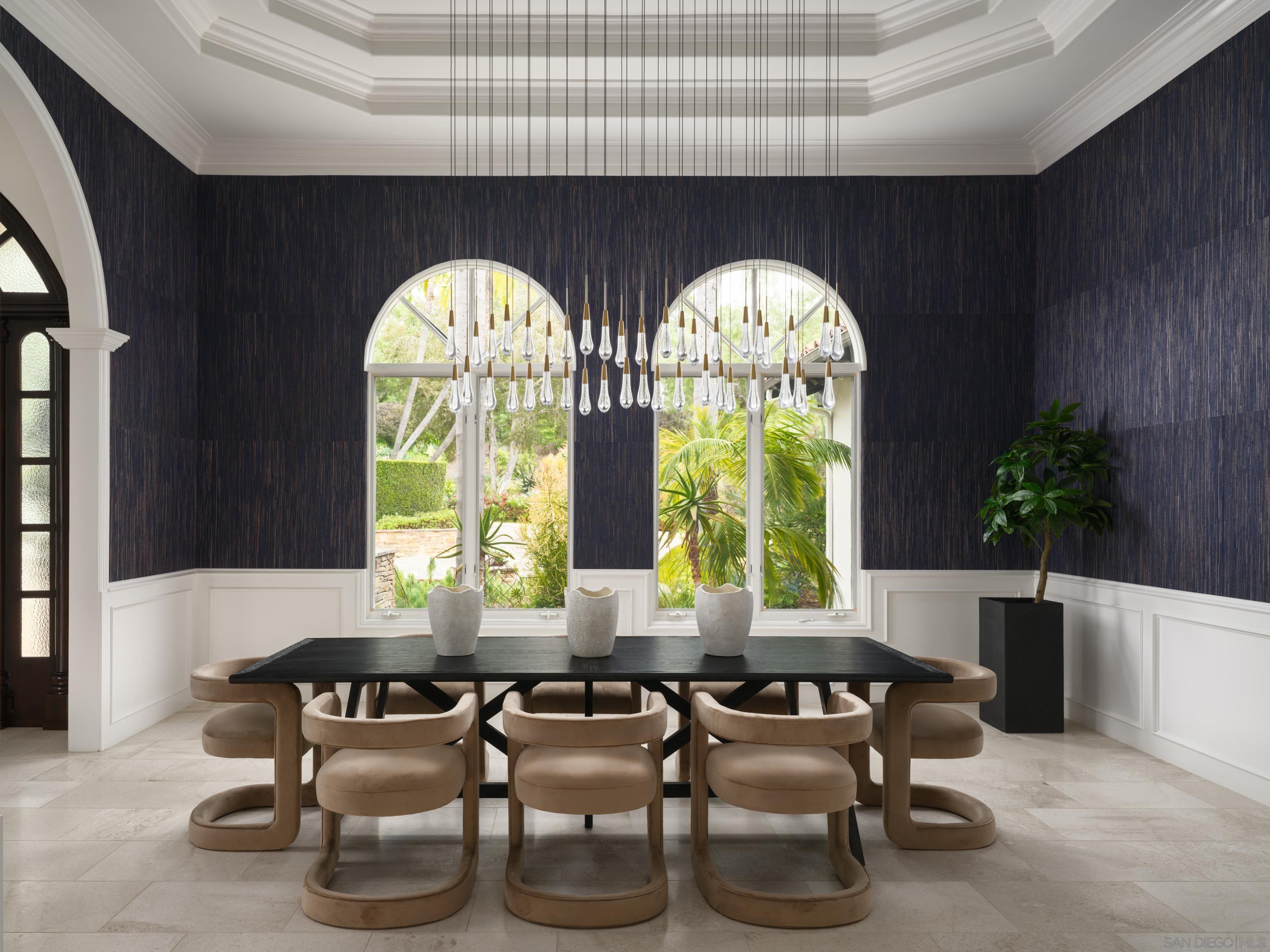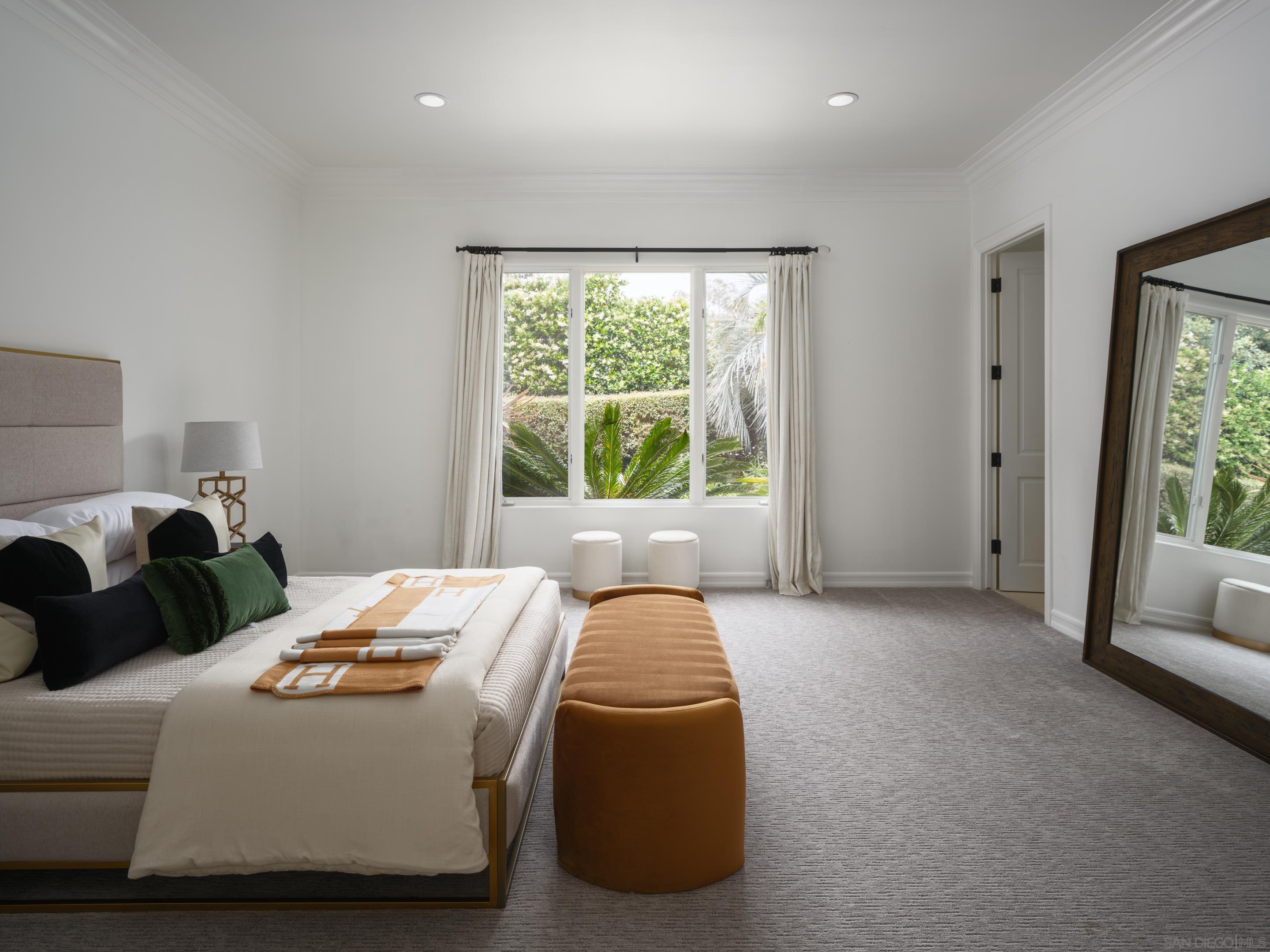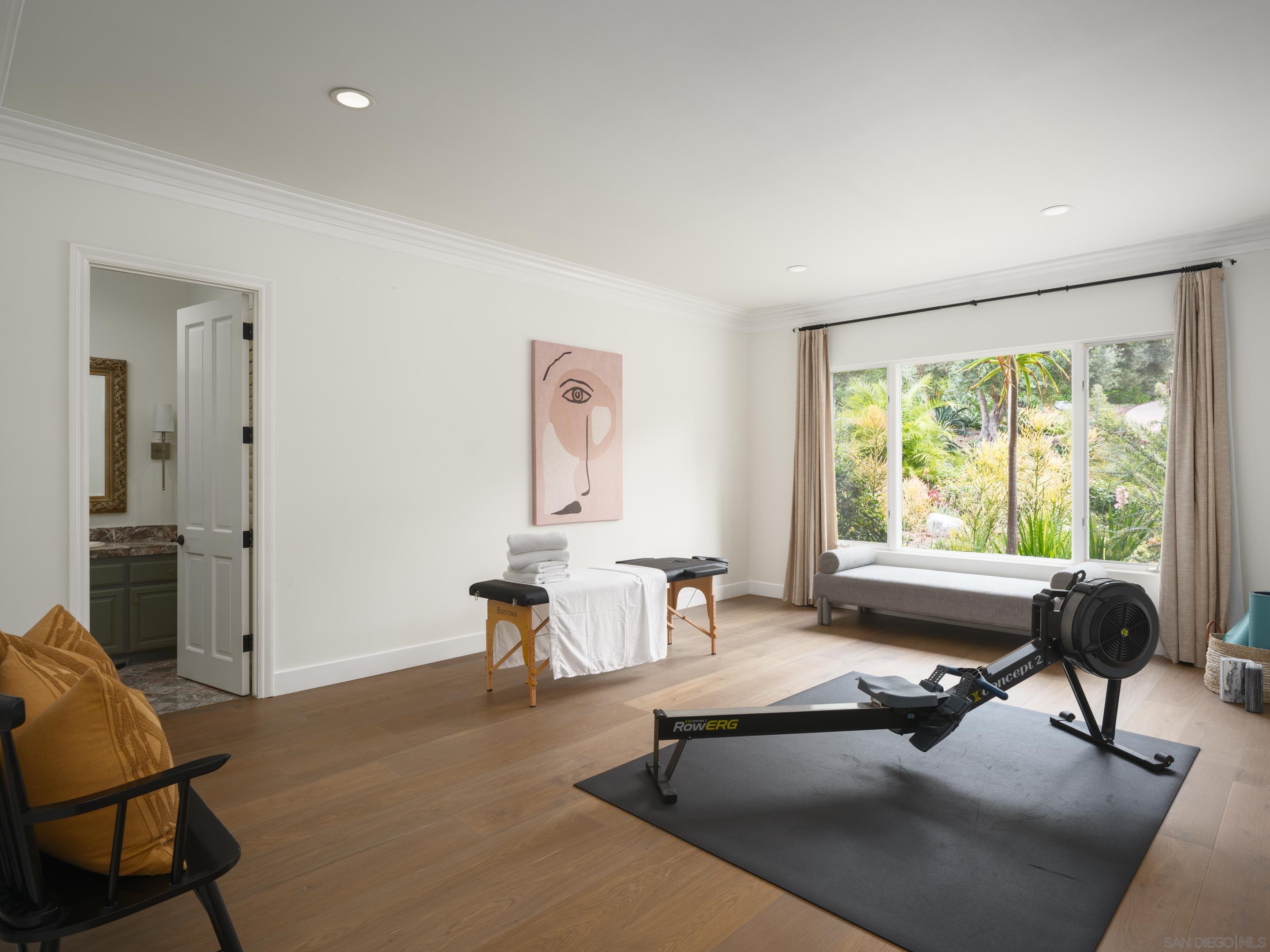Nestled behind gates on one of the most sought-after streets in the prestigious West Covenant of Rancho Santa Fe, this reimagined single-level Modern Mediterranean estate offers timeless elegance with contemporary updates. Freshly painted inside and out, the home features new herringbone wood flooring, designer lighting, and refined touches throughout. The floor plan is thoughtfully designed, featuring a private primary suite, while a separate wing accommodates flexible secondary bedrooms ideal for family or guests. A dedicated office or library provides a quiet and functional work-from-home environment. Formal living and dining rooms create a refined ambiance, while the heart of the home lies in the open-concept family room that flows seamlessly outdoors and into a gourmet kitchen outfitted with high-end appliances, custom cabinetry, and an inviting eat-in breakfast nook. A fully detached guest house offers incredible functionality, making it ideal for visitors. The resort-style backyard is a private sanctuary, complete with a pool and spa, an outdoor shower, and an expansive covered veranda featuring a fireplace, BBQ, lounge seating area, and al fresco dining. Down below, discover a large grassy area ideal for children, pets, or even the addition of a pickleball court. Lush landscaping, a spacious motor court, and a four-car garage provide ample parking and storage for car collectors and entertainers alike.Interested in this Listing?