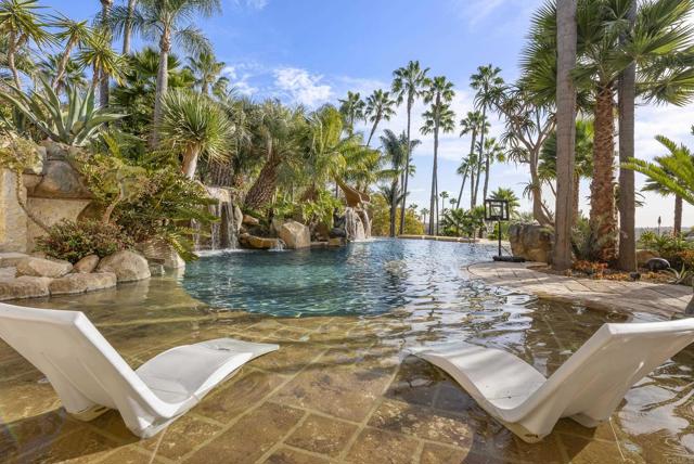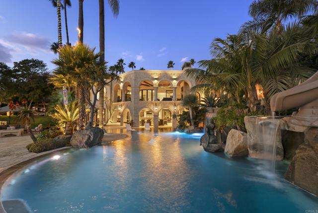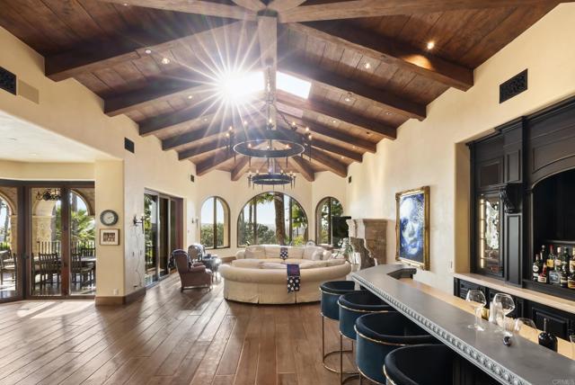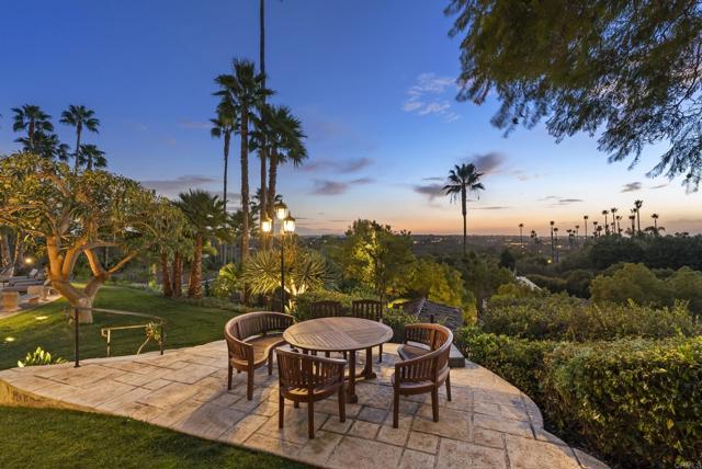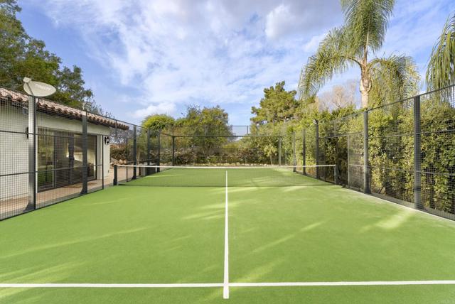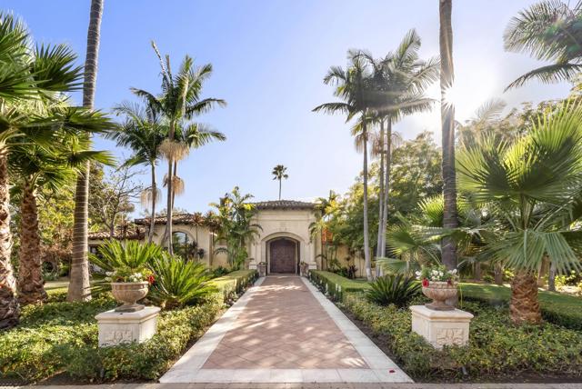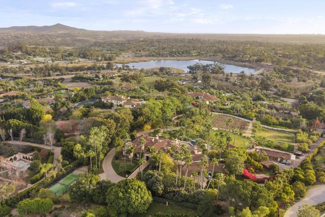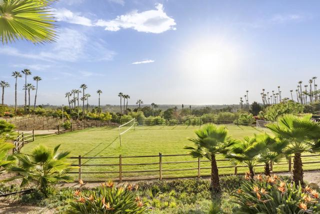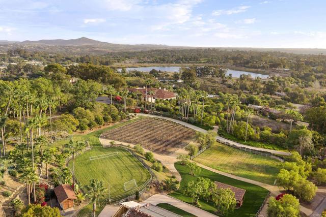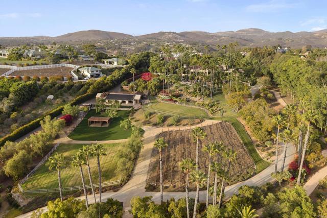 Nestled behind a grand, gated entrance, this private 6-acre Covenant estate in Rancho Santa Fe is a hidden treasure at the end of a secluded drive. Surrounded by meticulously manicured landscaping, soaring palms, flourishing vineyards, and a fragrant orange grove, the property emanates serene luxury. Perched atop one of the highest elevations in Rancho Santa Fe, the six-bedroom estate boasts commanding southwest views of the region, stretching to Black Mountain, UTC, and Mount Soledad in La Jolla. The main residence is an architectural masterpiece, offering four spacious bedrooms, a voluminous office, a walk-in wine cellar, a spa-like primary suite with two boutique showroom closets, and a gourmet kitchen. Perfect for entertaining, the home features an elegant bar, a comfortable family room, a massive game room, and a theater/gym. Outside, the resort-style pool dazzles with its breathtaking size and beauty, setting the stage for unforgettable gatherings. The guest house includes a full living room, kitchen, bedroom, and bathroom for ultimate comfort and privacy. Adding to its charm, there is a paddle court with viewing pavilion and the four-stall barn has been transformed into four luxurious casitas, ideal for hosting guests. A lush grass arena invites both children and adults to play and revel in the property's idyllic surroundings. This estate is a rare combination of privacy, elegance, and sweeping vistas, offering an unparalleled lifestyle in one of Rancho Santa Fes most coveted locations.Interested in this Listing?