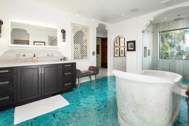 Location, style, attention to detail and masterful construction find harmony within this recently renovated/updated Santa Barbara style Rancho Santa Fe Covenant estate showcasing spectacular views. Ideally situated, on one of the highest points and desirable streets in the exclusive Covenant in Rancho Santa Fe on 3.21 beautiful, private, gated and fenced acres, with unlimited panoramic South-Western views with an peek of the Pacific ocean and stunning sunsets in addition to mountain and back country views from the rear of the residence. The gracious home exudes casual elegance and provides the ultimate venue for indoor/outdoor living and entertaining. The approximately 8,161 square foot residence encompasses five well-appointed bedrooms suites (including the expansive guest suite) stylishly appointed powder room, formal living/music room with French doors, dining room with fireplace, large windows and French doors with a view deck, theatre/viewing room with black lacquered walls, and a expansive library/office/party room with an entertaining bar, antique fireplace and wall fountain with a wall of disappearing doors leading the private backyard with koi pond, fruit orchards, specimen trees and a lounging area. The great room with 1,500 bottle chilled wine cellar, fireplace, abundance of windows with informal dining and a wall of custom storage and shelves, opens seamlessly to the outdoors. The great room flows into the kitchen - designed for a persnickety chef, is complete with top-of-the line commercial appliances, marble countertops and an abundance of storage. The sublime primary retreat is warm and generous, with private veranda showcasing the exquisite views, perfect for morning coffee, afternoon sun, or an evening cocktail. There is an oversized dressing room complete with custom built-ins and a spa-like bath with lavish finishes. Upscale designer finishes throughout the residence include furniture-grade cabinetry, custom tile and stone, handmade hardware and light fixtures, hardwood floors, antique fireplaces, French doors, walls of disappearing doors, and oversized windows with abundant storage. The attached guest suite includes a full kitchen, bedroom with bath and a sitting/bonus room. Enjoy the outdoors with a private salt water pool, spa with tropical forest with rare plant specimens, outdoor heated living room with summer kitchen and storage, private tennis court, and exotic fruit orchard. The property has been magnificently landscaped with velvet lawns, lavender, plumeria, jacaranda, aloe, to name a few. This estate property is the perfect venue for grand scale entertaining, family gatherings or relaxation. Garaging for 6 vehicles. Pool bath. Antique gates. Raised bed gardens. Firepit. Walking trail. Orchard with a wide variety of fruit. All gated and fenced. Whole house solar. Close to shopping, major highways and some of the best beaches in Southern California. Roger Rowe school district. Ability to join RSF Golf and Tennis clubs. Golf Membership to the RSF Golf Club is included with the sale. Equestrian/walking trails.GOLF MEMBERSHIP TO THE RSF GOLF CLUB IS INCLUDED IN SALE WITH AN ACCEPTED OFFER BY 5/26/2025 (MEMORIAL DAY).Interested in this Listing?