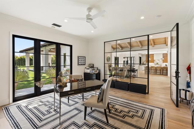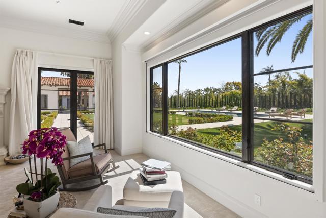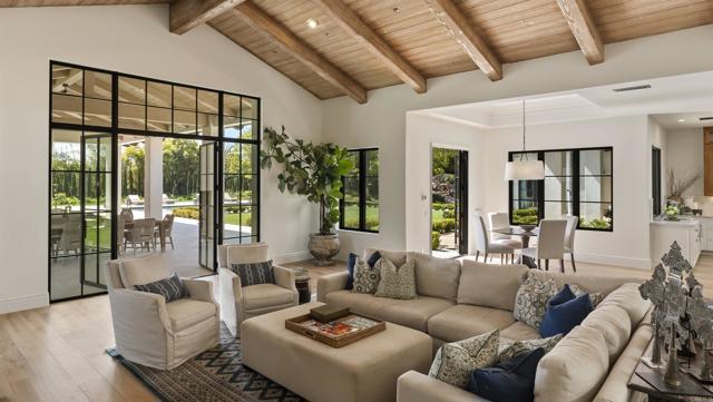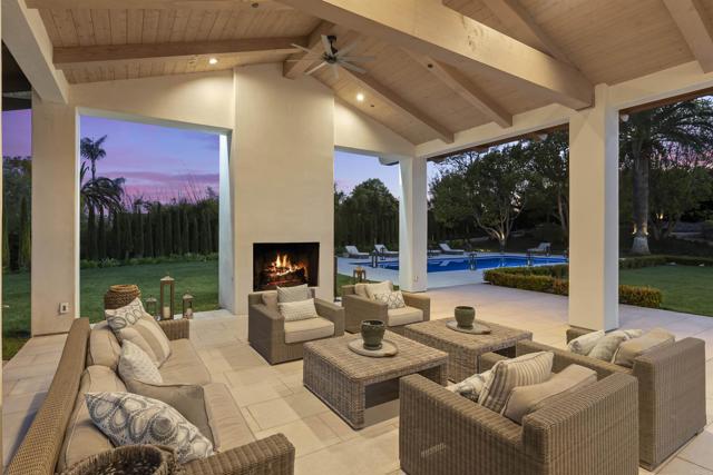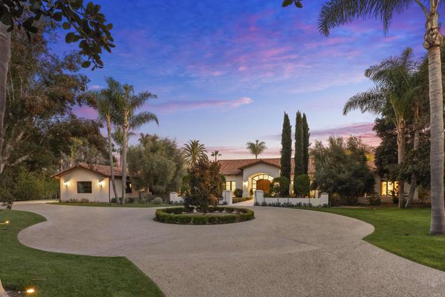 Privately gated within the prestigious Rancho Del Lago community, this 4-acre modern Mediterranean estate offers timeless design and refined living in Rancho Santa Fe. The nearly 8,000 sq ft single-level home features a flowing open-concept floor plan with light-filled interiors, generous en-suite guest bedrooms, dual offices, and a luxurious primary suite with spa-like bath, fireplace, and dual walk-in closets. A detached 1BR/1BA guest house provides private accommodation for extended stays. The gourmet kitchen is outfitted with Subzero, Wolf, and Miele appliances and opens to spacious living and dining areas that overlook the tranquil outdoor setting. A grand loggia with statement fireplace anchors the resort-style backyard, complete with a pool, putting green, bocce court, garden beds, and lush landscaping with over 140 orange trees. Set on 4 acres, the estate offers ample versatility and opportunity for a future owner to create their dream estate whether that be adding a tennis court, sport court, ADU, equestrian facilities, or whatever one s heart desires. Here, the possibilities are endless. Equipped with owned solar, backup generator, and a private well, this estate blends beauty, function, and convenience just minutes from the Village, Roger Rowe School, golf, and the coast.Interested in this Listing?