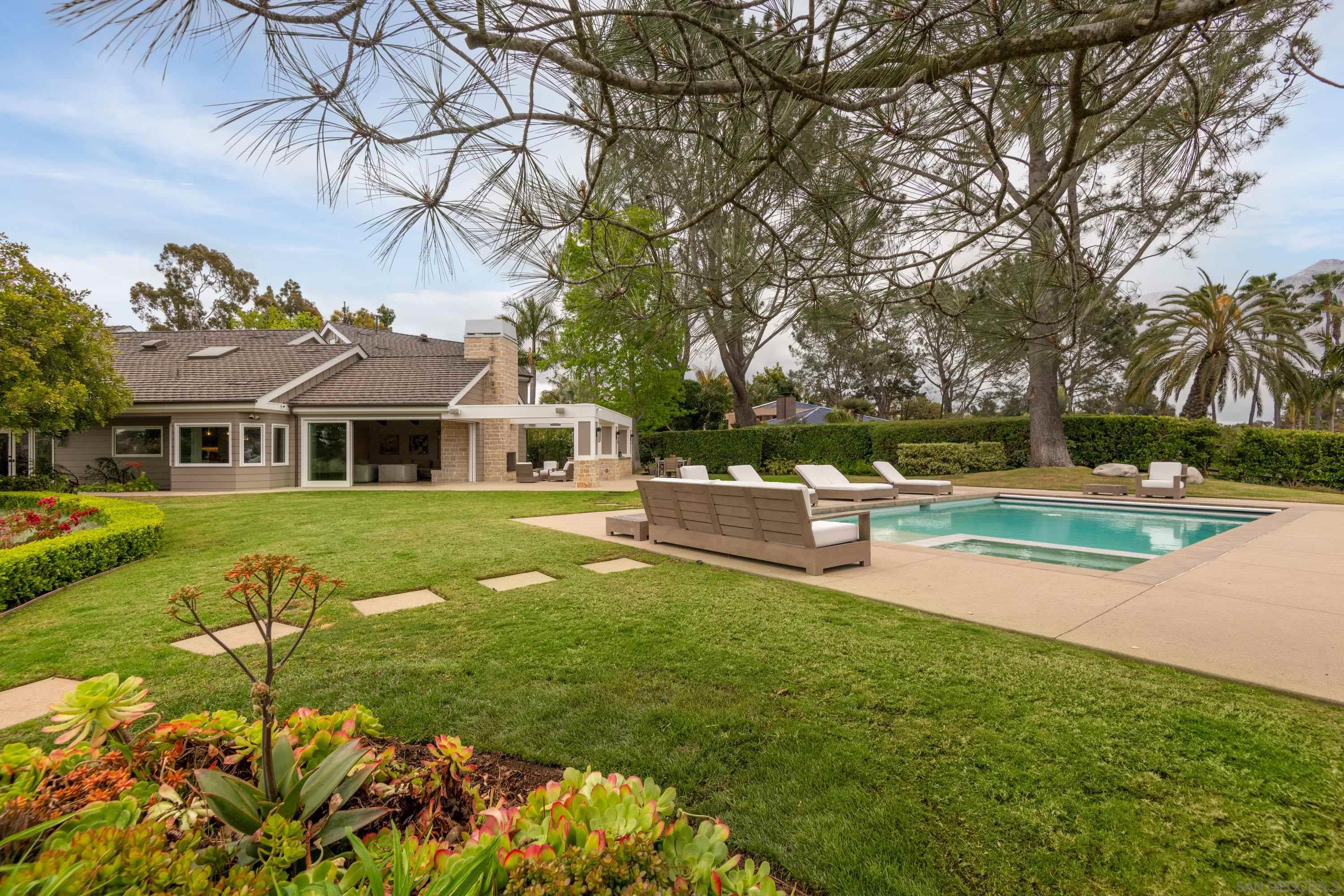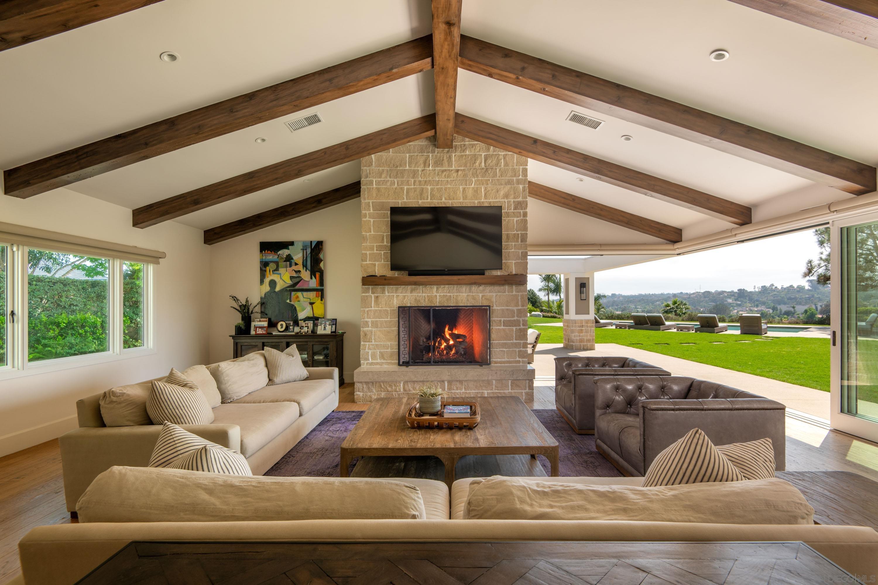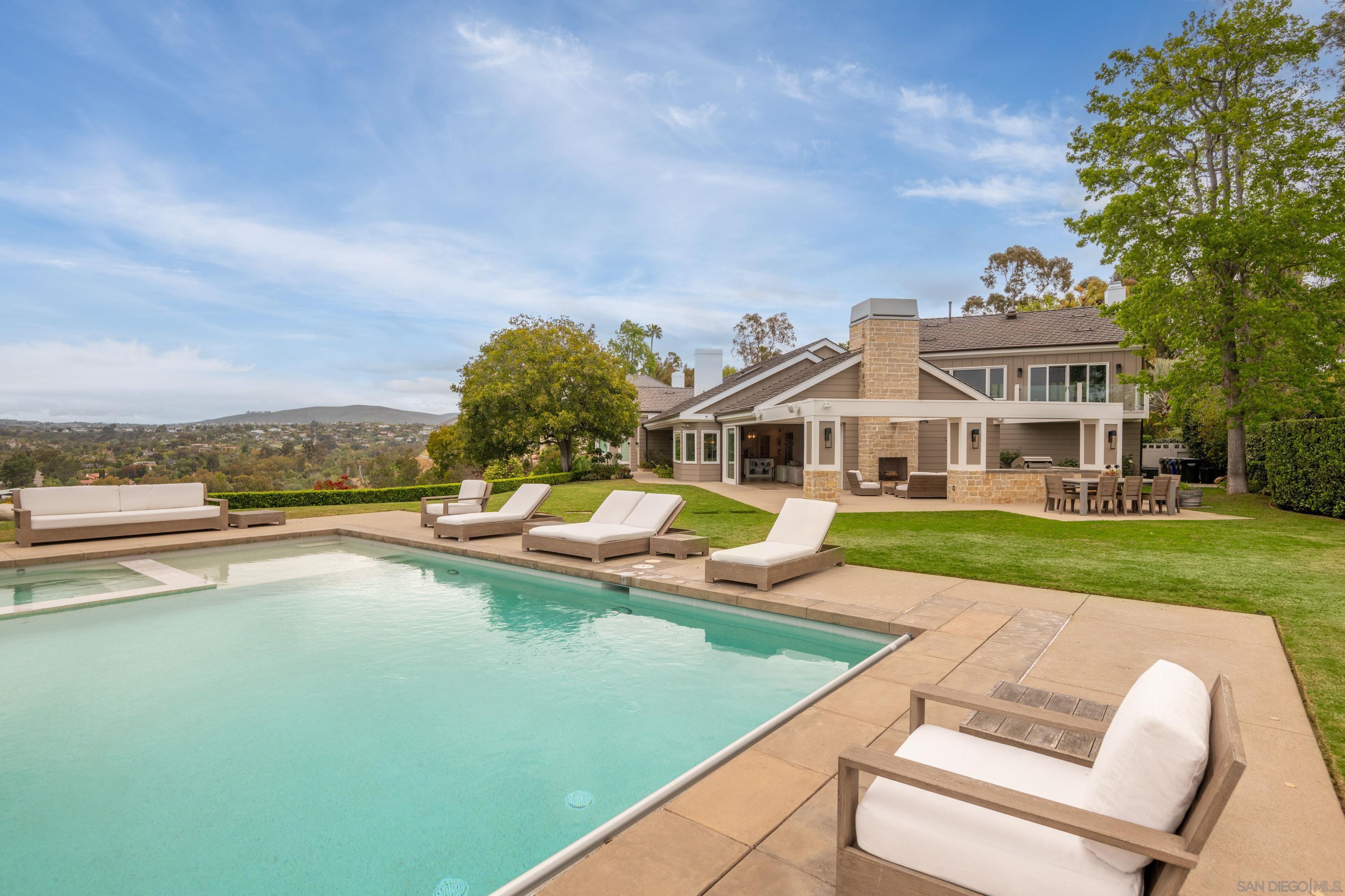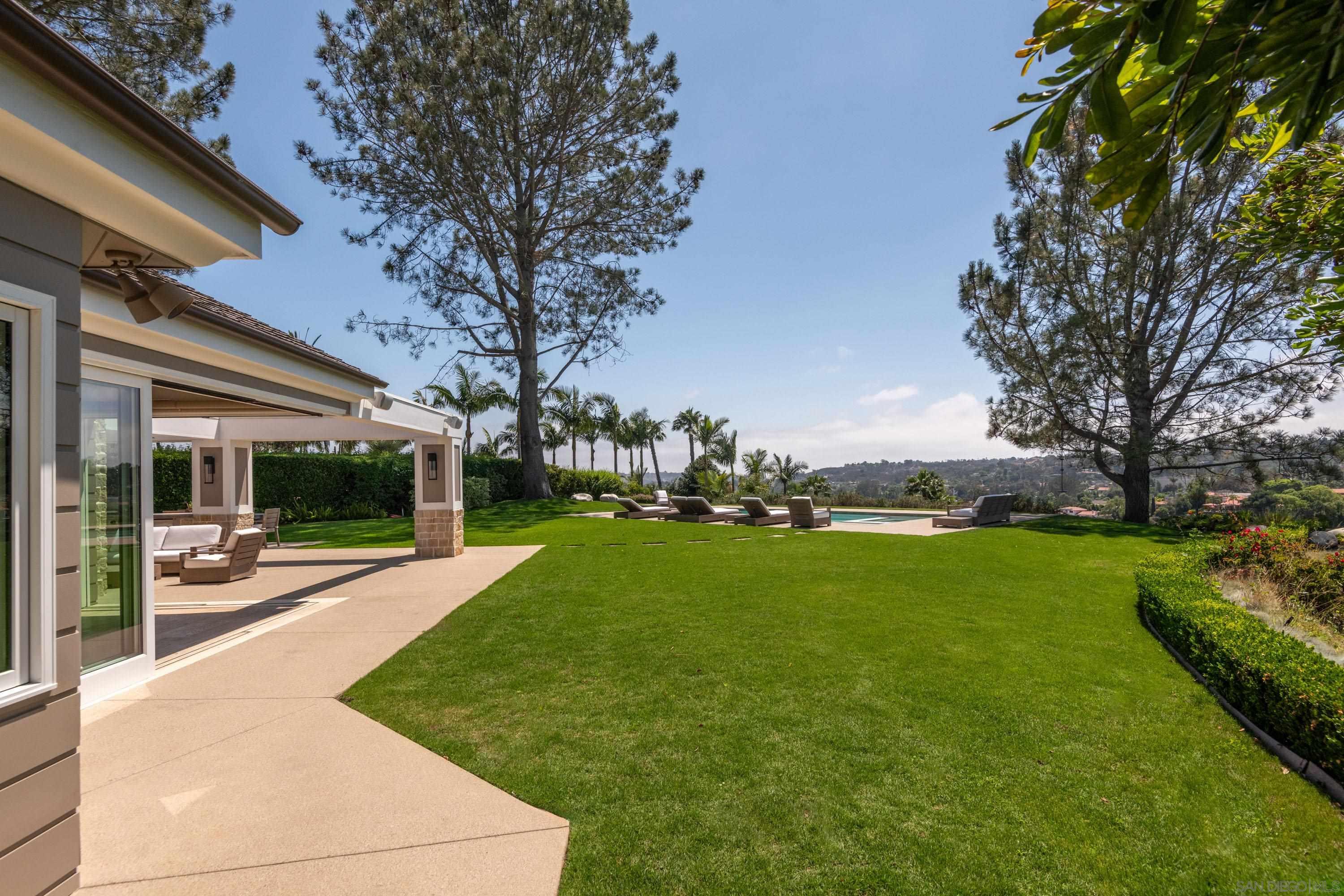 Located in Rancho Santa Fe behind the gates of the highly sought-after South Pointe Farms community, this spectacular 6,405 sq ft home has been extensively remodeled - both inside & out - to perfection. Situated on a private cul-de-sac and spanning 4+ acres, the property enjoys commanding 270-degree west-facing views and the ultimate in privacy and tranquility. This beautifully designed home is ALL single level, with the exception of a spacious upstairs game room above the 3 car garage complete with a full bar, fireplace, pool & card table, and pinball & slot machines -making it an entertainer s dream. There are beautiful finishes throughout and the floorplan is ideal with 4 out of the 5 bedroom suites on one side of the home. New roof, windows, doors, pool, flooring, fireplaces, siding etc. The designer kitchen features top-of-the-line appliances, Carrera marble countertops, and flows seamlessly into an expansive family room with vaulted, wood-beamed ceilings. Massive sliding glass doors open the entire corner of the home inviting the outdoors in. The resort-style backyard is a true sanctuary, featuring a new heated pool and spa, outdoor kitchen, fireplace, an area for al fresco dining, mature Torrey Pines, fruit trees & gardens, and a sprawling grassy lawn ideal for entertaining, enjoying the hot air balloons that launch from below, relaxing while watching the sunset, and taking in the extraordinary views. Perfectly located in the most northwestern area of Rancho Santa Fe, this special offering is just minutes from top schools, restaurants, shopping, and coastal access.Interested in this Listing?