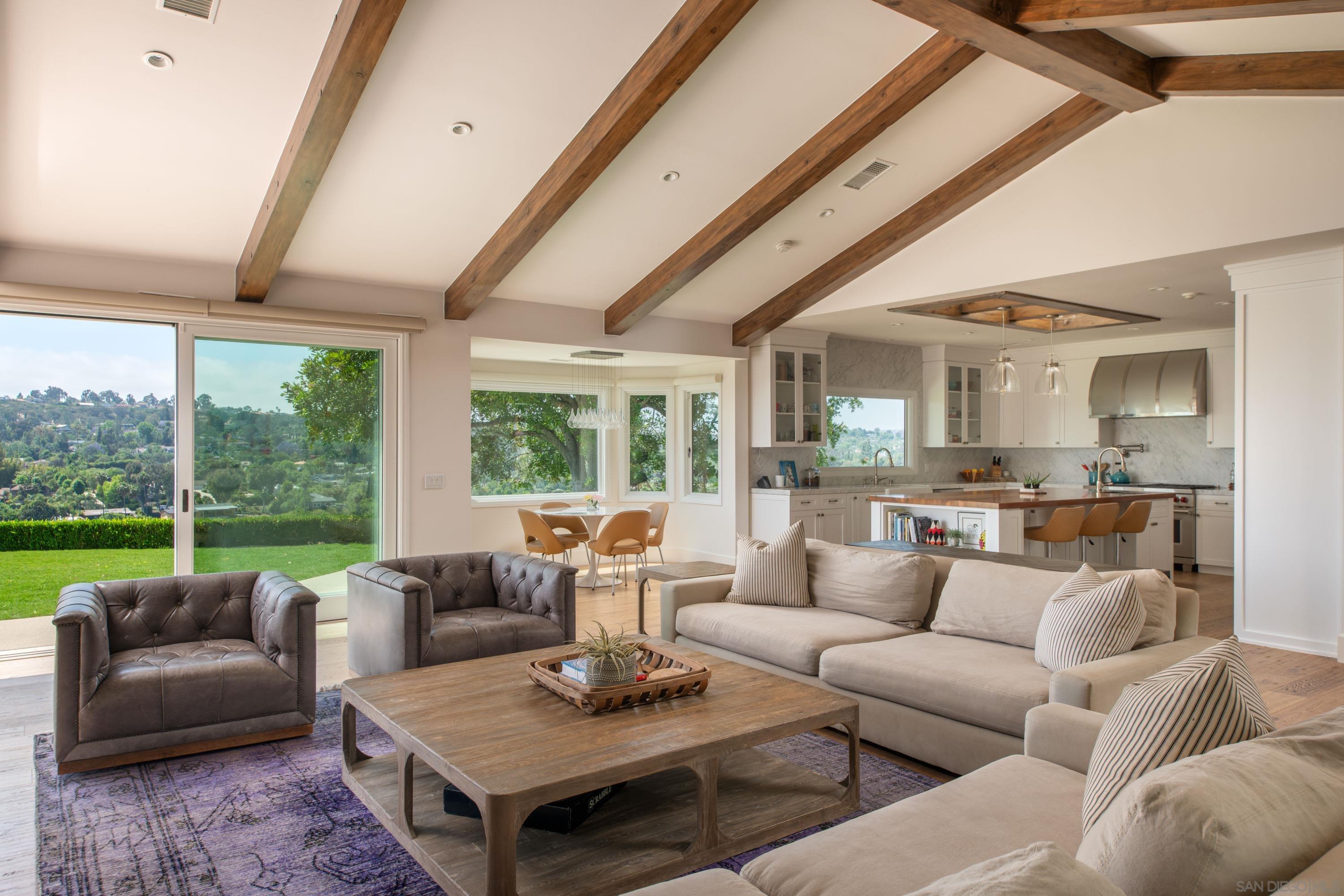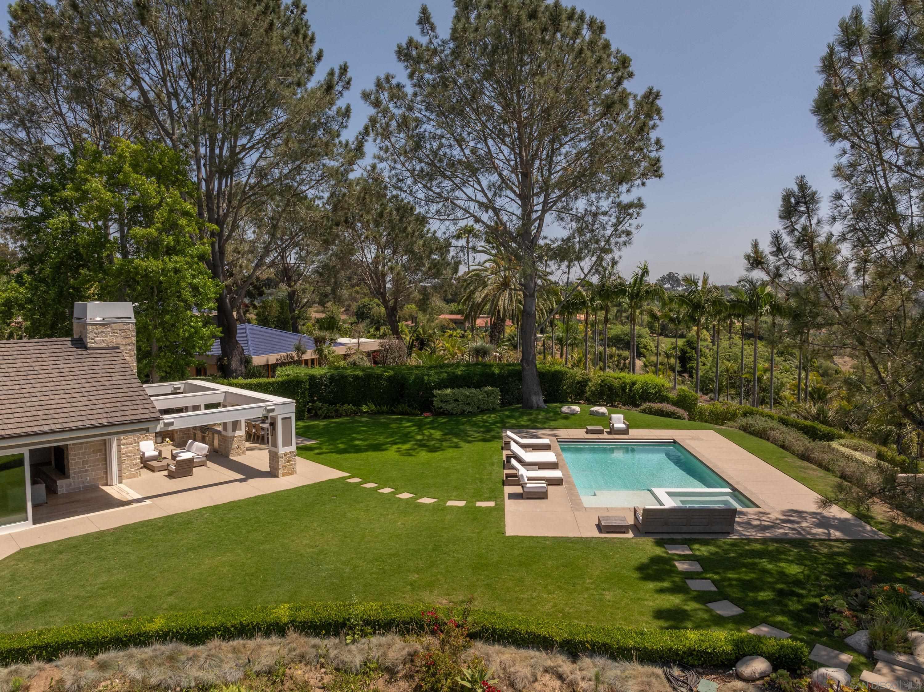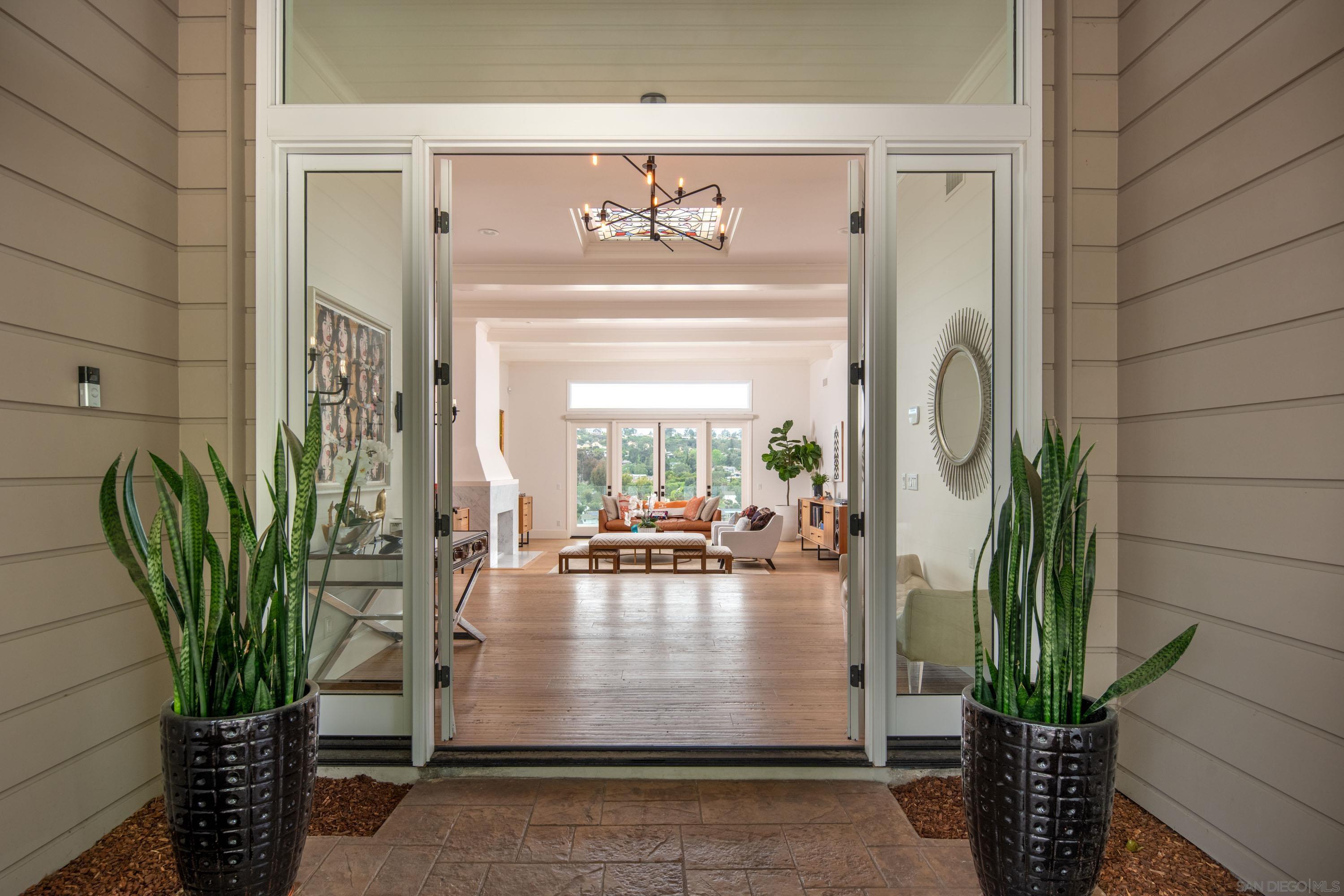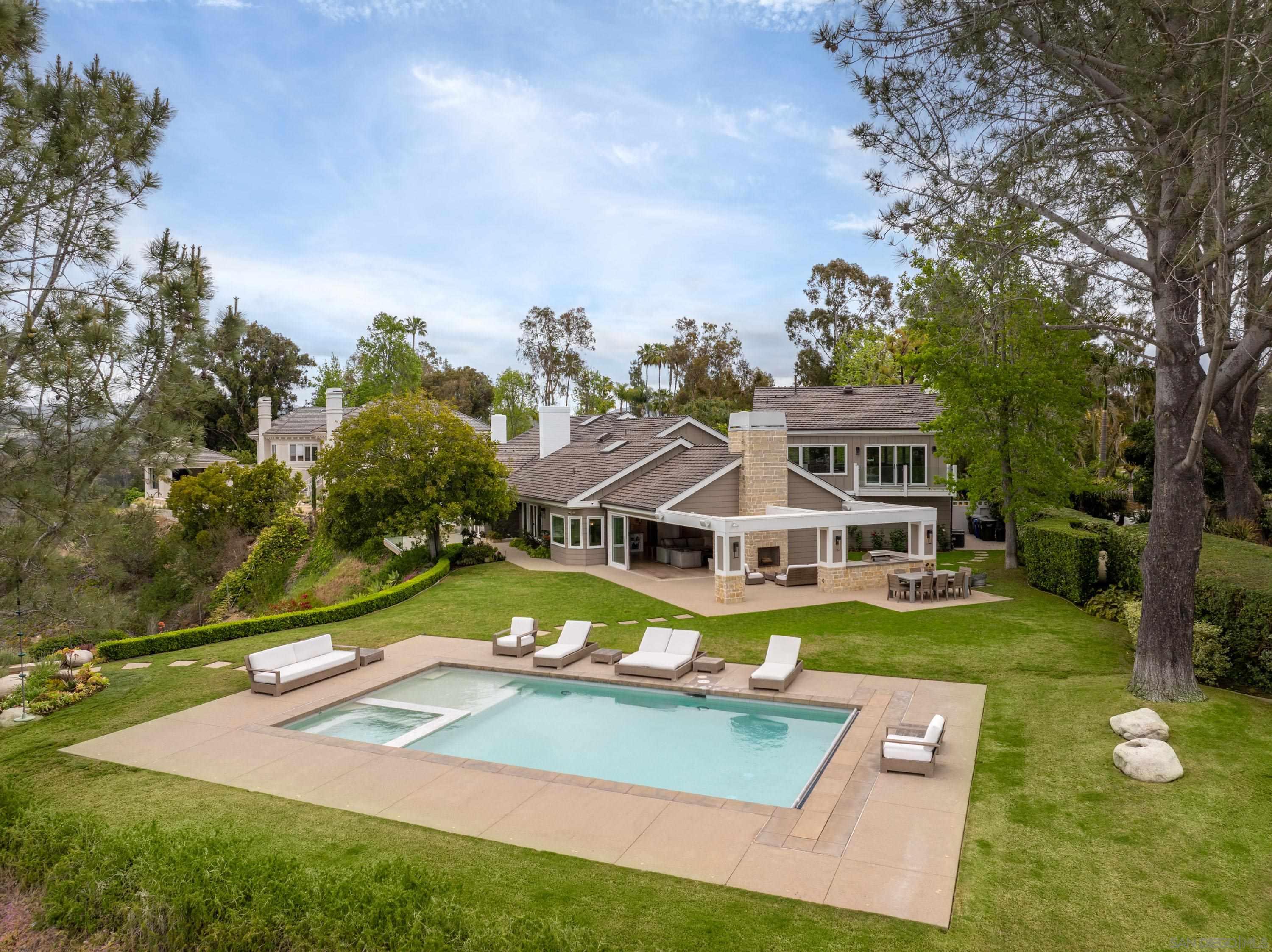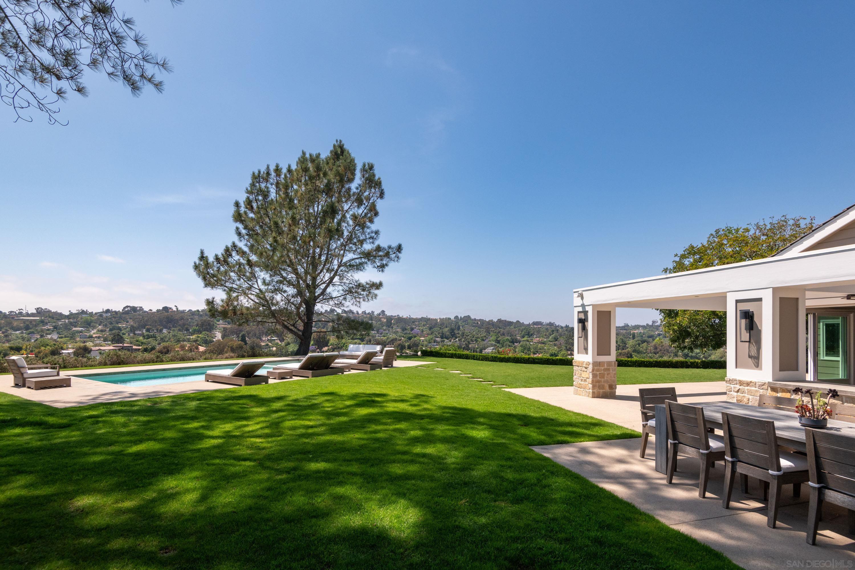 Located in Rancho Santa Fe behind the gates of the highly sought-after South Pointe Farms community, this spectacular 6,405 sq ft home has been extensively remodeled - both inside & out - to perfection. Situated on a private cul-de-sac and spanning 4+ acres, the property enjoys commanding 270-degree west-facing views and the ultimate in privacy and tranquility. This beautifully designed home is ALL single level, with the exception of a spacious upstairs game room above the 3 car garage complete with a full bar, fireplace, pool & card table, and pinball & slot machines -making it an entertainer s dream. There are beautiful finishes throughout and the floorplan is ideal with 4 out of the 5 bedroom suites on one side of the home. New roof, windows, doors, pool, flooring, fireplaces, siding etc. The designer kitchen features top-of-the-line appliances, Carrera marble countertops, and flows seamlessly into an expansive family room with vaulted, wood-beamed ceilings. Massive sliding glass doors open the entire corner of the home inviting the outdoors in. The resort-style backyard is a true sanctuary, featuring a new heated pool and spa, outdoor kitchen, fireplace, an area for al fresco dining, mature Torrey Pines, fruit trees & gardens, and a sprawling grassy lawn ideal for entertaining, enjoying the hot air balloons that launch from below, relaxing while watching the sunset, and taking in the extraordinary views. Perfectly located in the most northwestern area of Rancho Santa Fe, this special offering is just minutes from top schools, restaurants, shopping, and coastal access.Interested in this Listing?
