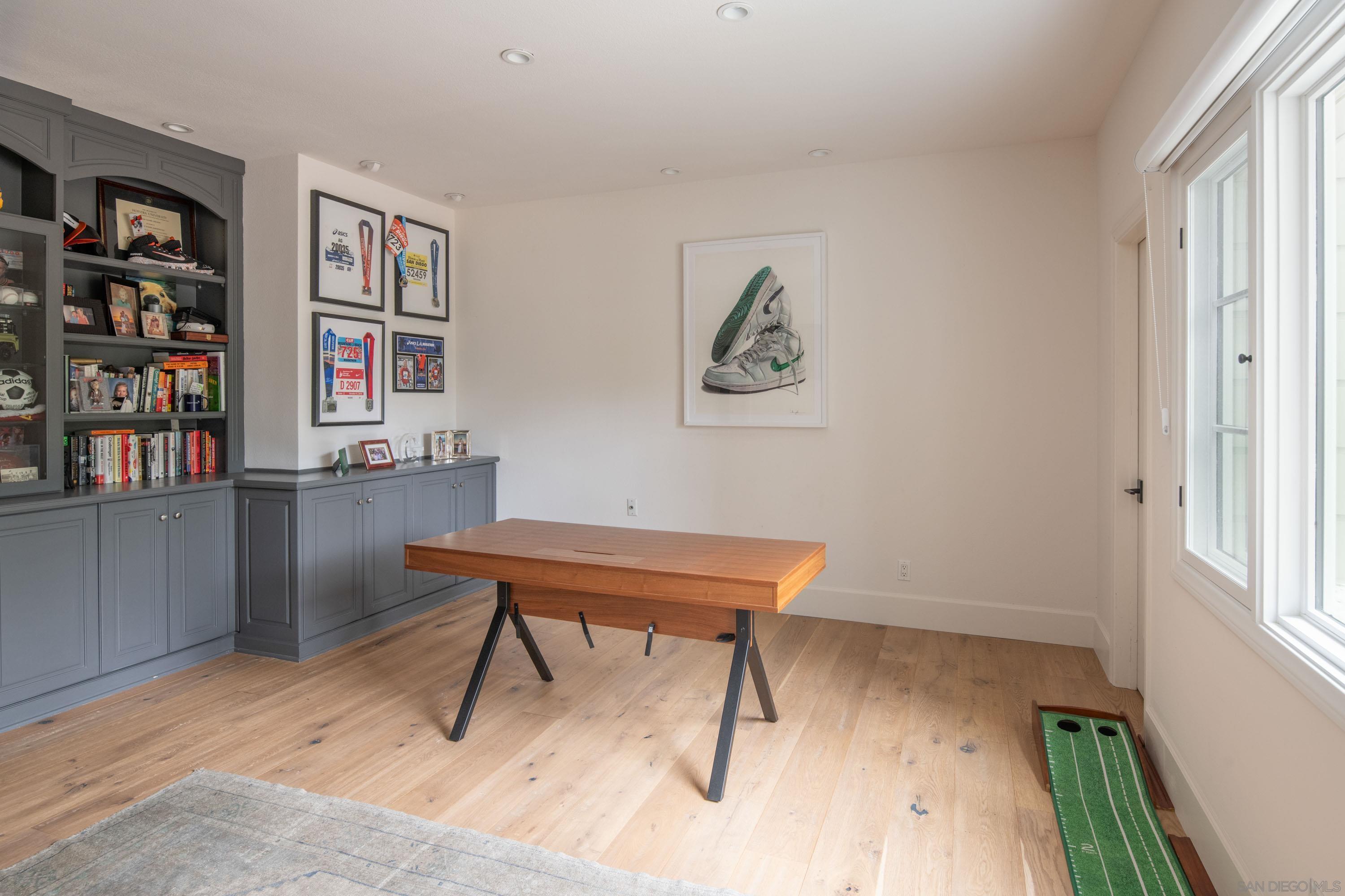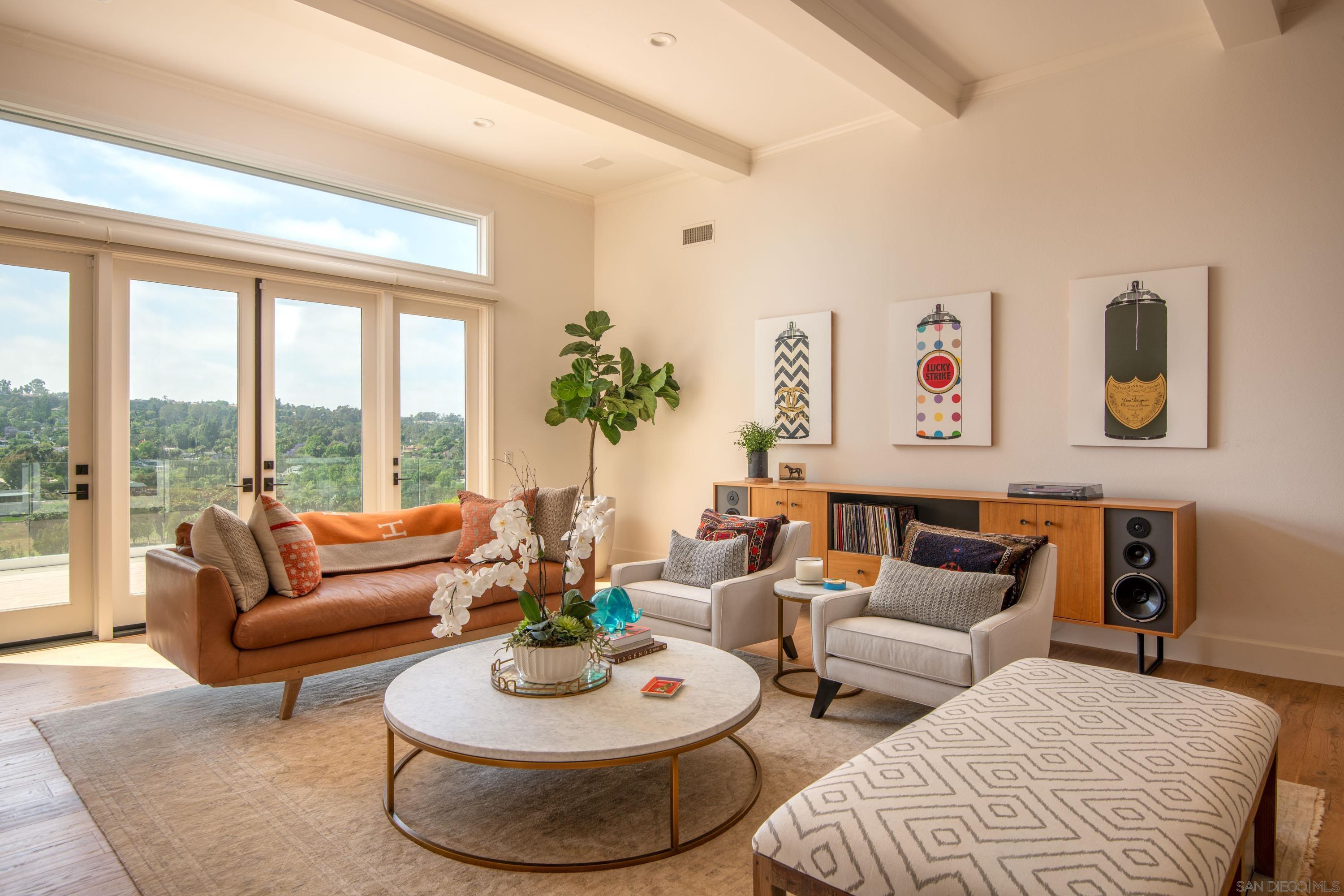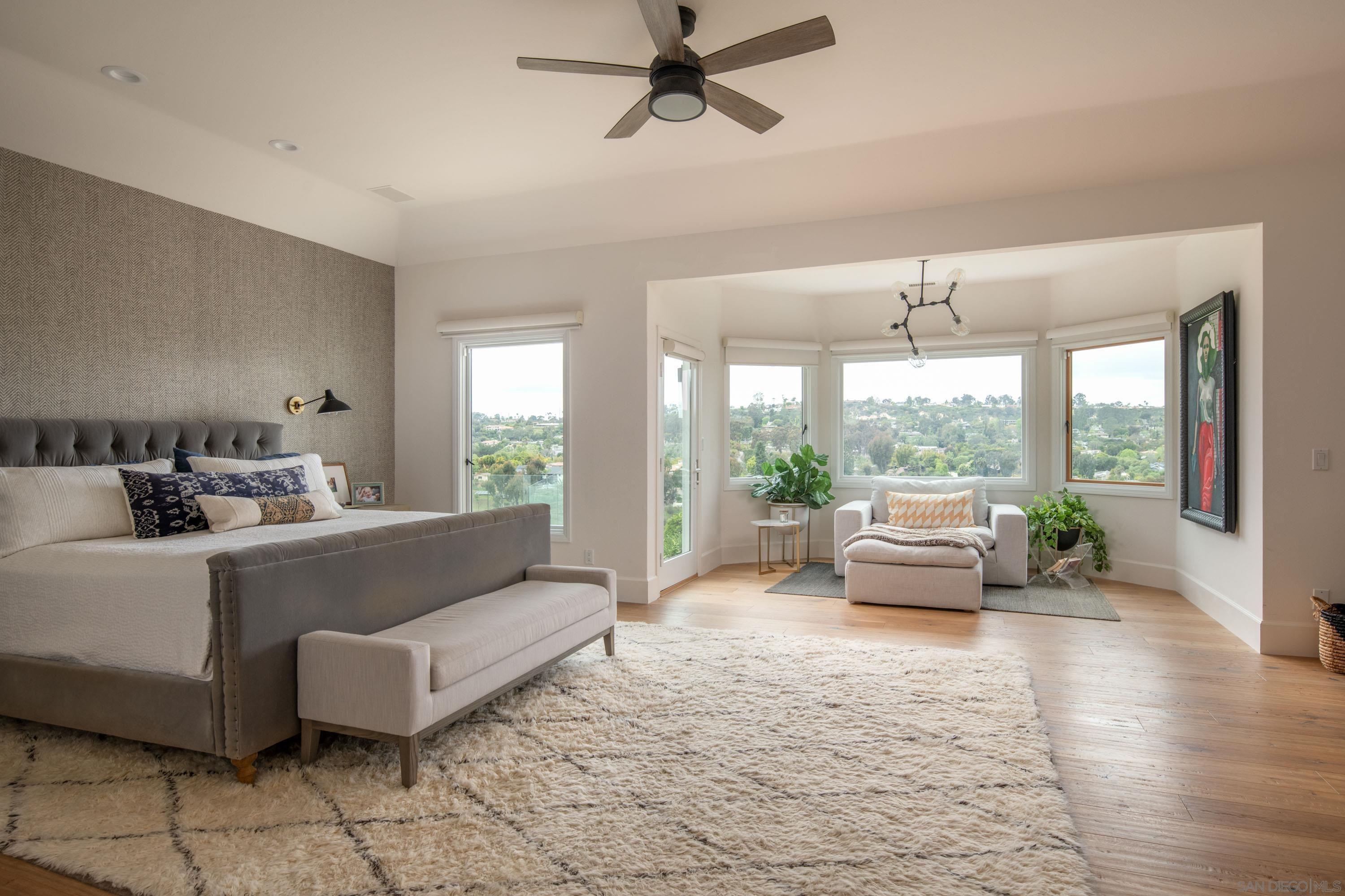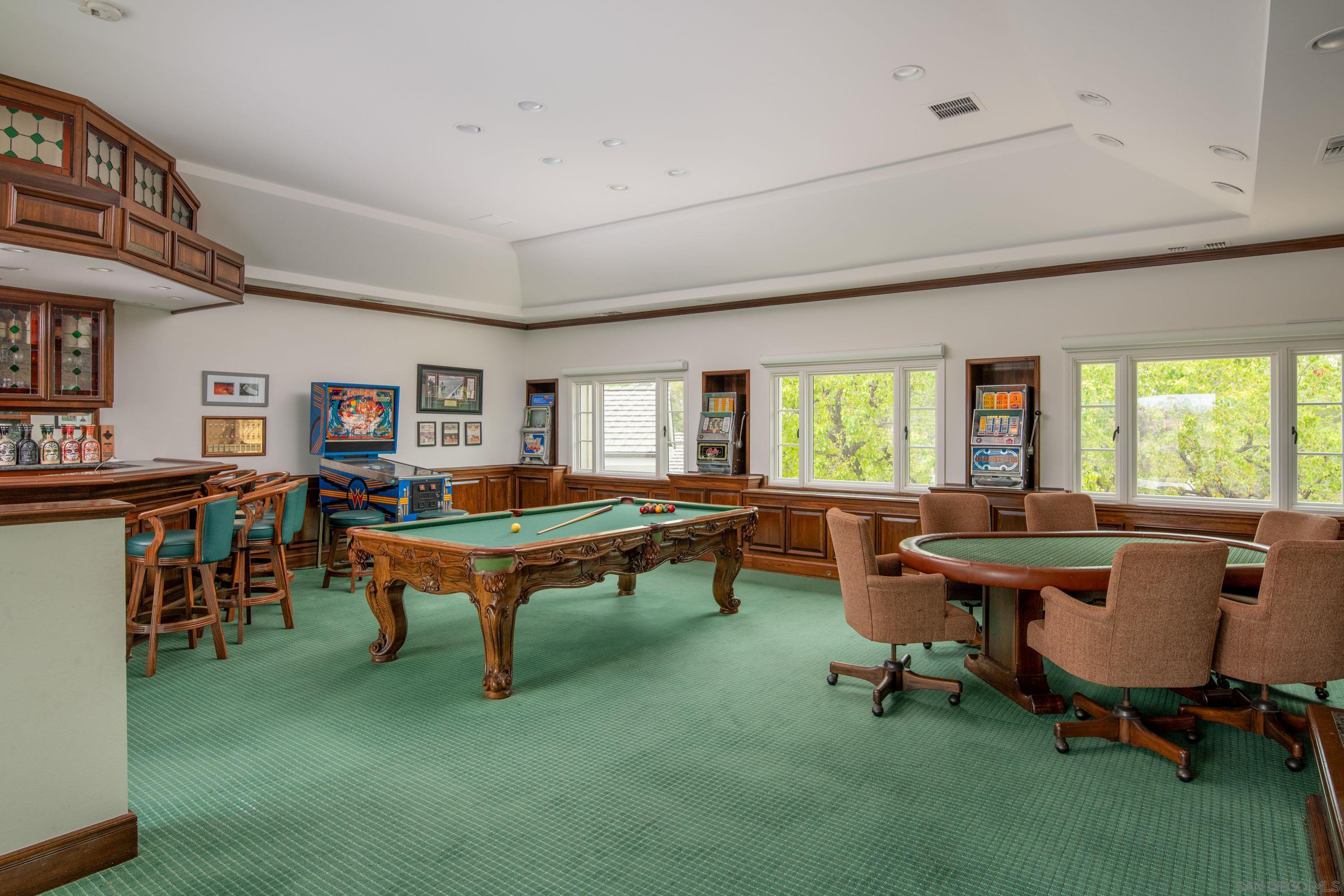 Located in Rancho Santa Fe behind the gates of the highly sought-after South Pointe Farms community, this spectacular 6,405 sq ft home has been extensively remodeled - both inside & out - to perfection. Situated on a private cul-de-sac and spanning 4+ acres, the property enjoys commanding 270-degree west-facing views and the ultimate in privacy and tranquility. This beautifully designed home is ALL single level, with the exception of a spacious upstairs game room above the 3 car garage complete with a full bar, fireplace, pool & card table, and pinball & slot machines -making it an entertainer s dream. There are beautiful finishes throughout and the floorplan is ideal with 4 out of the 5 bedroom suites on one side of the home. New roof, windows, doors, pool, flooring, fireplaces, siding etc. The designer kitchen features top-of-the-line appliances, Carrera marble countertops, and flows seamlessly into an expansive family room with vaulted, wood-beamed ceilings. Massive sliding glass doors open the entire corner of the home inviting the outdoors in. The resort-style backyard is a true sanctuary, featuring a new heated pool and spa, outdoor kitchen, fireplace, an area for al fresco dining, mature Torrey Pines, fruit trees & gardens, and a sprawling grassy lawn ideal for entertaining, enjoying the hot air balloons that launch from below, relaxing while watching the sunset, and taking in the extraordinary views. Perfectly located in the most northwestern area of Rancho Santa Fe, this special offering is just minutes from top schools, restaurants, shopping, and coastal access.Interested in this Listing?