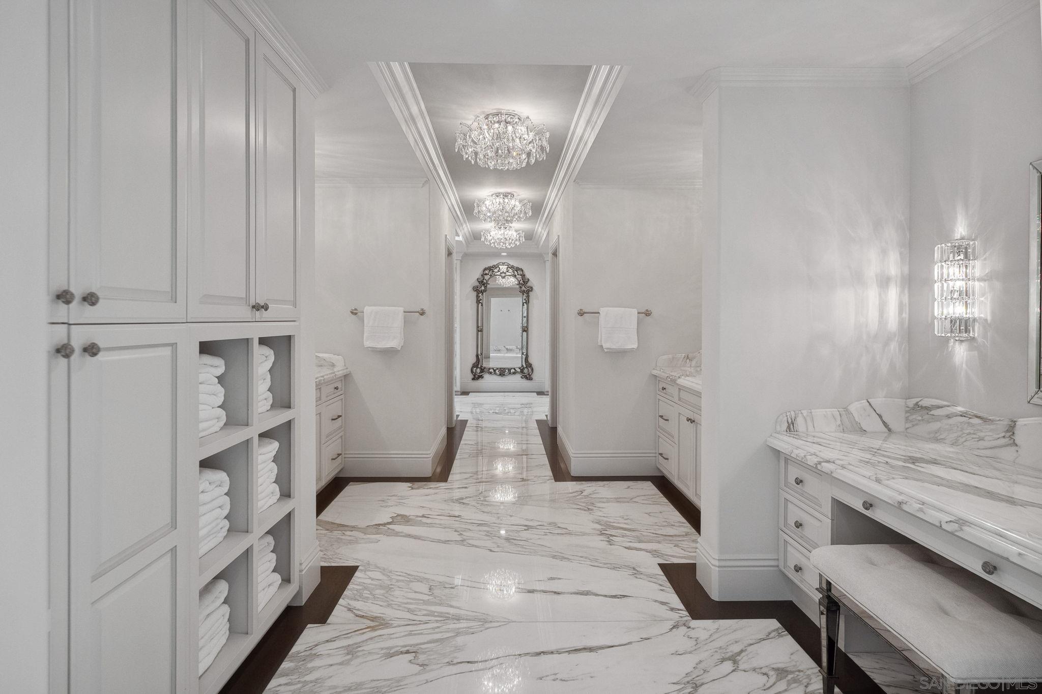 Set along a commanding hillside behind private gates in Rancho Santa Fe s prestigious enclave the Covenant this grand estate blends classic RSF character with timeless European influence. A dramatic grand entry sets the tone with imported Italian limestone floors, custom molding, and crystal chandelier. Stroll through the gallery framed by limestone columns into a massive open living space and marble-clad chef s kitchen featuring Sub-Zero refrigeration, dual Miele dishwashers, and seamless Savant Pro audio integration throughout. Crafted entirely for royalty, the estate pairs indulgence with innovation through a wine cellar, dedicated cigar lounge, and full smart-home system. The primary suite offers a showroom-style closet, a spa-inspired marble bath with soaking tub and dual shower, two fireplaces, and a private balcony overlooking Rancho Santa Fe s rolling hills. Step outside to an entertainer s dream: resort grounds with a dramatic pool and elevated spa framed by manicured hedges, swaying palms, and unobstructed western views that come alive at golden hour. The great room and cabana rooms offer seamless indoor-outdoor flow for lounging or hosting with ease. Generous grounds invite your imagination approved plans already call for a detached guest casita and a championship-grade pickleball court to elevate the estate even further.Interested in this Listing?