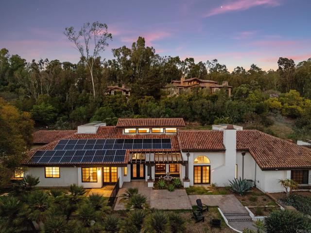 Recent Price Adjustment! Welcome to 4610 El Nido in the desirable community of Rancho Santa Fe. Located directly across from San Dieguito Park, in The Covenant of Rancho Santa Fe, and permitted for up to 3 horses, this exceptional home combines modern convenience, spacious living, and unique amenities. Designed for both everyday living and entertaining, the open-concept kitchen features stainless steel appliances, a gas stove, an electric oven, and a breakfast seating area. The adjacent dining room includes a bar with a wine fridge, while the family room boasts built-in shelving, and both the living room and family room have charming wood-burning fireplaces, and large double ceiling fans. A bonus room above the living room provides additional office space with storage and closet. The primary suite opens directly to the patio and pool area and includes built-ins, a large, tiled shower, an electric fireplace over the bathtub, and ample closet storage. Additional bedrooms include a nursery/playroom with built-ins and outdoor access, as well as two bedrooms with large closets connected by a Jack and Jill bathroom. The home offers practical features such as a spacious laundry room with a double-stacked washer and dryer, a pedestal washing machine for small loads, and an outdoor courtyard with storage. The two-car garage includes an attached bathroom and a Tesla charger. With paid-off solar, a gas and electric furnace allowing for easy switching between the two, and two AC/heat zones with variable modes, this home is designed for efficiency. With safety in mind, it is also wired for an alarm system. Outdoor living is enhanced by a pool, fountain, and a courtyard with an outdoor fireplace off the primary suite. The backyard is lined with established jacaranda trees, creating a picturesque setting. For those with equestrian or agricultural interests, the property is permitted for three horses and livestock and features a full corral along with a two-story, tiled roof chicken coop equipped with storage, separate sections, power, and water. Additionally, the home includes a septic system with two full-sized tanks and two leach fields. A 100-amp sub panel near the pool equipment allows for easy installation of a heater, with gas piping already in place. This thoughtfully designed home offers an exceptional combination of space, sustainability, and a prime location.Interested in this Listing?