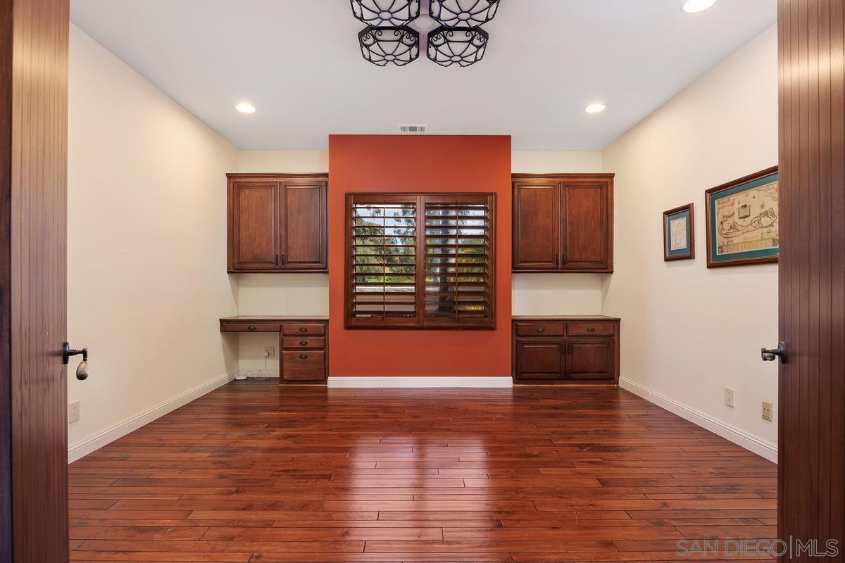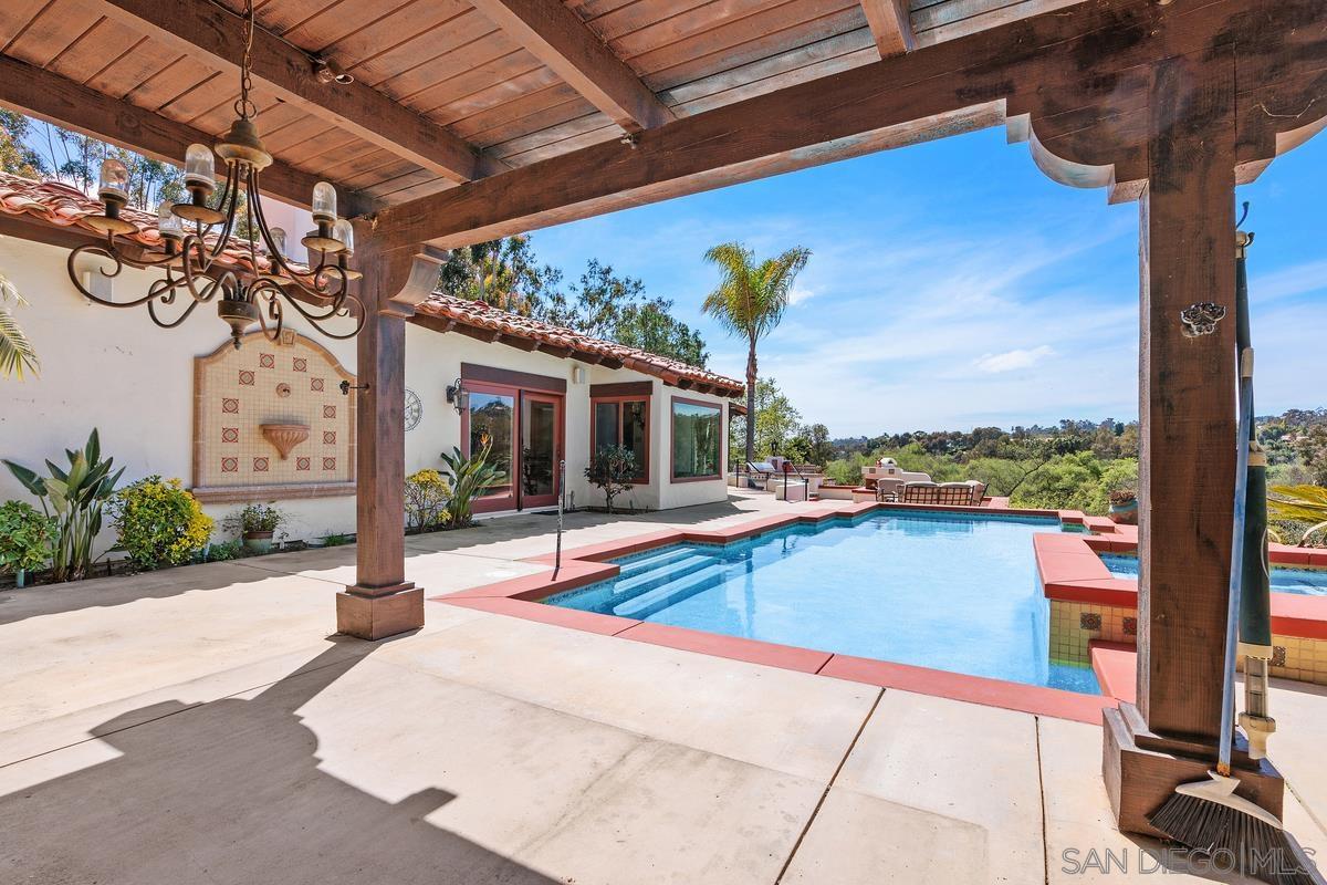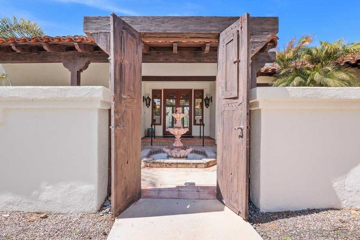 Single level estate with western exposure, tranquil views, gentle ocean winds and sprawling outdoor spaces to enjoy. Some of the many details are walnut floors, open floorplan, detailed high ceilings, his and her offices, salt water pool and spa, extra large secondary bedrooms, separate guest entrance with kitchenette, 3 car garage with extensive storage, gracious entry with antique wooden doors and spanish fountain, and plenty of grassy areas for all to enjoy. Conveniently located in South Pointe Farms behind a private gate on the very western edge of the Ranch close to shopping and schools. Owned solar with three back up batteries. Designed by renowned architect Alex Friehauf.Interested in this Listing?