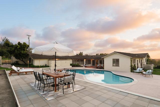 A Historic Rancho Santa Fe masterpiece awaits! Seize this rare opportunity to own a breathtaking 5.26-acre generational estate in the heart of the prestigious Rancho Santa Fe Covenant, where historic charm meets modern luxury. Nestled in a coveted westside location within the award-winning Roger Rowe school district, this extraordinary property offers unparalleled serenity, expansive grounds, and captivating westerly views with peek-a-boo ocean vistas. At the heart of this idyllic property lies a beautifully remodeled single-level residence, a testament to refined living. Featuring 4 spacious bedrooms and 4 full bathrooms, this home exudes warmth and sophistication. The open-concept living areas are bathed in natural light, with large windows and sliders offering a seamless flow to the outdoors, ideal for both intimate family moments and lavish entertaining. The state-of-the-art kitchen, a chef s dream, boasts premium appliances and custom finishes, while the primary suite offers a tranquil haven with a spa-like ensuite. The backyard is an entertainer s paradise, complete with a sparkling pool, a bocce ball court and a charming pool house with a full bath. Every inch of the home has been thoughtfully updated, blending contemporary comforts with timeless elegance. This versatile property also caters to equestrian enthusiasts, with ample flat, usable land suitable for pastures or arenas and offers easy access to RSF's famous trail system. If you're interested in building new, this property had previously fully approved Covenant plans for a stunning 6,477 sq. ft. main residence with 2 car garage, 1770 sq. ft. five stall barn with in & out stalls, pastures, and large arena. 1,693 sq. ft. additional garages, and a 670 sq. ft. pool house. This historic property is more than a home it s a legacy. With its prime location, move-in-ready allure, and endless possibilities, this is a once-in-a-lifetime opportunity to own your dream home in Southern California s most exclusive enclave!Interested in this Listing?