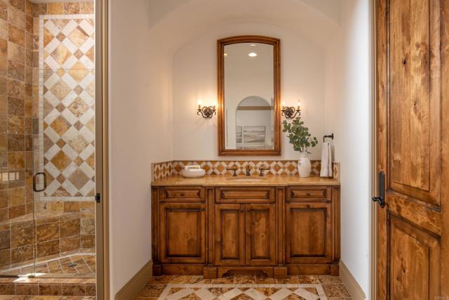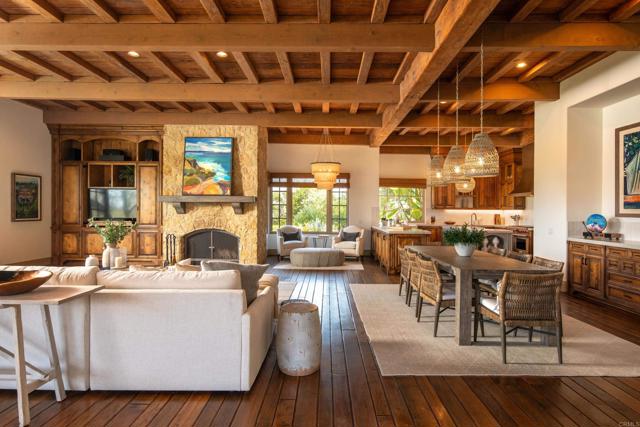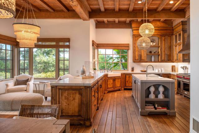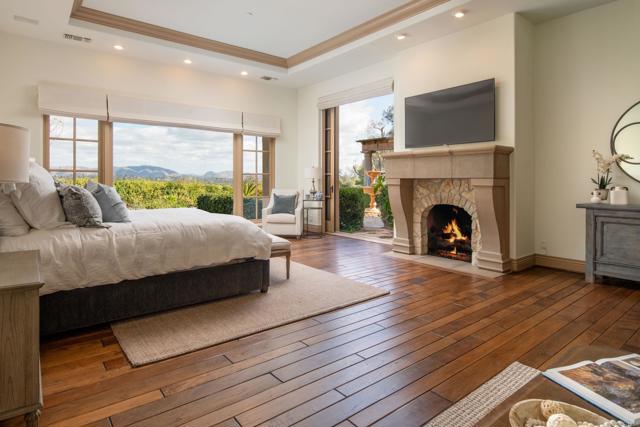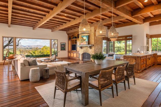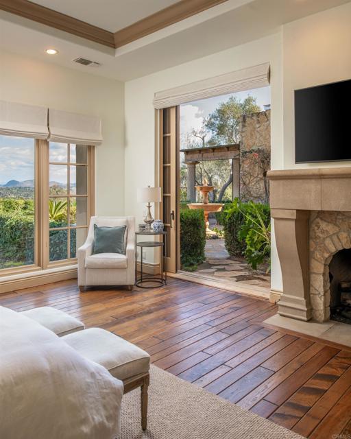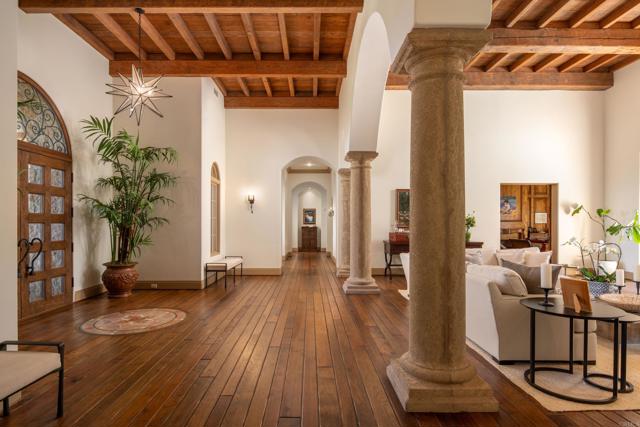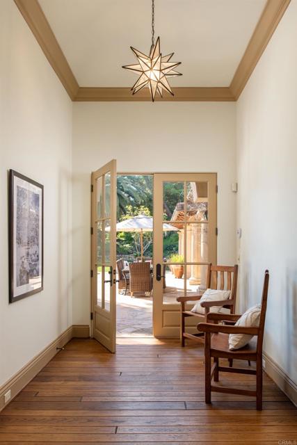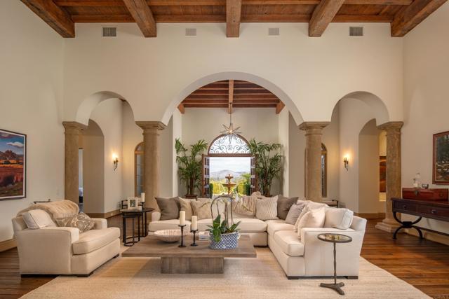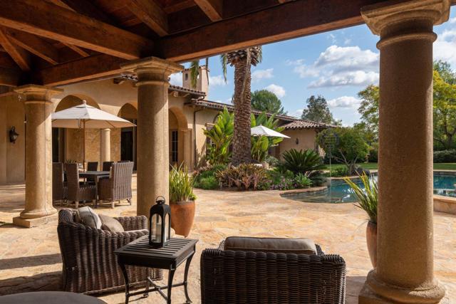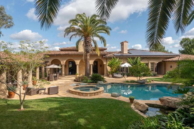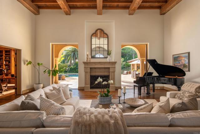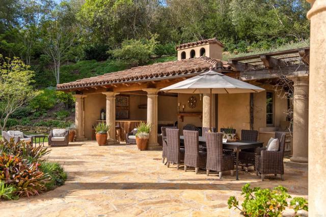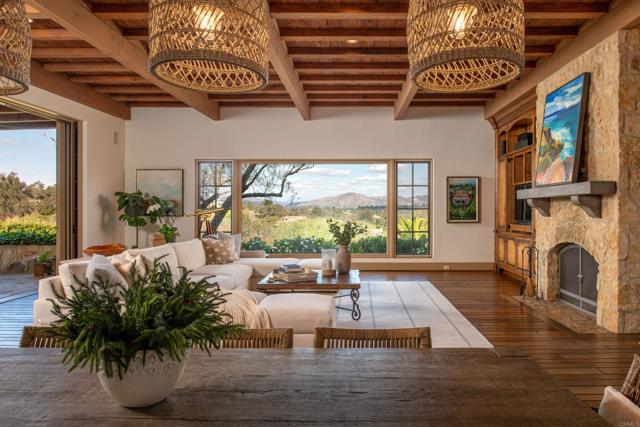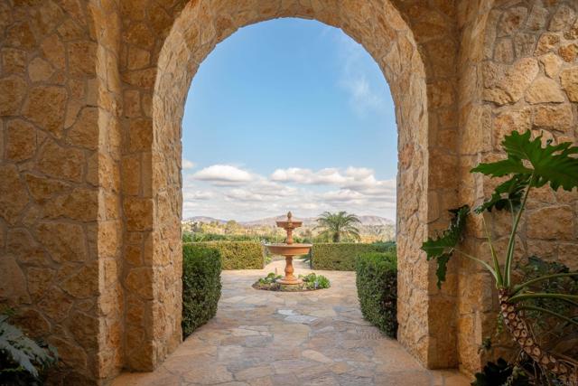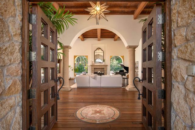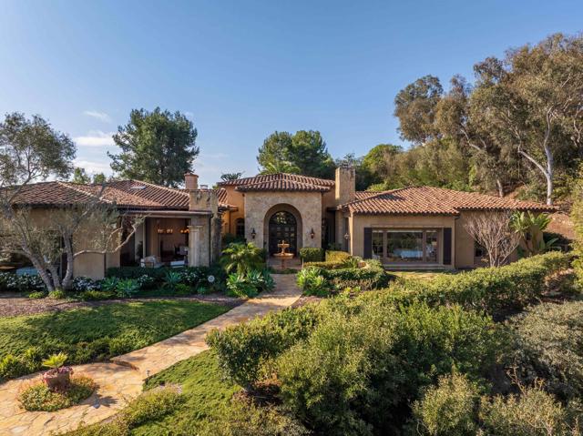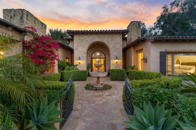 Nestled in the prestigious west side of the Covenant, this extraordinary European-inspired estate offers an unrivaled blend of luxury, privacy, and breathtaking vistas. Perched atop a 4.8-acre gated site, accessed via a winding driveway, this exquisite property seamlessly marries old-world craftsmanship with modern conveniences. The single-story layout exudes warmth and sophistication, featuring real stone, shuttered windows, vintage beamed ceilings, and plank wood floors. Seven wood-burning fireplaces add to the cozy ambiance. The gourmet kitchen boasts a butler's kitchen and a spacious pantry. A paneled executive office provides an ideal workspace, while the 10-seat home theater offers cinematic indulgence. An authentic wine cellar, integrated sound system, and ensuite bedrooms including a serene main retreat with a separate gym/nursery complete the interior's luxurious offerings. The home achieves an enviable indoor-outdoor living experience through five sets of lift-and-slide pocket doors that effortlessly blur the boundaries between interior and exterior spaces. These architectural elements allow natural light to flood the interiors while creating a fluid connection with the landscape, enabling residents to enjoy uninterrupted views and easy transitions. The backyard features a beach entry pool surrounded by lush landscaping, a pool cabana with BBQ, fireplace, and a pavilion perfect for al fresco entertaining. A secluded guest house at the property's base offers additional accommodation. For car enthusiasts, the oversized four-car garage below the house offers ample storage space and the potential for installation of an elevator. Evening viewings are highly encouraged as the estate is particularly magical when dusk turns to night. This Rancho Santa Fe gem represents the epitome of lavish yet comfortable California living, offering a special mix of luxury, privacy, and stunning vistas in one of the area's most sought-after locations.Interested in this Listing?