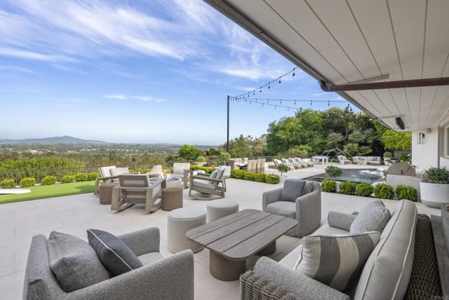 Prominently perched on nearly five acres of prime real estate in the heart of Rancho Santa Fe's Covenant neighborhood is a truly unique, expansive view property, thoughtfully named "La Bella Vita, the good life. Currently the pristine property boasts an ultra-cool fully renovated mid-century modern single level three bedroom plus bonus room, three full bath residence with a modern pool/jacuzzi. This quintessential Ranch & Coast design has been thoughtfully curated with classic and contemporary elements, resulting in a warm, timeless and inviting aesthetic. It's characterized by natural materials, sophisticated silhouettes, and a mix of vintage and modern accents. The design includes high-end zellige tile and marble slab material, Wolf/Subzero/ Cove appliance, Toto toilets and designer lighting throughout. Equipped with Samsung TVs, Sonos indoor/outdoor entertainment and Ring security system the home is both easy to operate and technologically proficient. In addition, this property comes with FULLY APPROVED Art Jury/City plans and reveals a future main house of nearly 12,000 square feet - 6 bedrooms and 7 bathrooms, alongside a separate 1200 sq ft guest house with 1 bedroom and 1 bathroom, and 14 car garage. Curated by designer homeowner, and formulated by John Jensen architects, this designer home is a poetic expression of modern elements and intimate living, ultimately creating a stunning architectural masterpiece. These plans embrace the site's full potential while harmonizing with the surrounding environment that makes Rancho Santa Fe s Covenant one of a kind. The innovative layout capitalizes on the expansive lot, with a unique orientation that captures breathtaking views.Interested in this Listing?