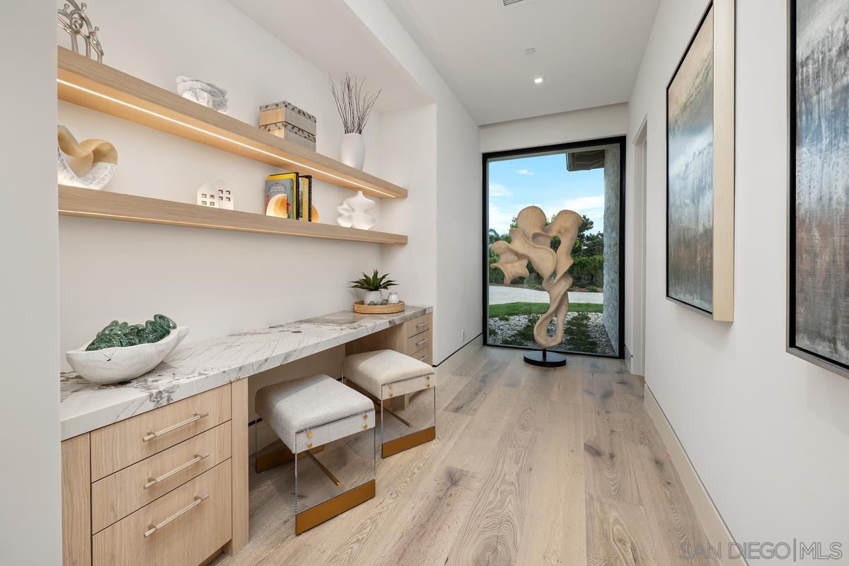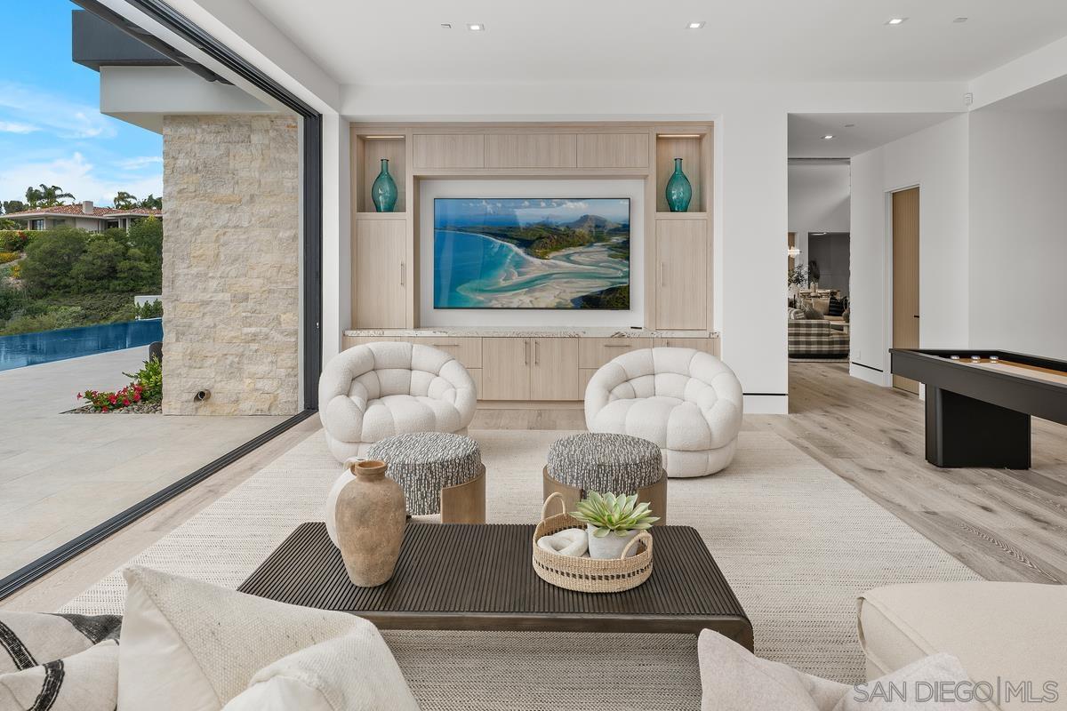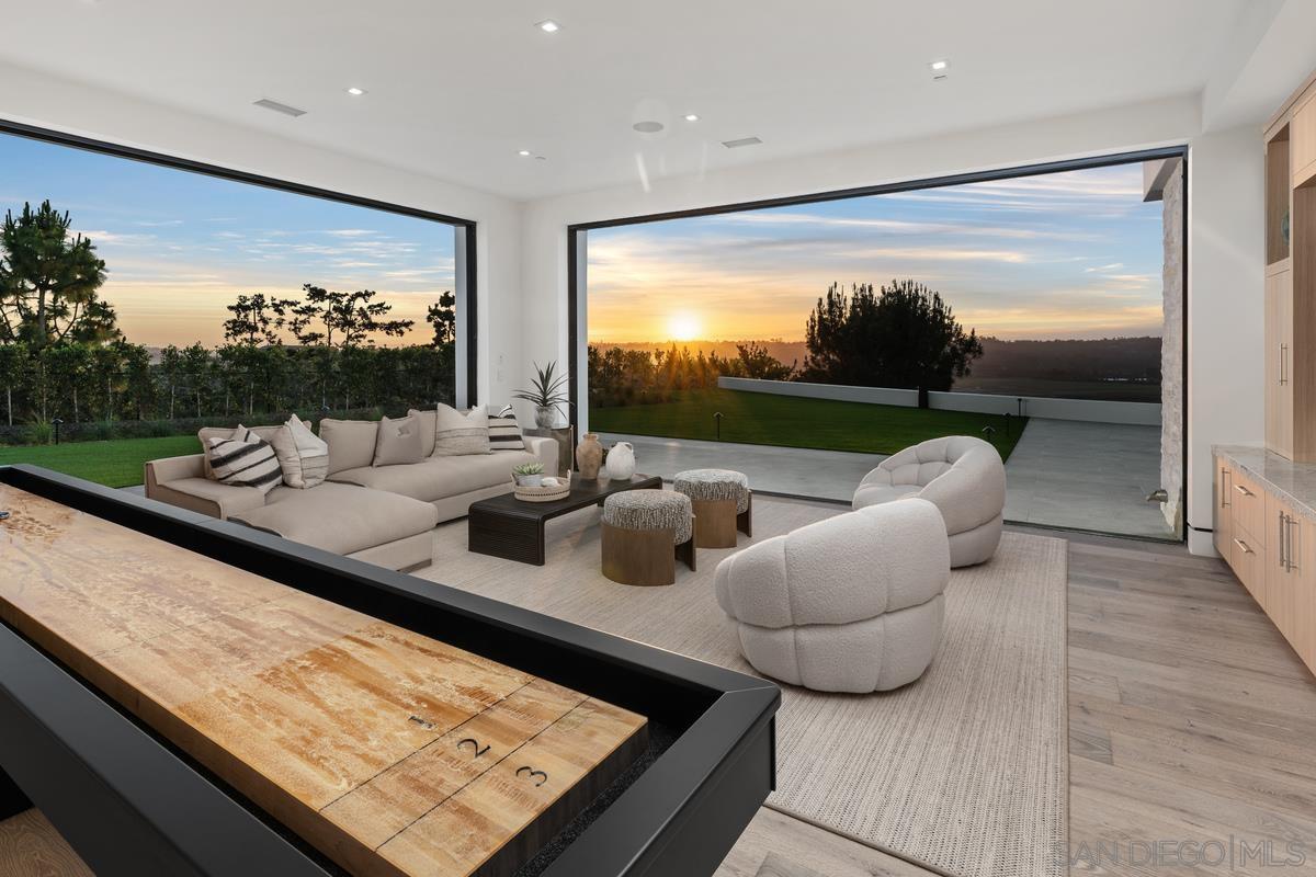Unparalleled luxury awaits at 5968 Ladys Secret Ct! Brand-New Custom Construction 2025, nestled within a gated and coveted enclave with Sweeping VIEWS/ Sunsets from the valley to the Coast and Mountains beyond. Selling Fully Furnished w/ Art and spanning over 12,000 sq ft with not a single step this Architectural Masterpiece combines breathtaking scale with meticulous attention to detail. A dramatic pivot door welcomes you into a serene open-air courtyard, setting the tone for a residence that offers equal parts serenity and statement. The sense of arrival is stunning & everyone will appreciate the 8-Car Garage. Master builder Kyle Doan Construction, all furniture/ design work by Very Talented Kelly Doan & architect Mark Radford One of San Diego County s most significant offerings Inside, rare natural Patagonia stone sourced from a newly discovered mine graces the Dramatic Backlit Bar and grand kitchen island, offering visual cohesion and organic elegance. Striking finishes abound, including fluted architectural detailing, Designer Furnishings and lighting, and a temperature-controlled Wine Wall. The gourmet kitchen is outfitted with a large catering kitchen and an outdoor kitchen ideal for entertaining in style. The Primary Suite is a private sanctuary, featuring a personal Sauna, separate His & Her SPA bathrooms, dressing rooms, a dedicated washer/dryer. Expansive glass doors disappear into the walls, revealing a 65+ foot covered pavilion with a floating ceiling, flush-mount heaters, and seamless indoor-outdoor living plus Guest Home w/full kitchen & laundry 1br/1ba.Interested in this Listing?