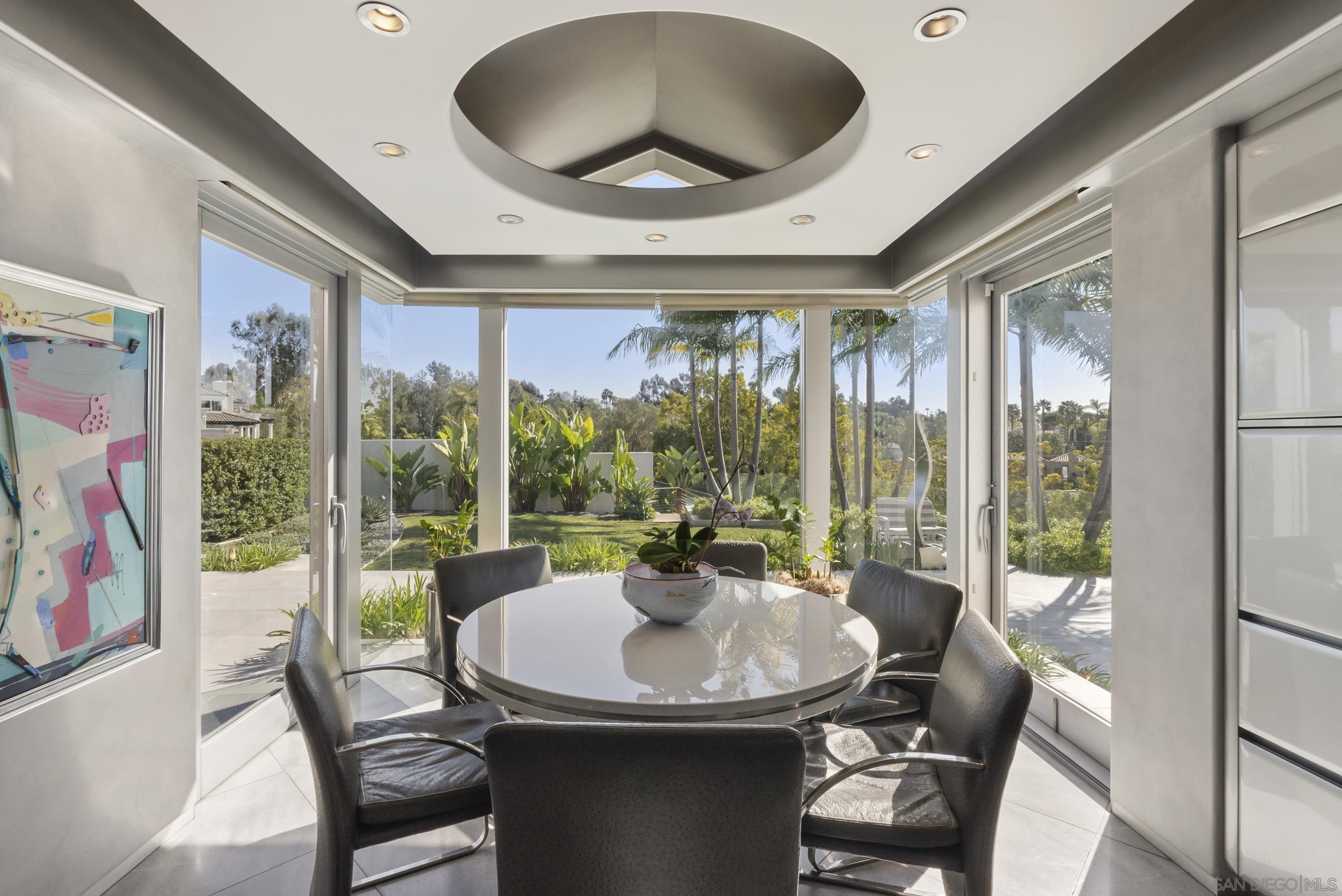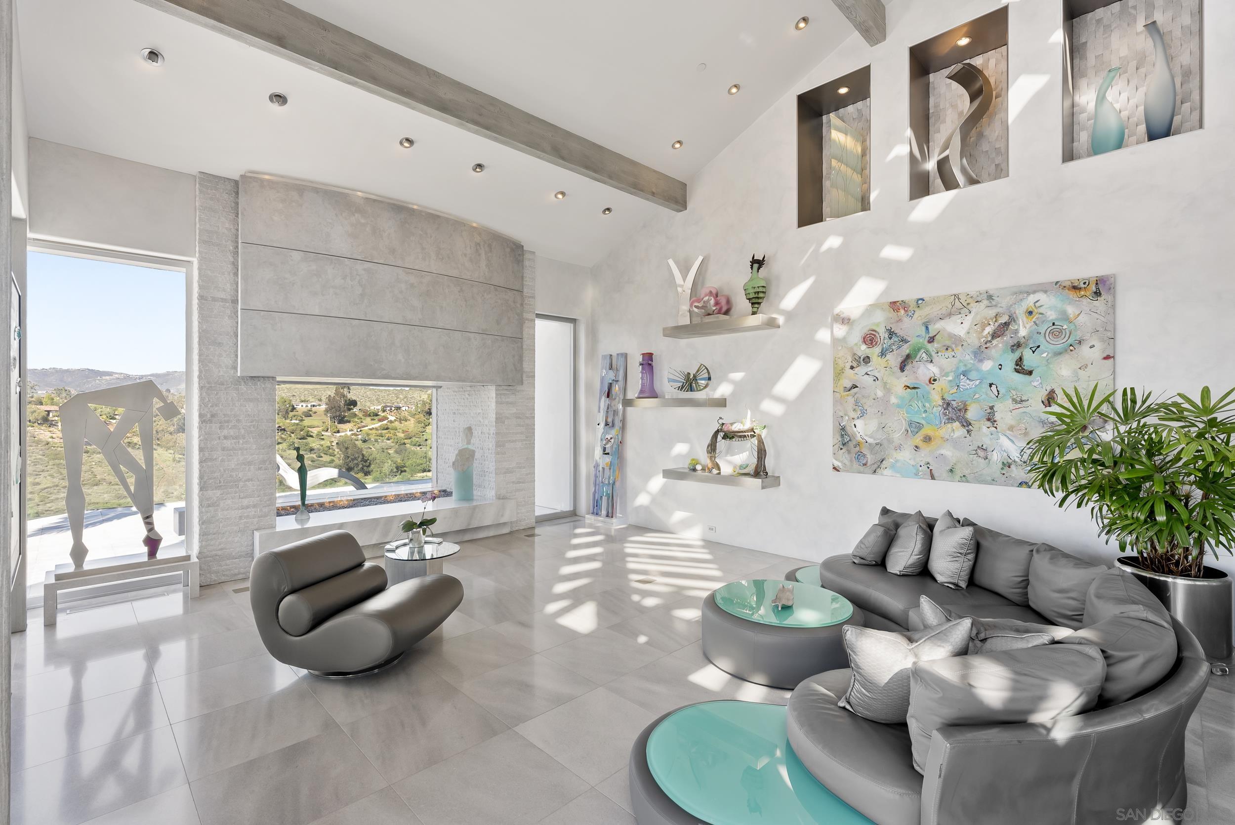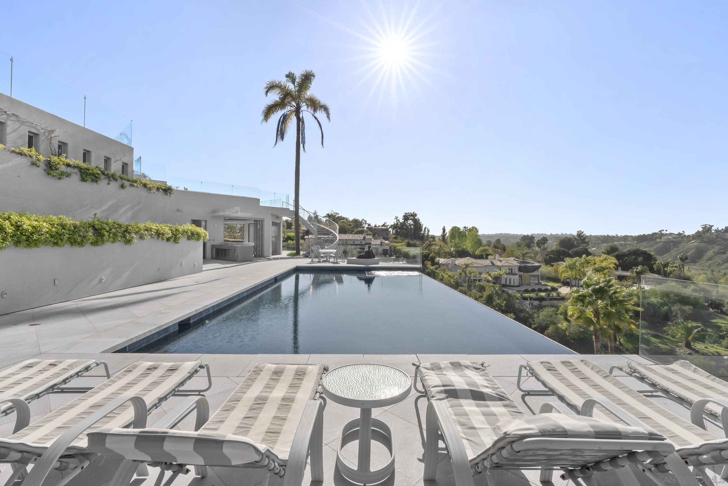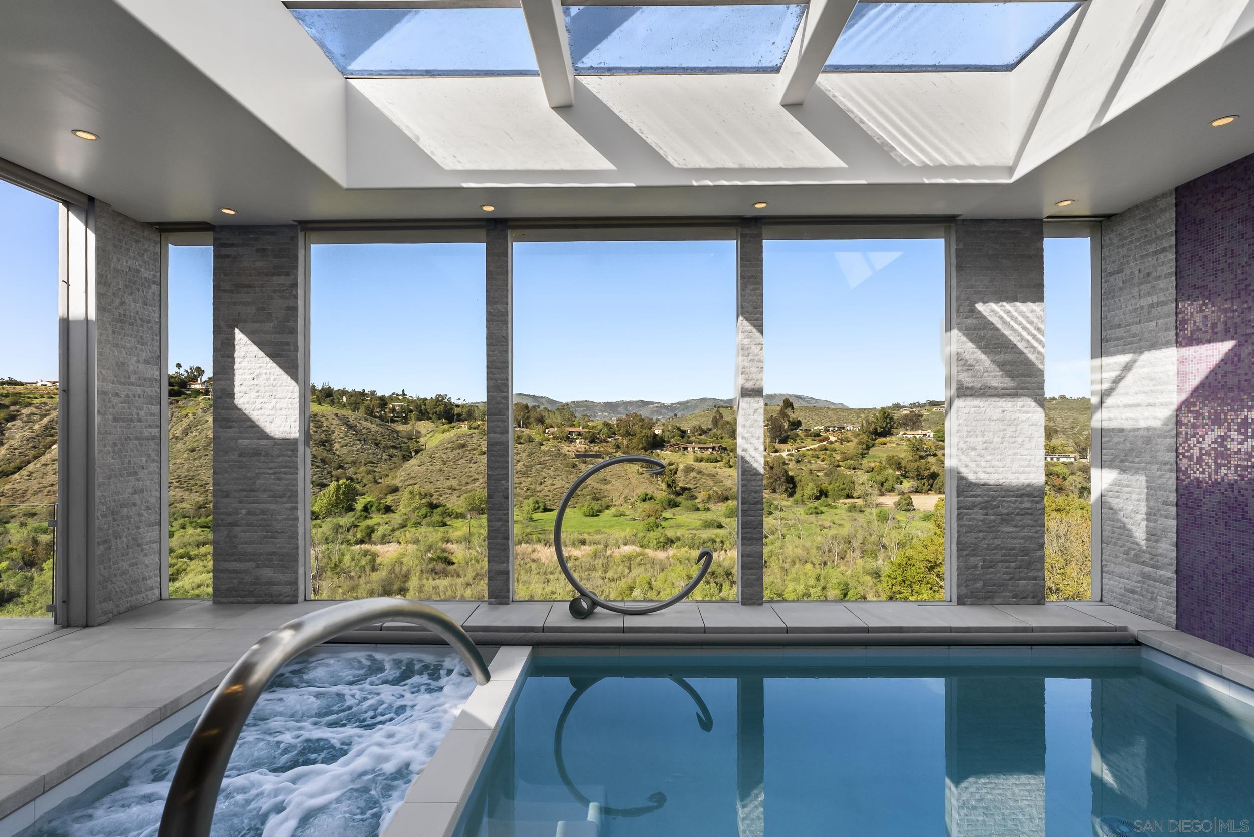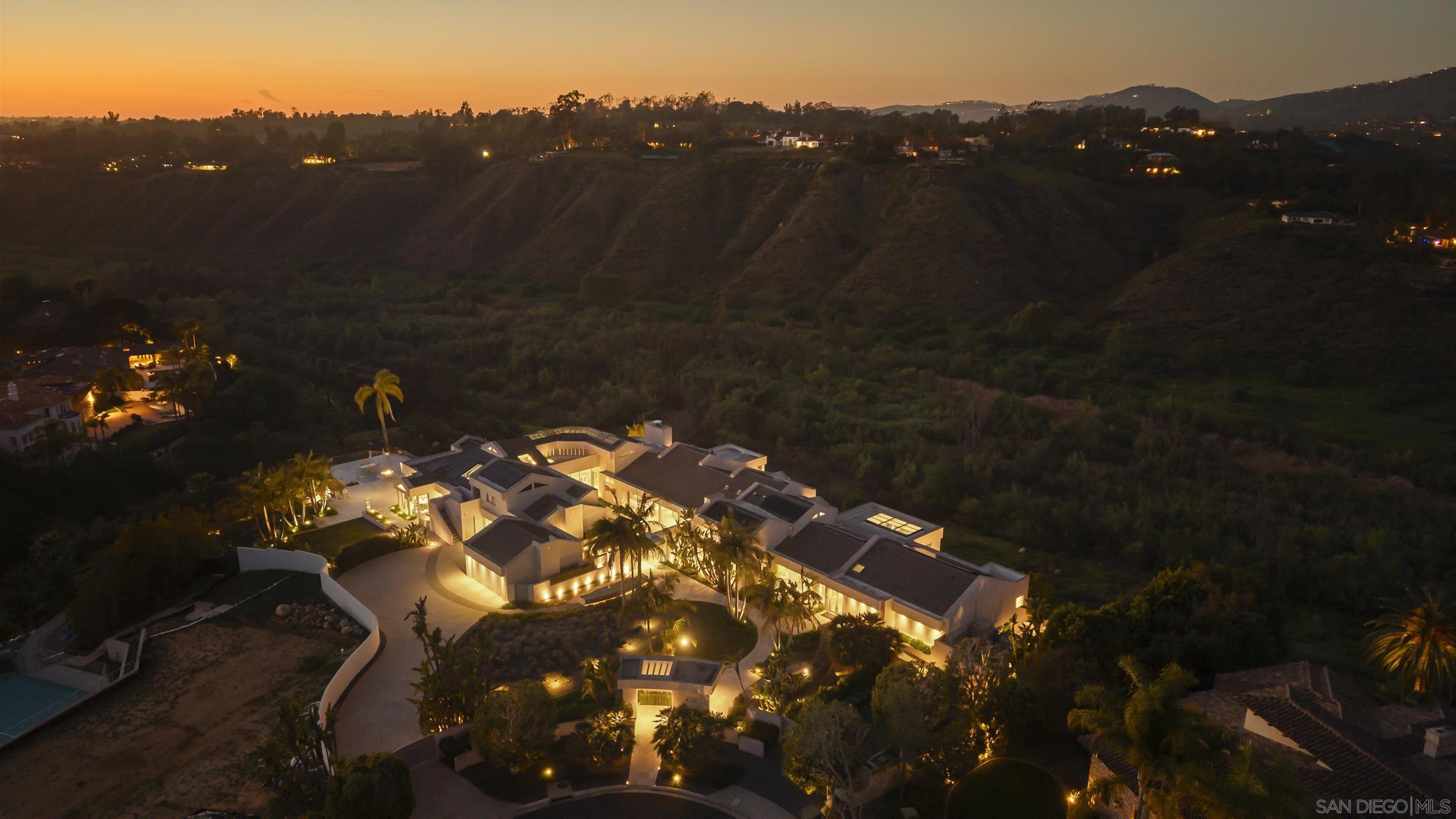 Hand-selected for its premier location at the end of a quiet cul-de-sac, this extraordinary contemporary estate sits on one of the most coveted lots in the prestigious community of Fairbanks Ranch. Spanning over 12,000 sq. ft. on 8.6 acres, the residence commands panoramic views of the San Dieguito River Valley and blends architectural artistry with the warmth and functionality of a true family home. Step inside to discover interiors finished in imported Bulgarian marble and granite, complemented by soaring ceilings, custom steel-reinforced beams, and automated skylights that flood the space with natural light. Statement features include a large indoor aquarium, a striking Eric Orr granite water sculpture, and a glass-walled indoor pool and spa. The open-concept design flows into a sleek chef s kitchen with a walk-in pantry, oversized commercial appliances, and a glass entertainment bar, all anchored by floor-to-ceiling sliding doors that blur the line between indoors and out. This smart home is built for elevated living: a state-of-the-art at-home cinema, spacious wine cellar, two private offices, exercise room, and art room provide refined function and inspiration throughout. The resort-style grounds are unparalleled complete with multiple fire features, a heated indoor-outdoor cabana, putting green, bocce court, outdoor kitchen, and expansive patio decks perfect for entertaining beneath sunset skies. A true legacy property custom-built on a premier lot in Fairbanks Ranch, where every sunrise, sunset, and starlit evening is an experience in serenity.Interested in this Listing?